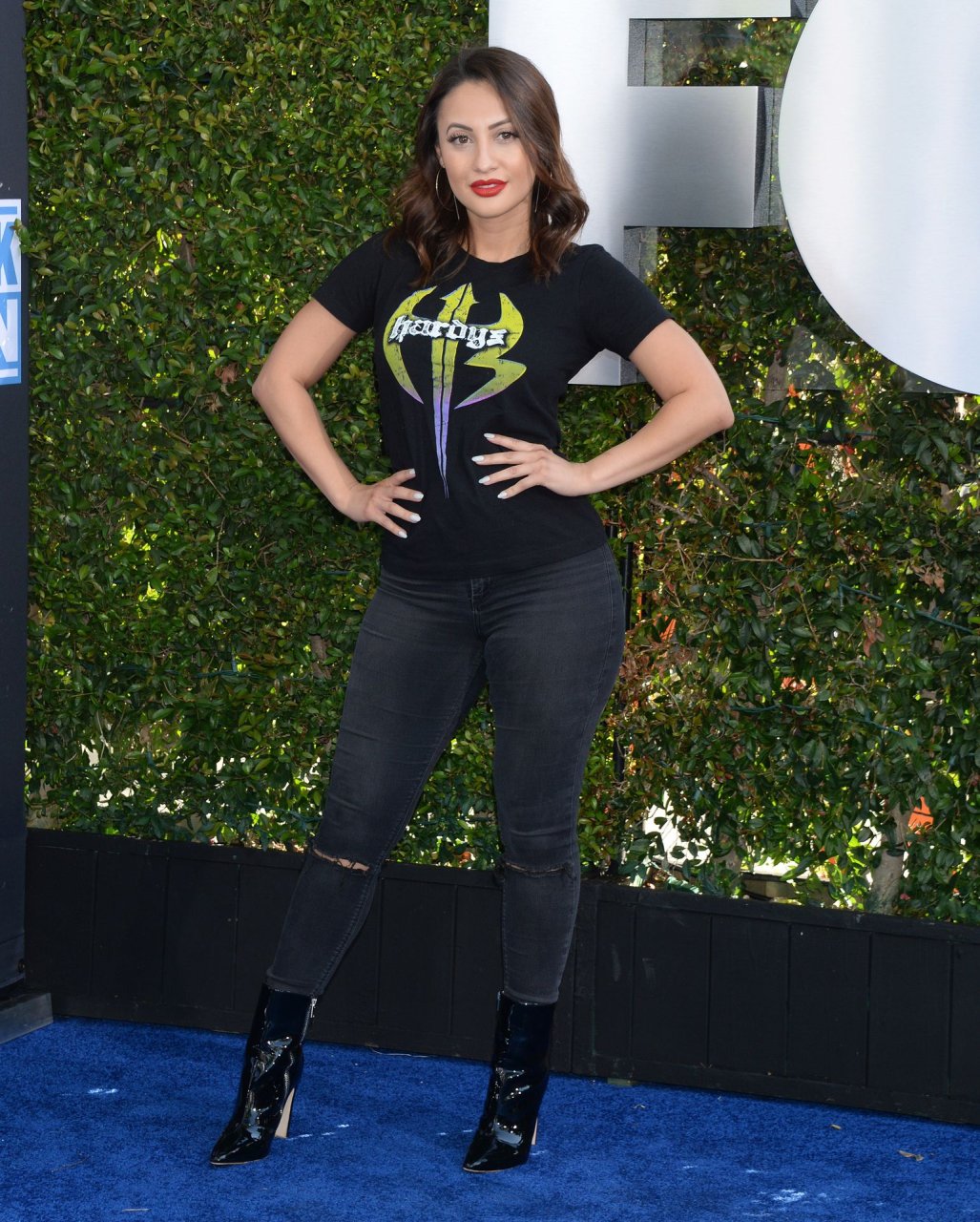 A atriz americana Francia Raisa exibiu seu bumbum sexy de jeans na Celebração do 20º Aniversário da WWE no Staples Center em Los Angeles, 04/10/2019.