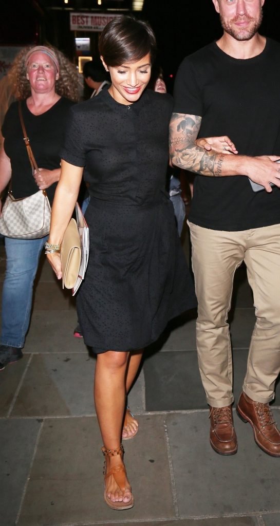 Frankie Bridge sai sem sutiã em rara noite de encontro com o marido em Londres, 19/07/2017. Francesca “Frankie” Bridge (nascida Sandford) é uma cantora e compositora inglesa. Idade: 28.