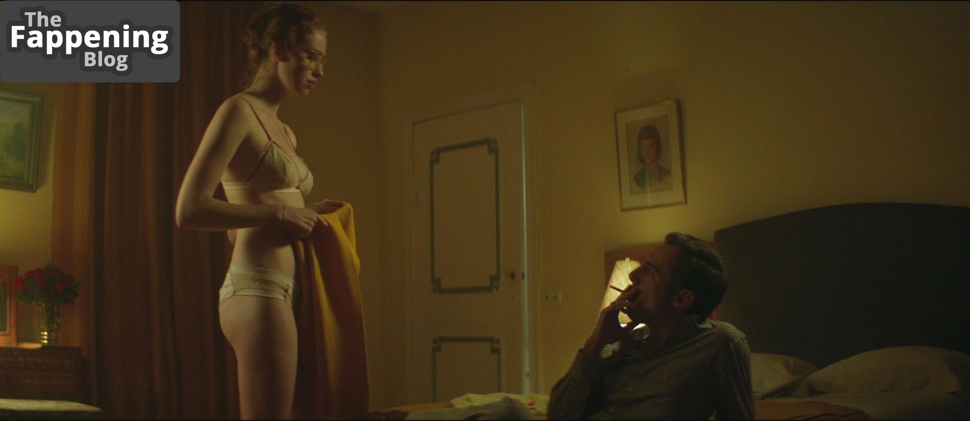 Veja as capturas de tela de Freya Mavor com cenas nuas, sexys e quentes de “A Dama no Carro com Óculos e uma Arma“.