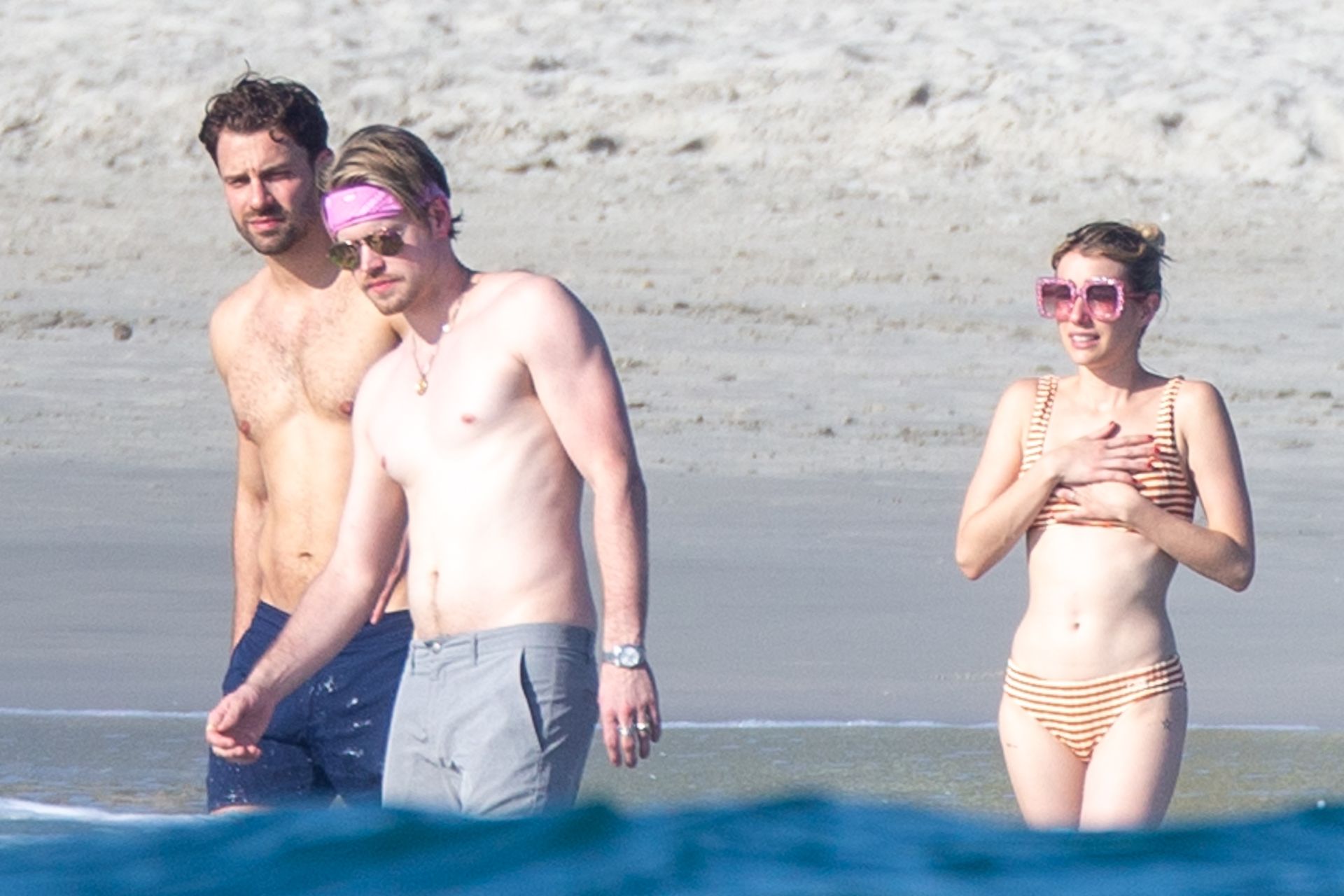 Emma Roberts e a estrela de Glee Chord Overstreet estavam aproveitando um tempo de descanso com amigos em Punta Mita, México, 18/01/2020.