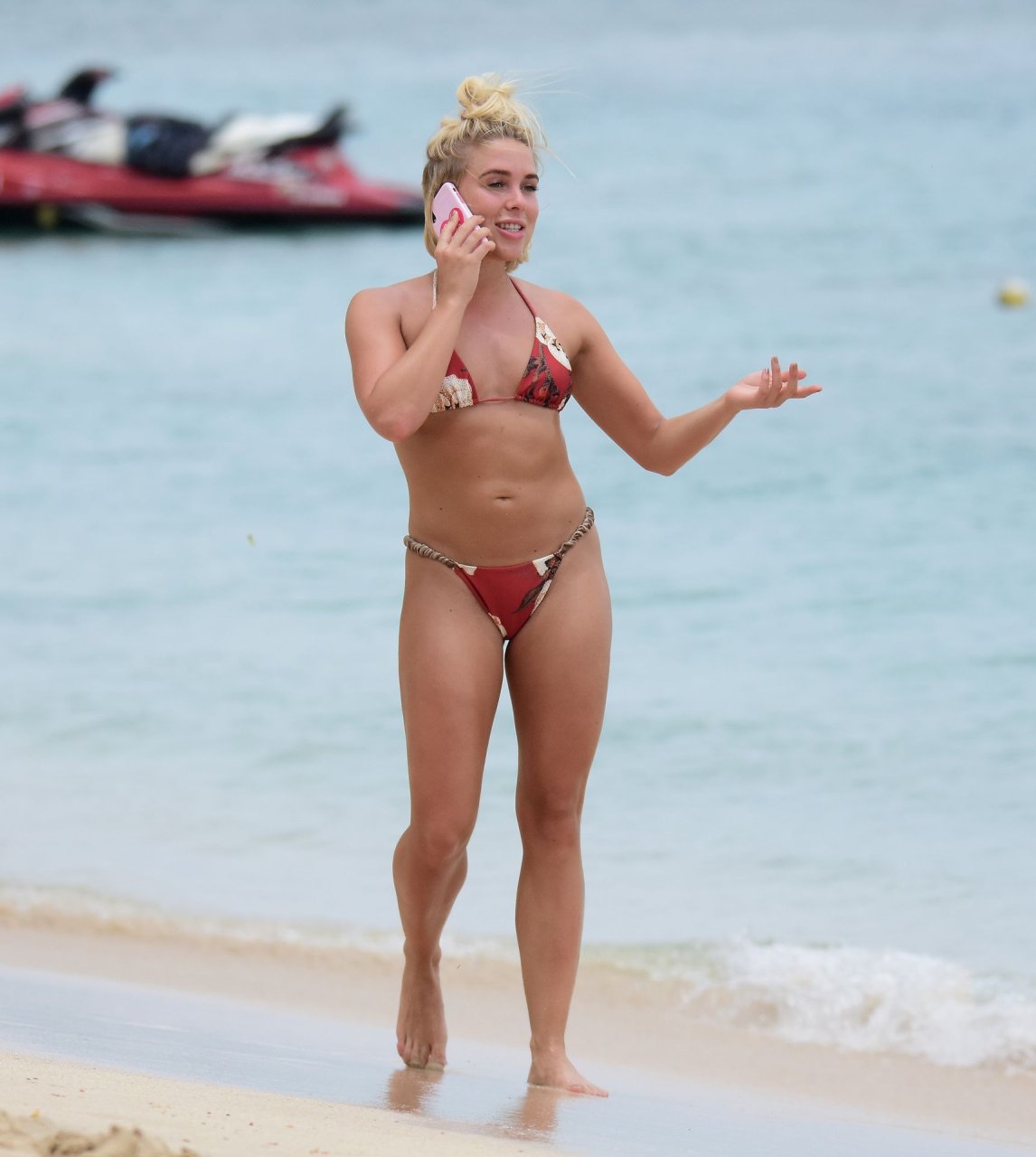 A estrela de “Love Island” Gabby Allen exibe biquíni minúsculo na praia em Barbados, 16/06/2019.