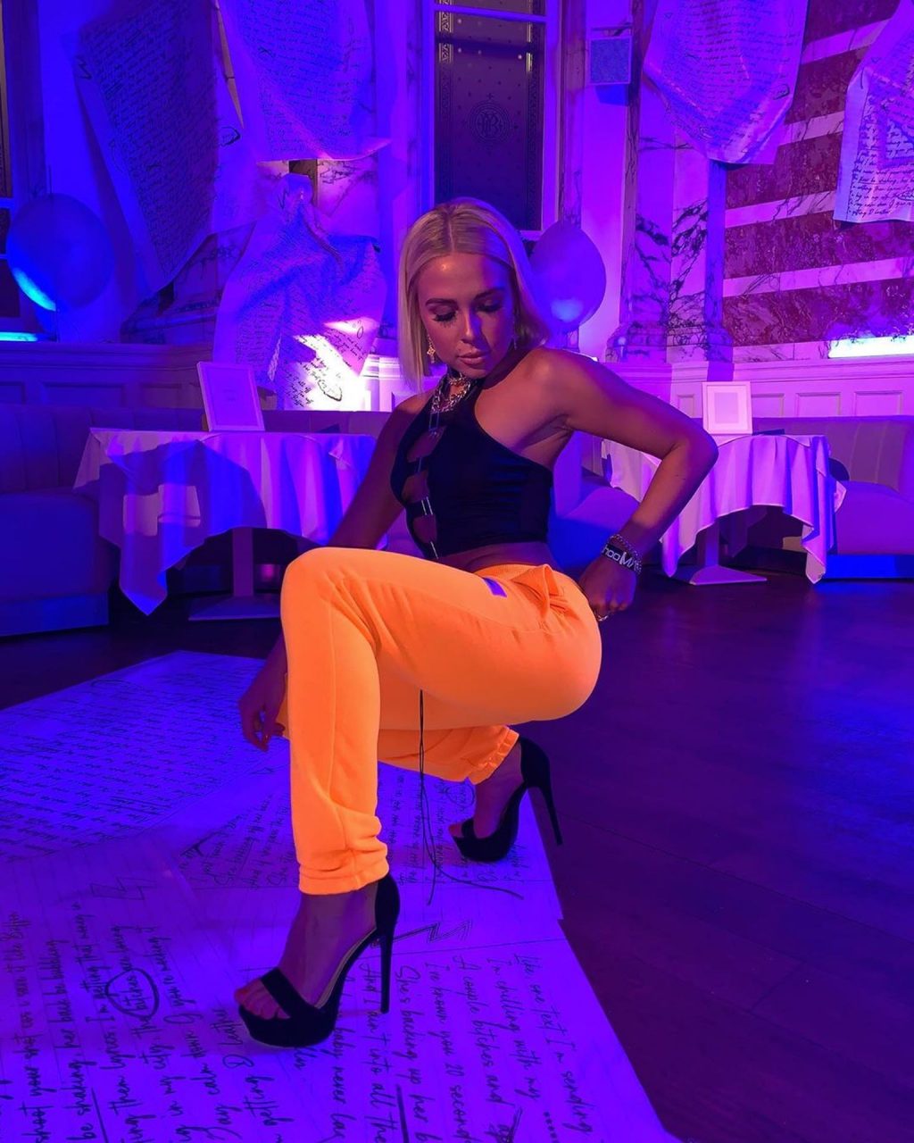 A estrela de “Love Island” Gabby Allen foi vista na Festa de Agasalhos The Boo Hoo Man no Restaurante Rosso em Manchester, 21/08/2019. Seus mamilos contaram sobre uma noite interessante!