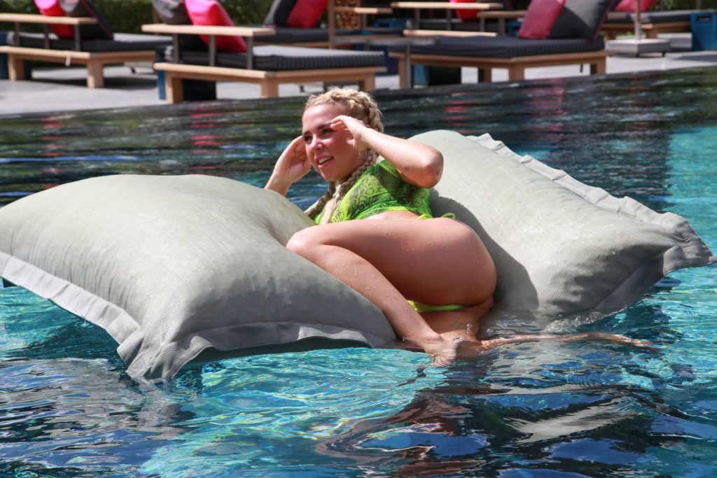 A estrela de “Love Island” Gabby Allen foi fotografada durante as férias no Baba Beach Club em Phuket, Tailândia. Gabby parecia feliz e de bom humor enquanto aproveitava o sol tailandês e se refrescava na piscina, continuando a ignorar o drama do relacionamento em “I’m A Celebrity”.