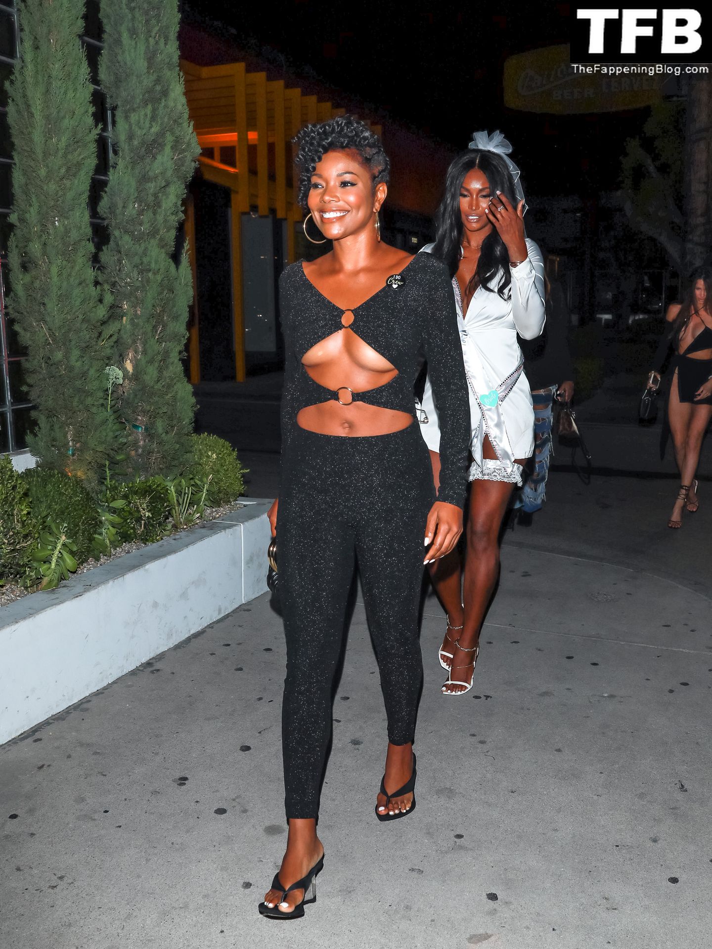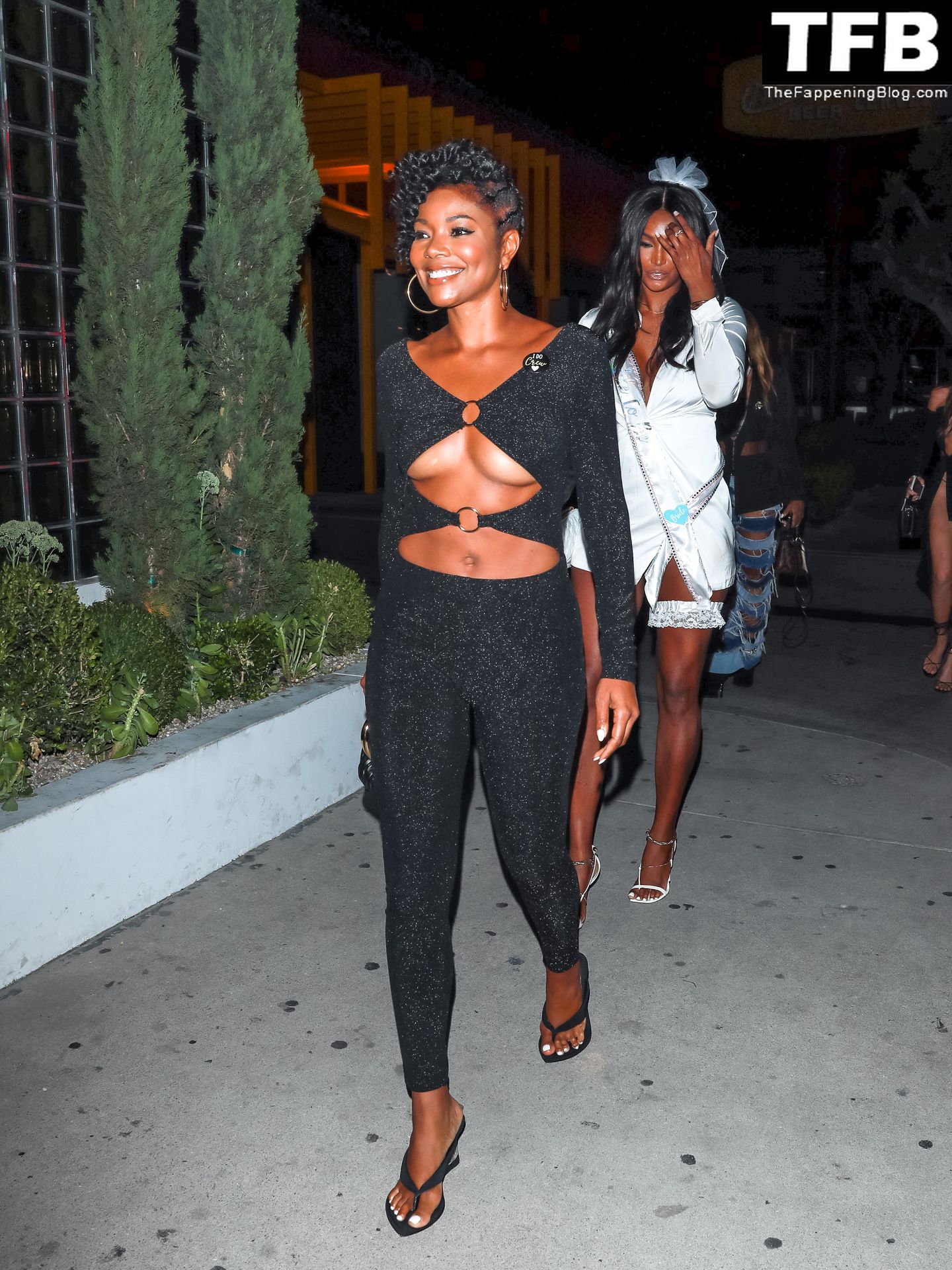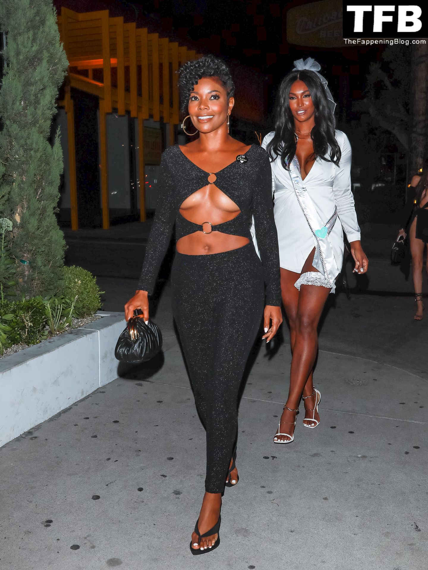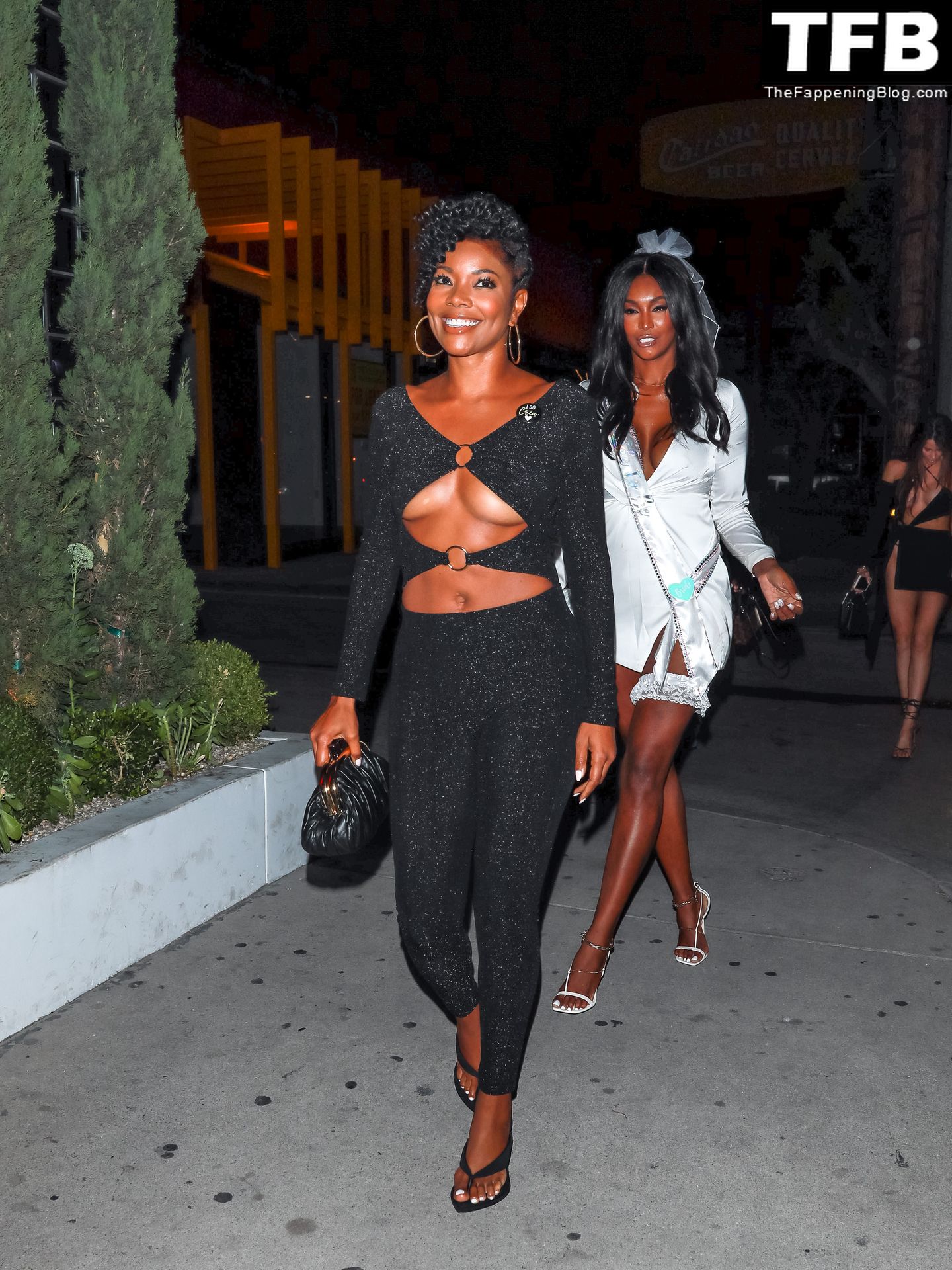 Gabrielle Union está toda sorrisos ao ser vista saindo do recém-inaugurado restaurante Catch Steak LA com suas amigas em Los Angeles, 24/07/2022.