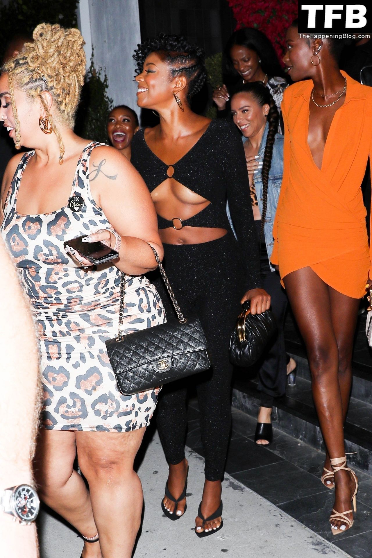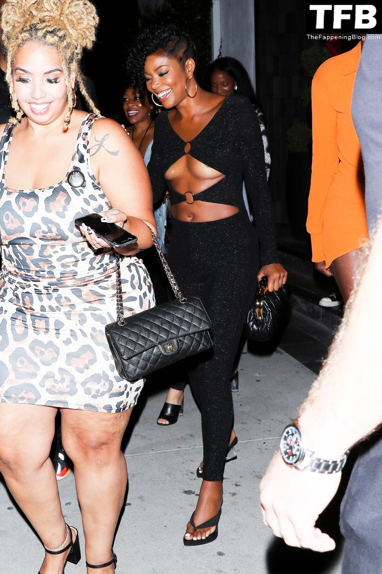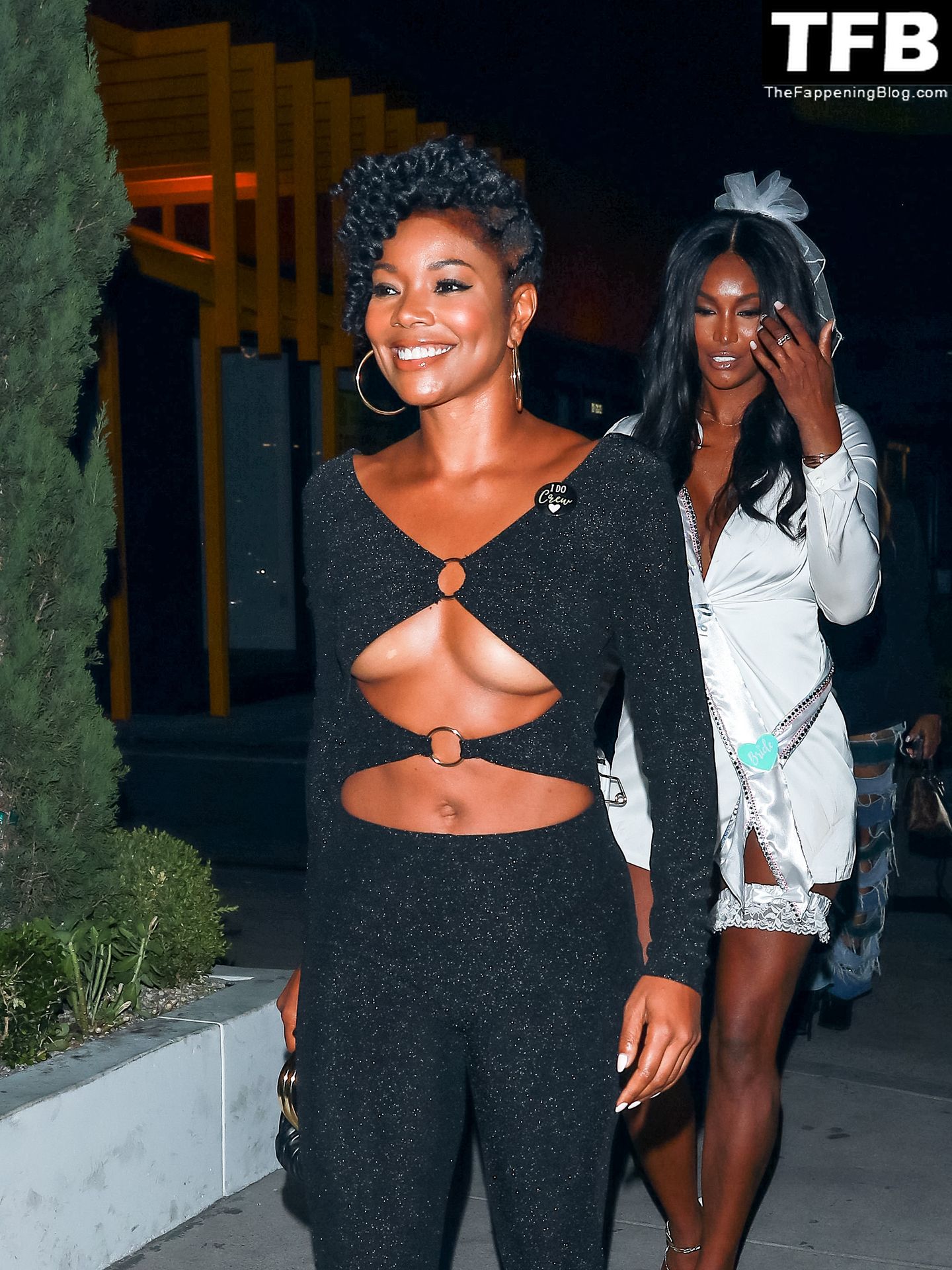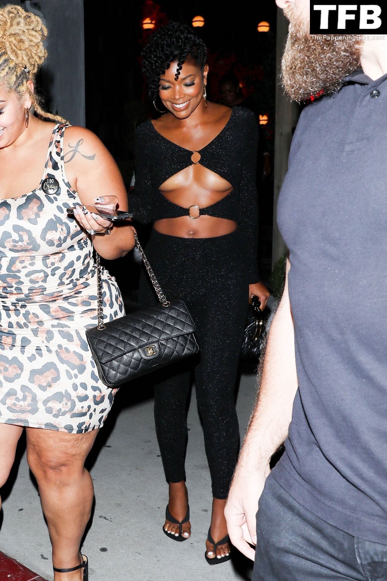 Gabrielle Union está toda sorrisos ao ser vista saindo do recém-inaugurado restaurante Catch Steak LA com suas amigas em Los Angeles, 24/07/2022.