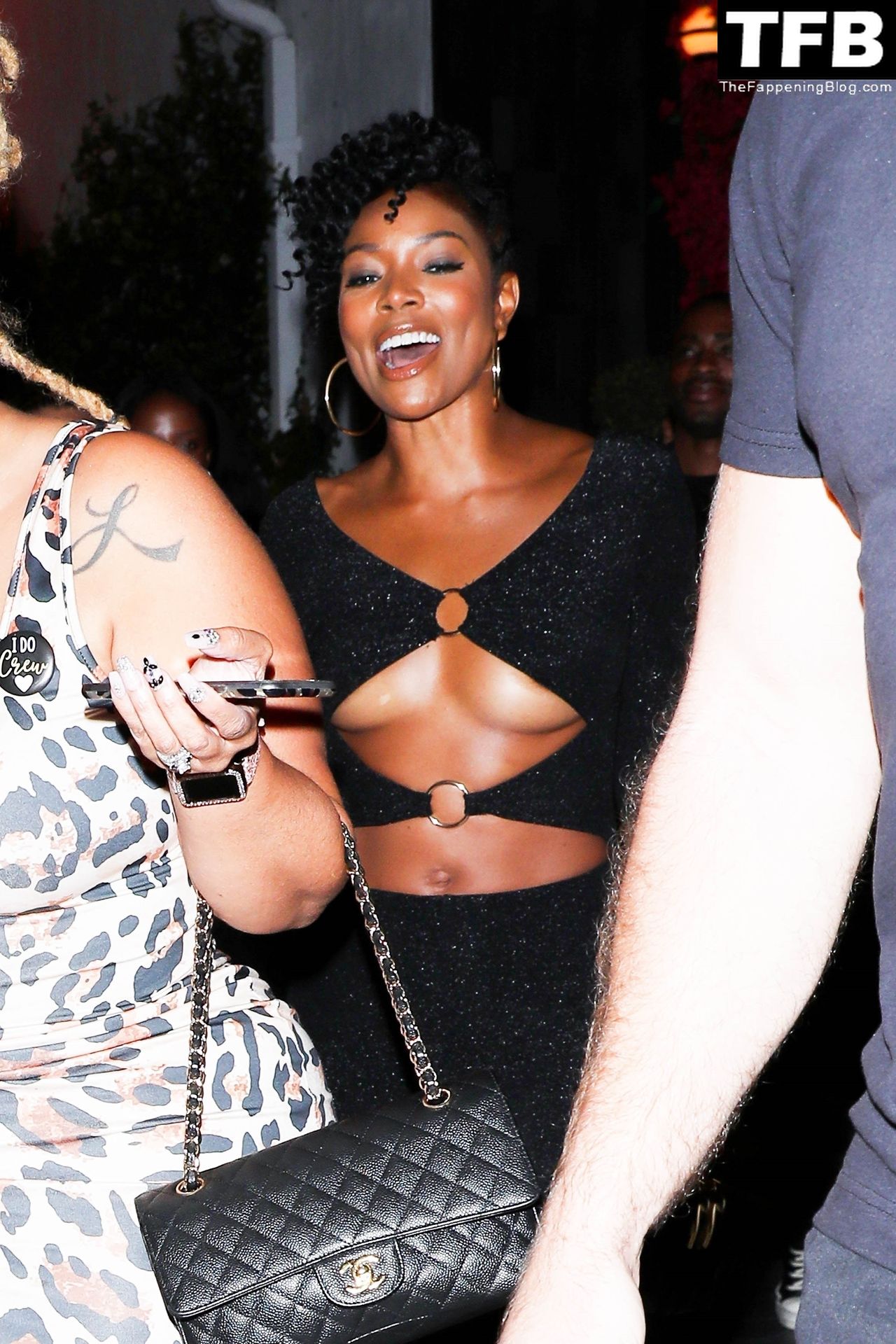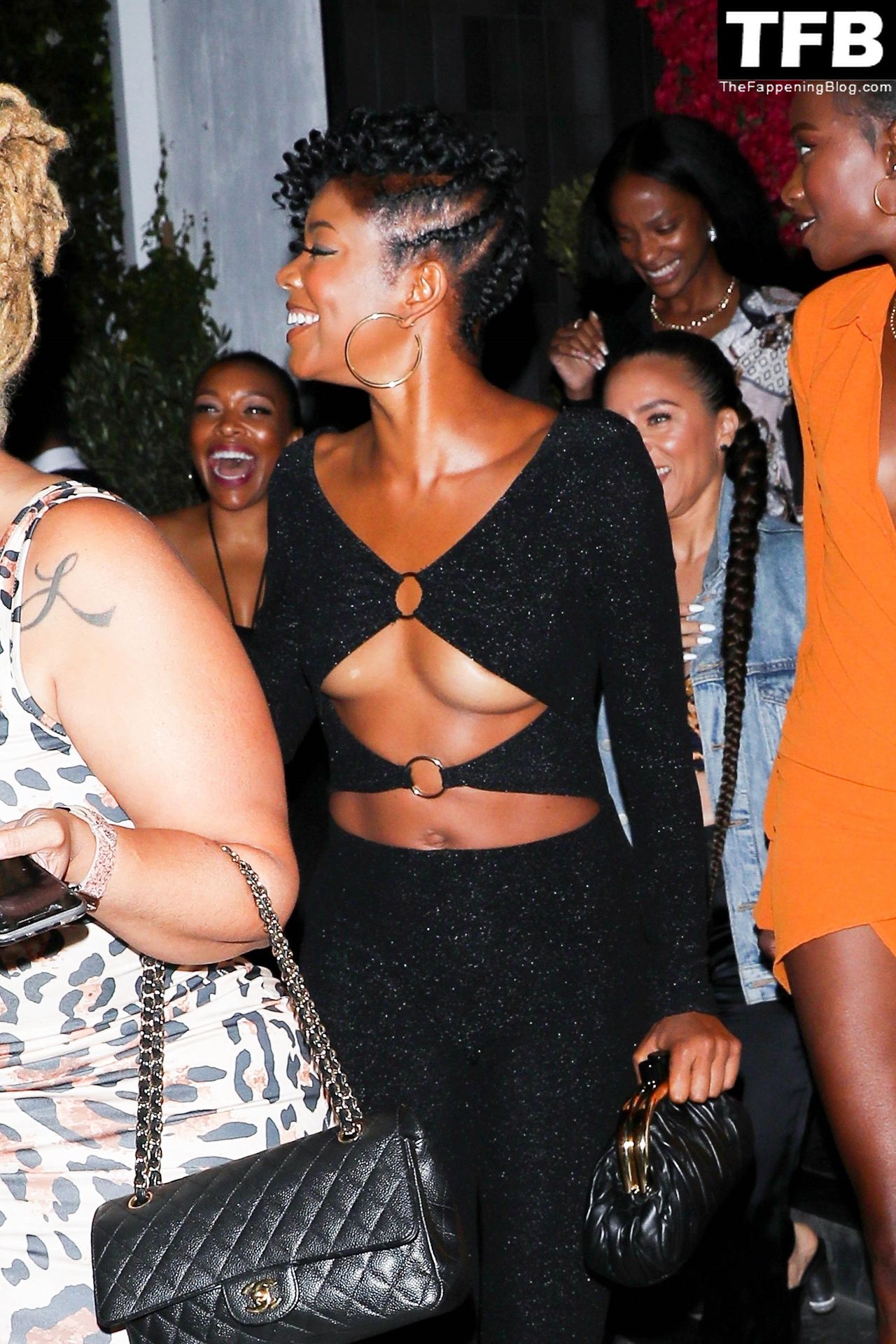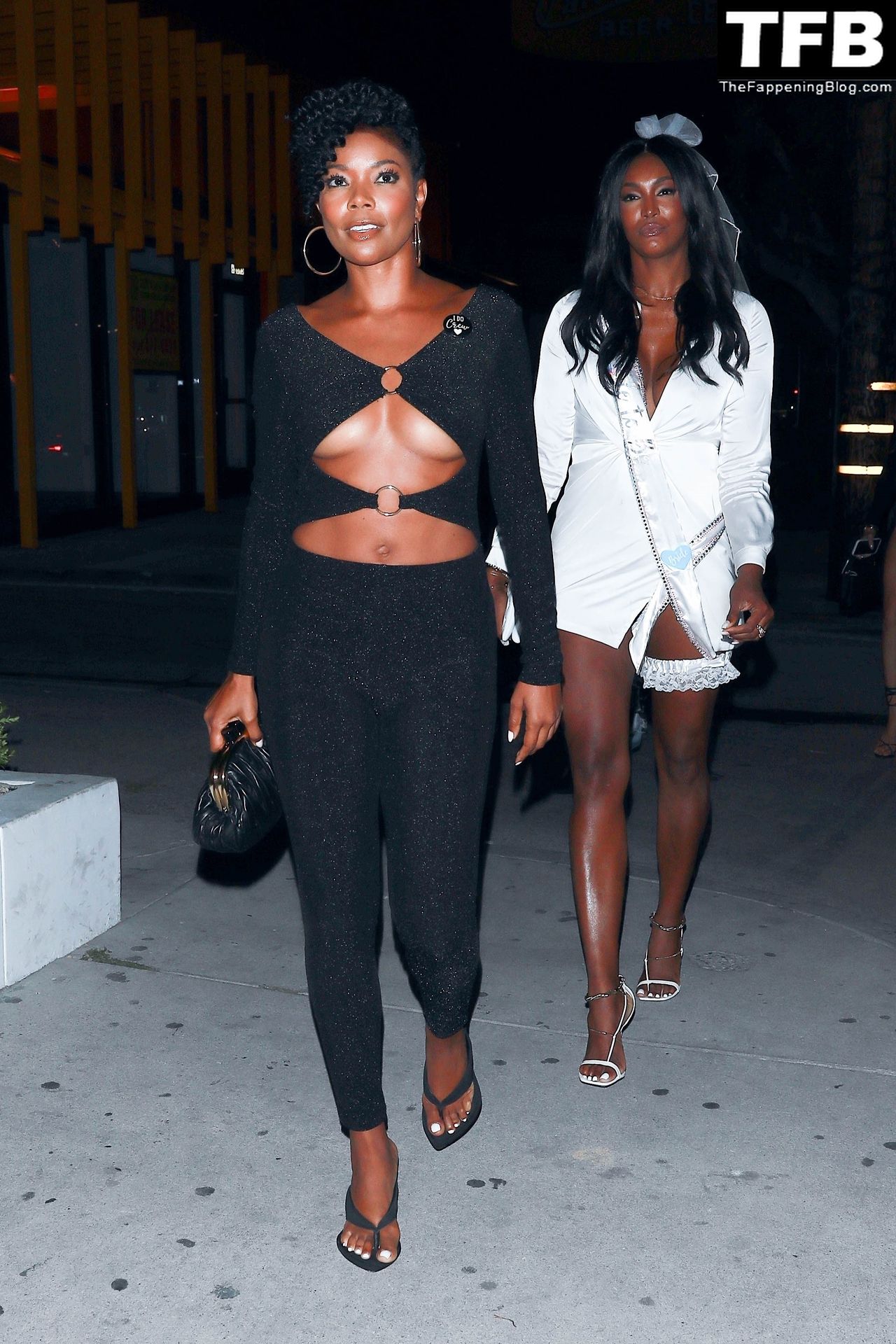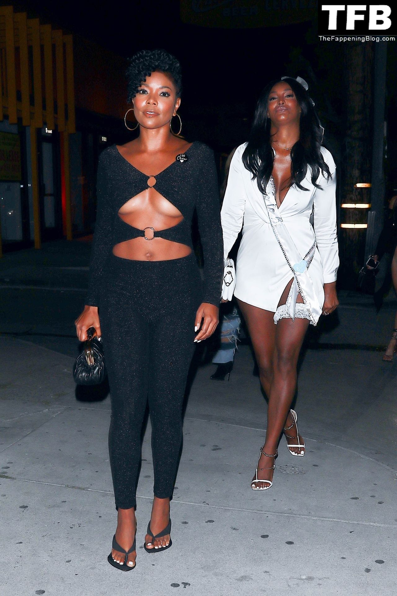 Gabrielle Union está toda sorrisos ao ser vista saindo do recém-inaugurado restaurante Catch Steak LA com suas amigas em Los Angeles, 24/07/2022.