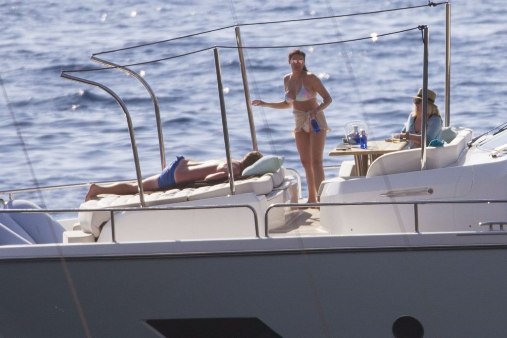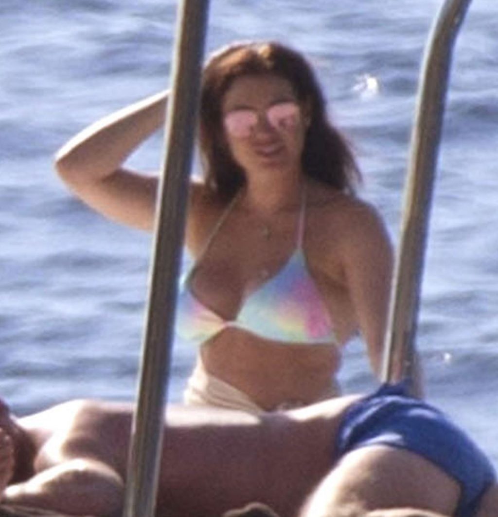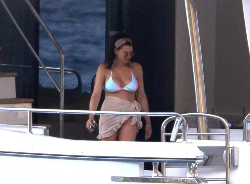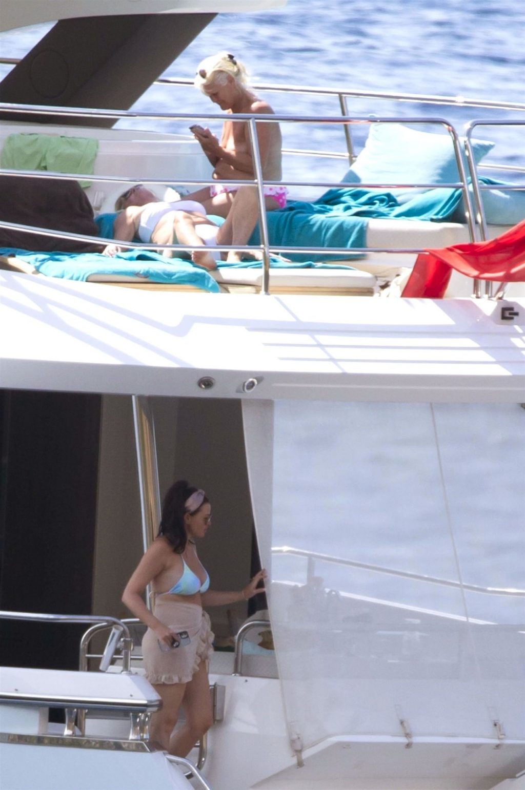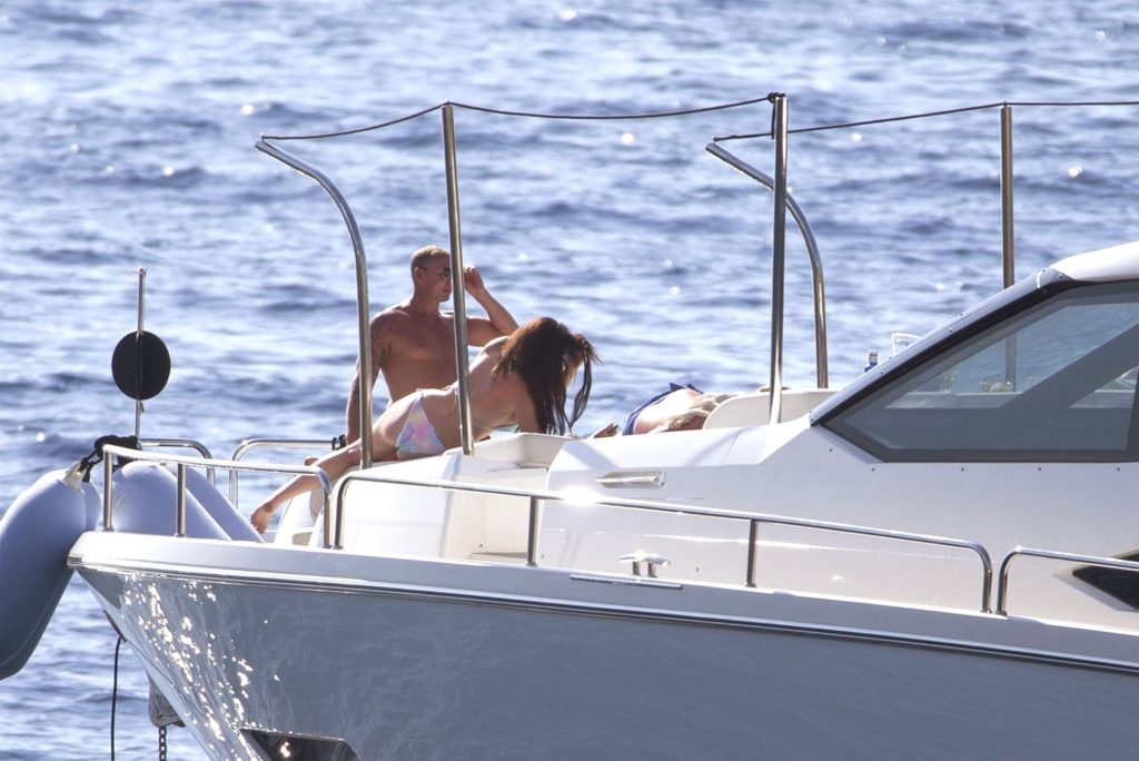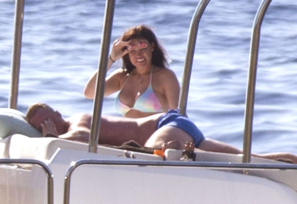 A estrela do TOWIE Jessica Wright veste seu biquíni minúsculo aproveitando o sol espanhol com seu namorado William Lee-Kemp e a família, desfrutando de um dia à beira-mar em seu iate com sua família em Mallorca, Espanha, 15/07/2020.
