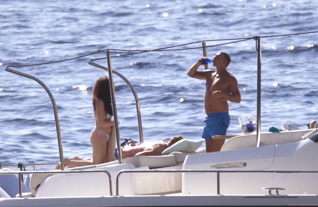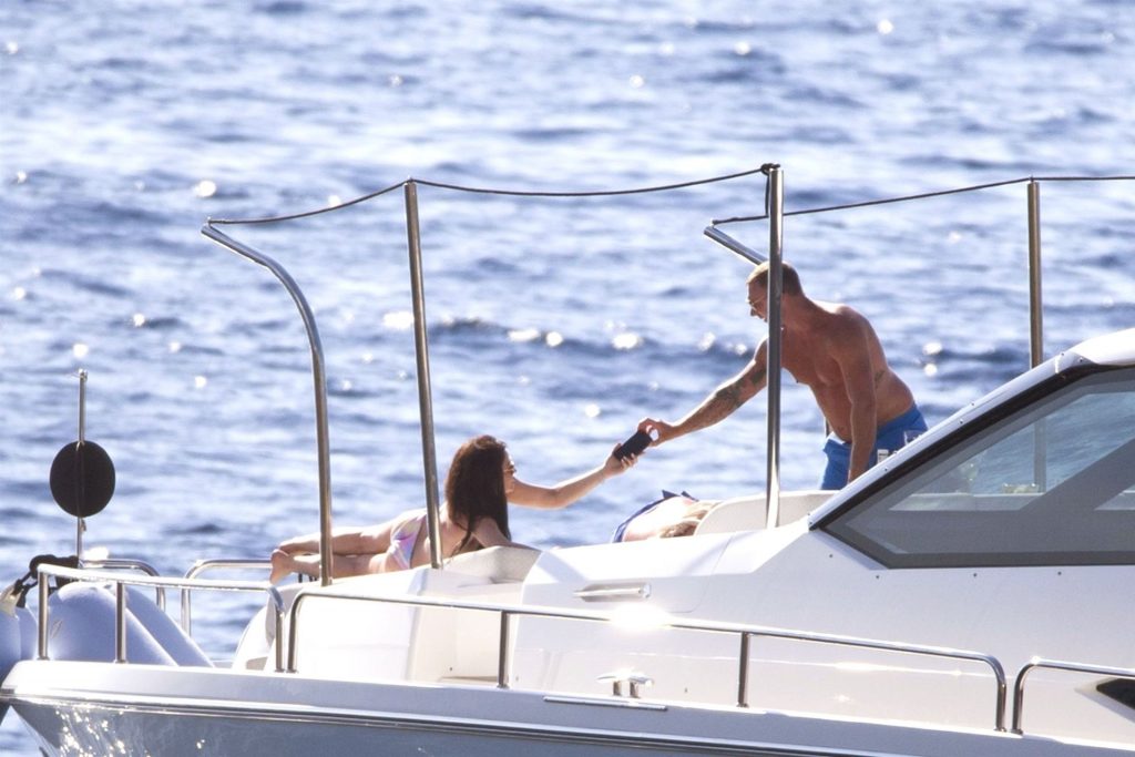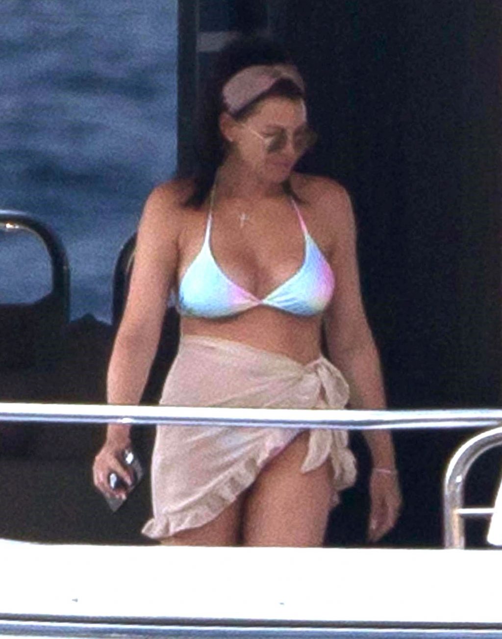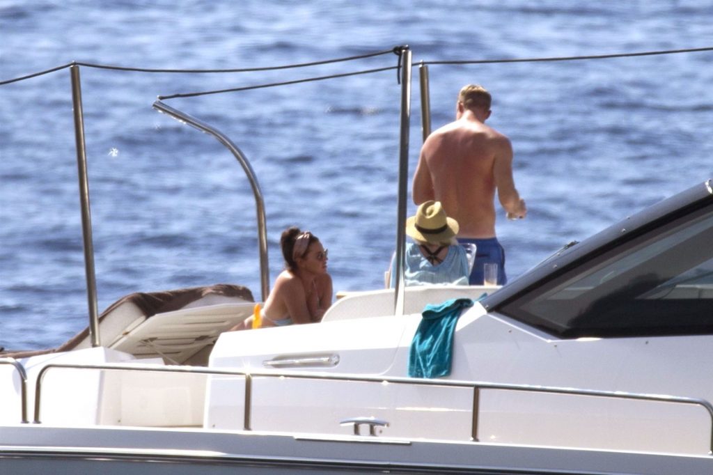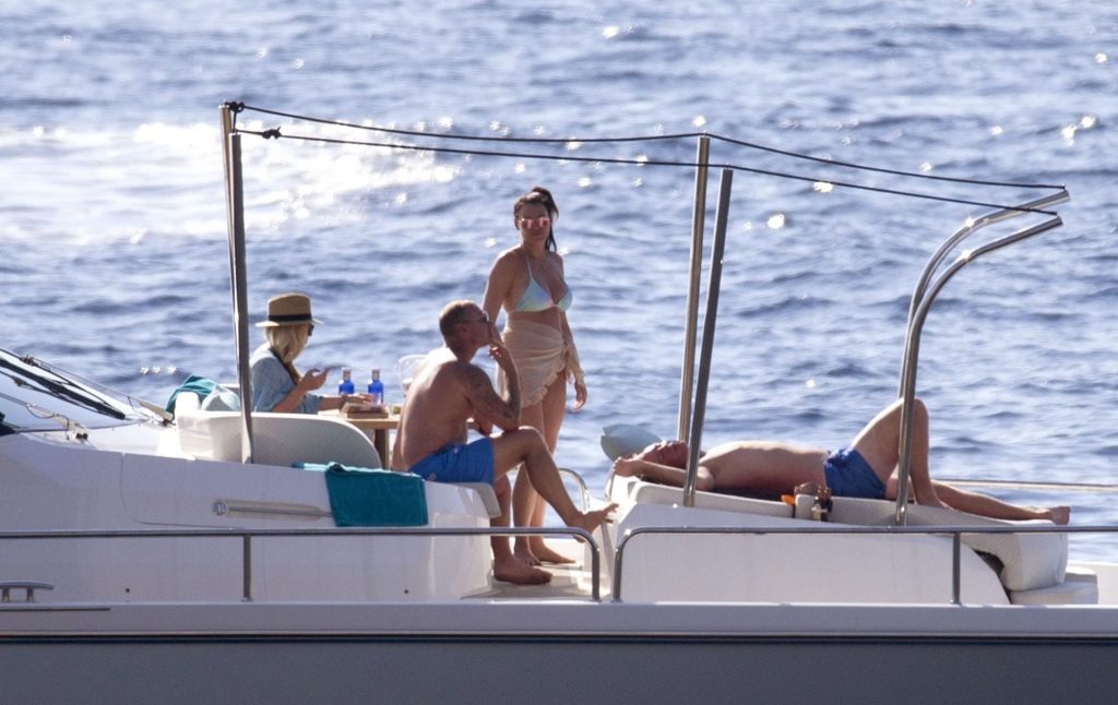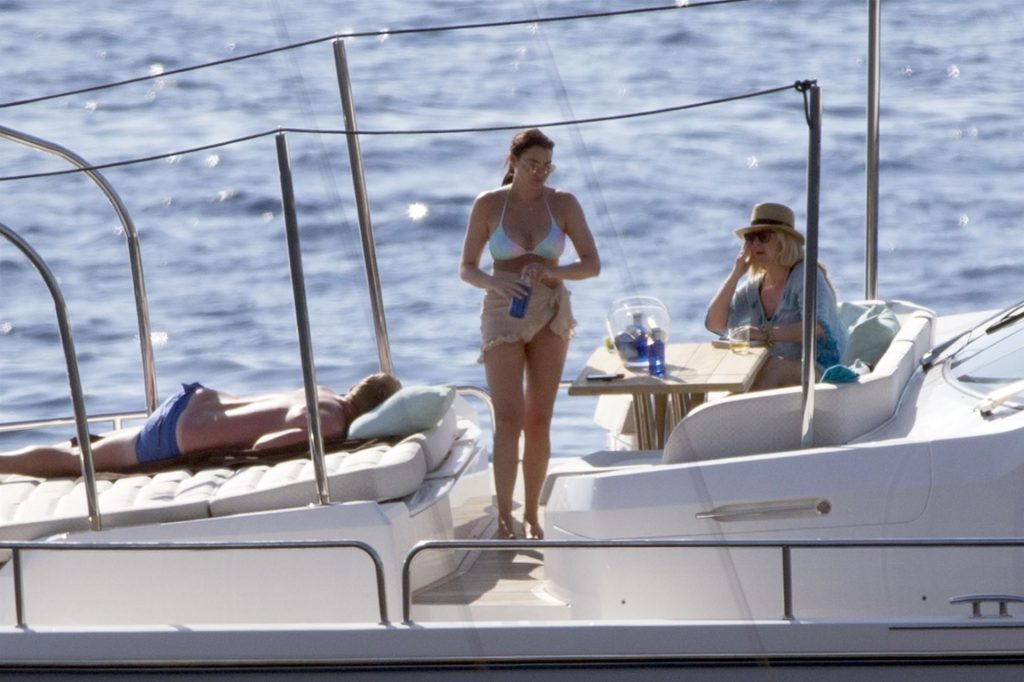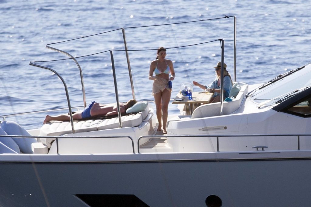 A estrela do TOWIE Jessica Wright veste seu biquíni minúsculo aproveitando o sol espanhol com seu namorado William Lee-Kemp e a família, desfrutando de um dia à beira-mar em seu iate com sua família em Mallorca, Espanha, 15/07/2020.