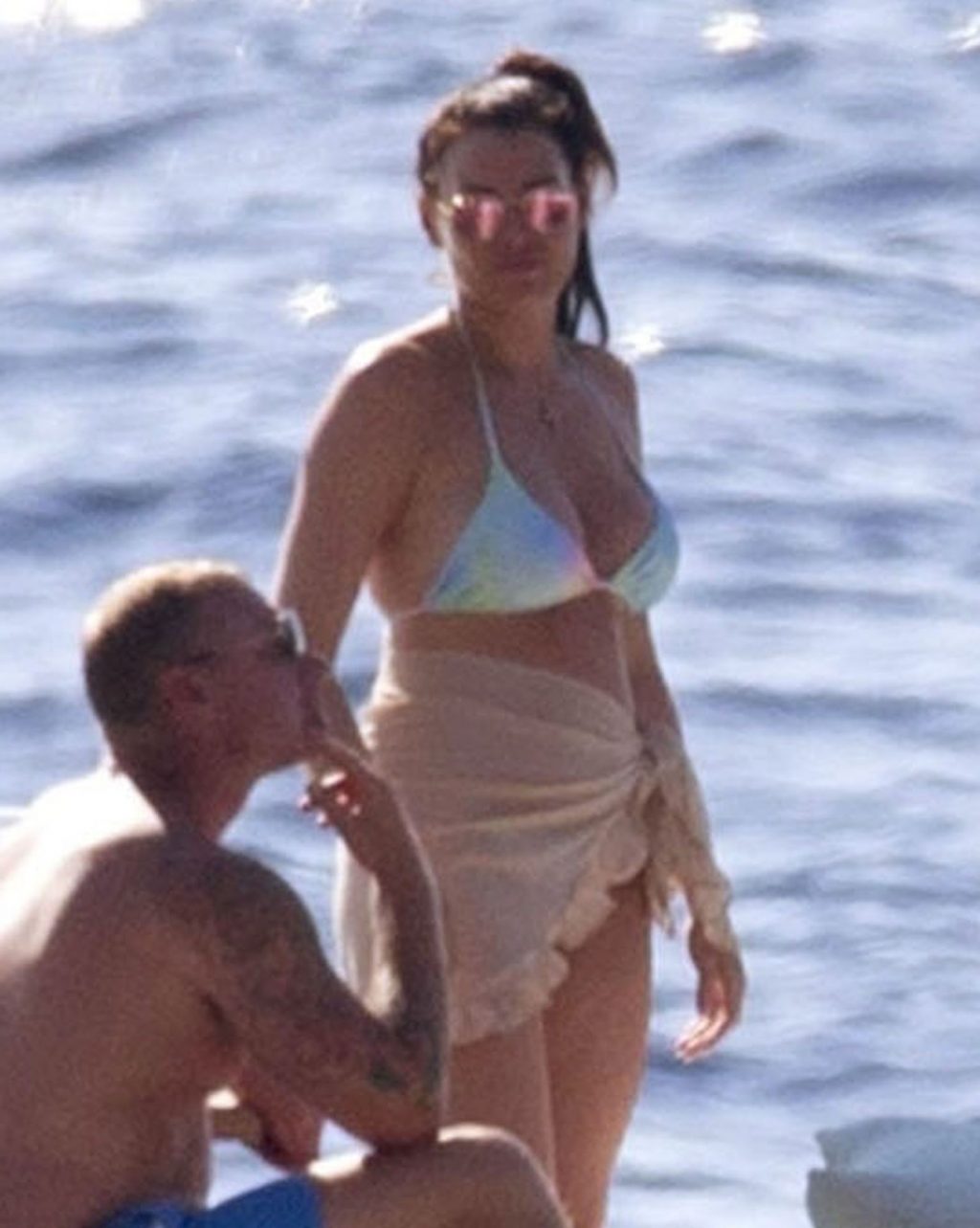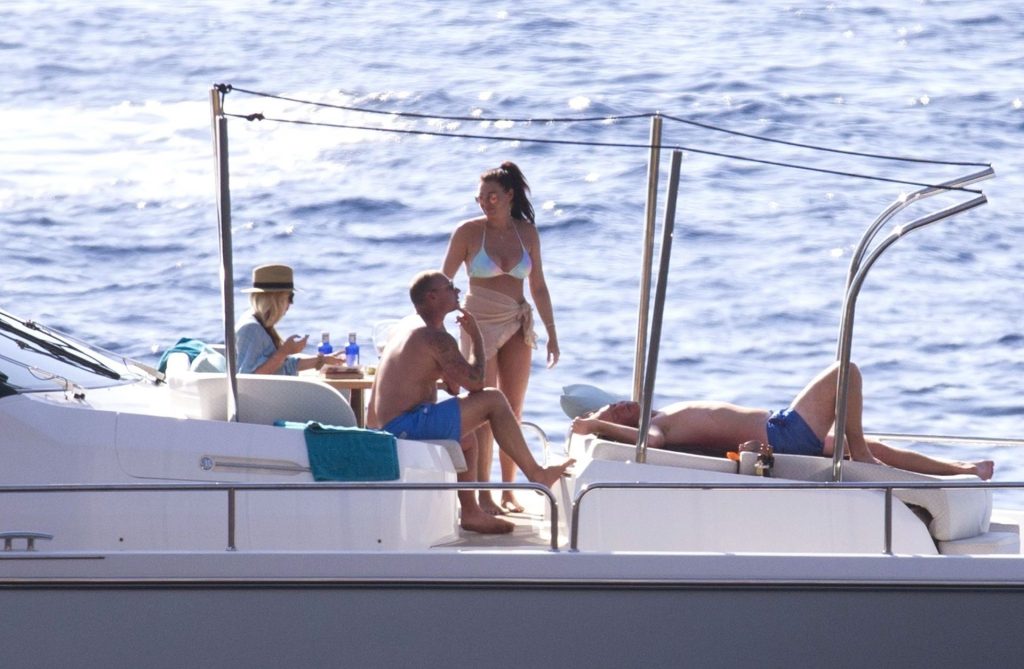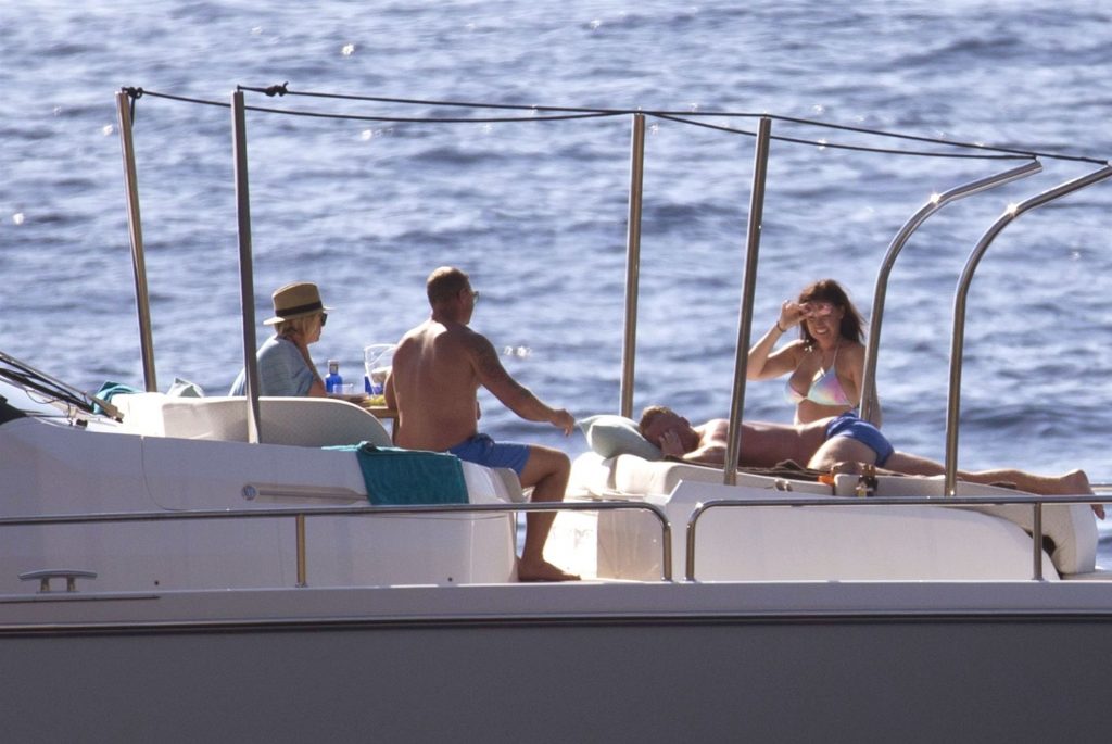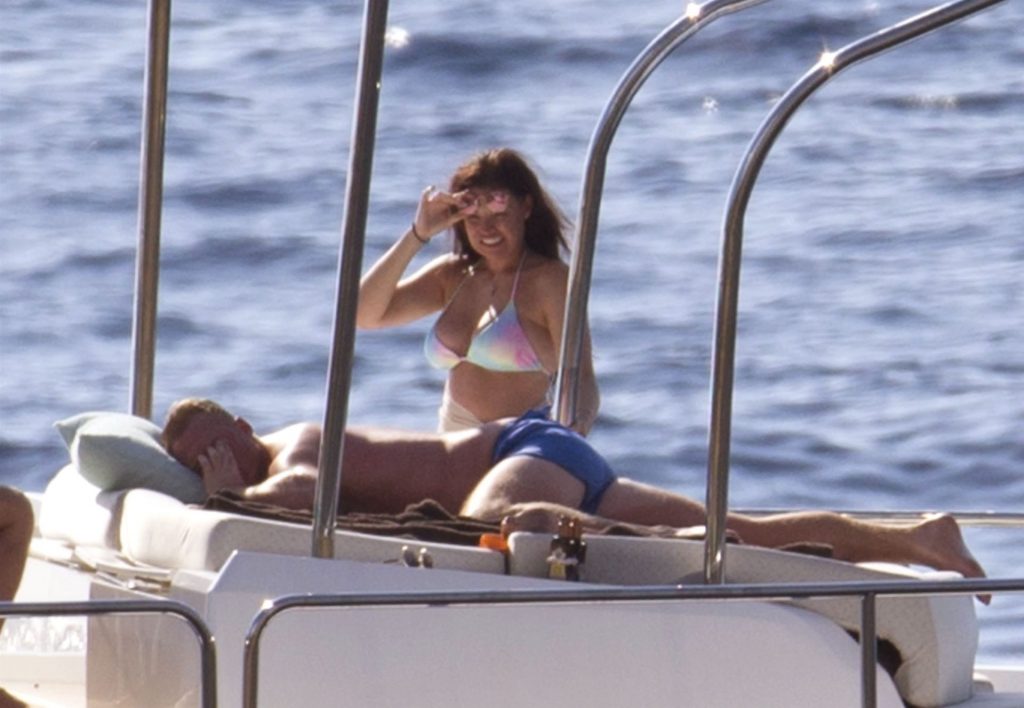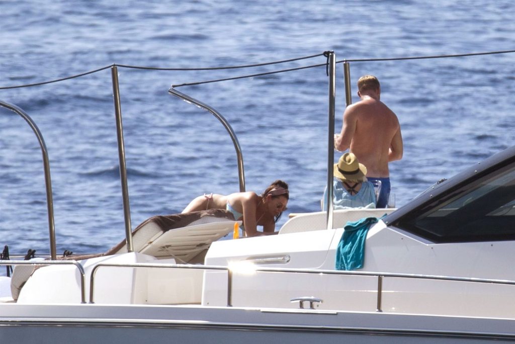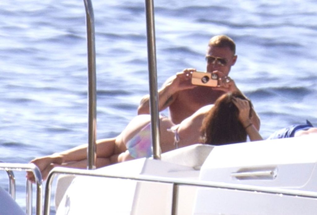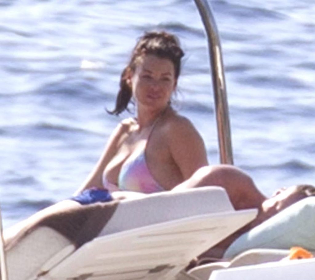 A estrela do TOWIE Jessica Wright veste seu biquíni minúsculo aproveitando o sol espanhol com seu namorado William Lee-Kemp e a família, desfrutando de um dia à beira-mar em seu iate com sua família em Mallorca, Espanha, 15/07/2020.