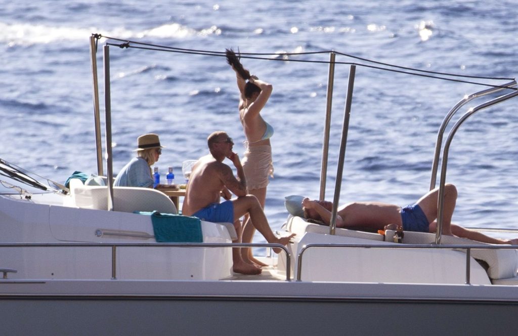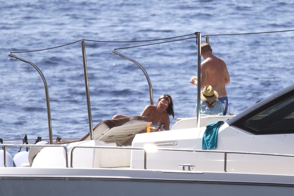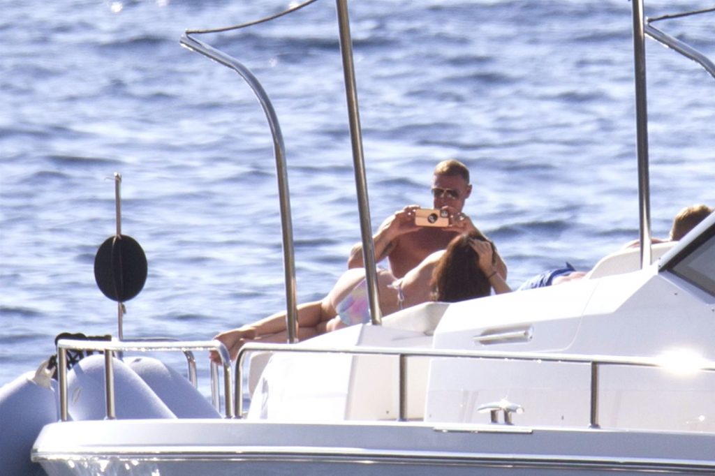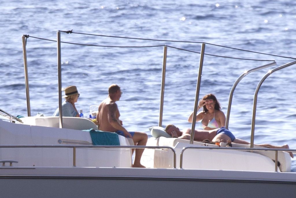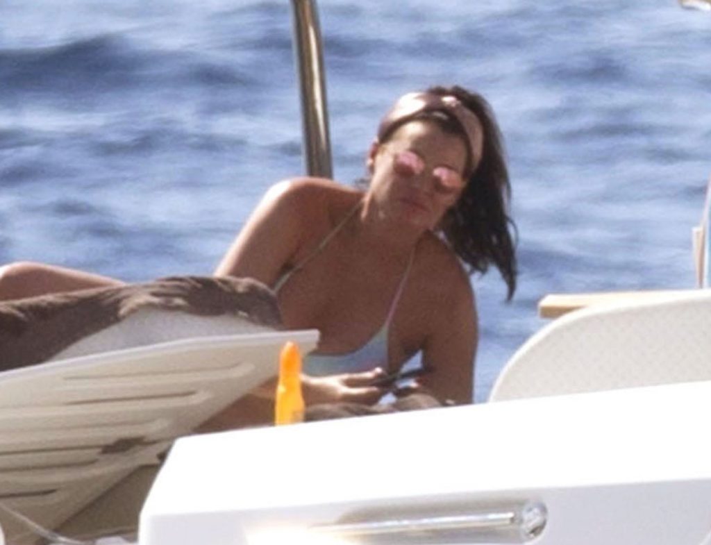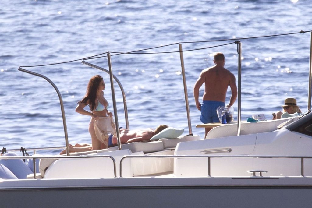 A estrela do TOWIE Jessica Wright veste seu biquíni minúsculo aproveitando o sol espanhol com seu namorado William Lee-Kemp e a família, desfrutando de um dia à beira-mar em seu iate com sua família em Mallorca, Espanha, 15/07/2020.
