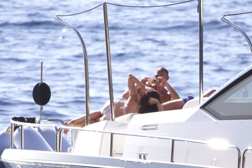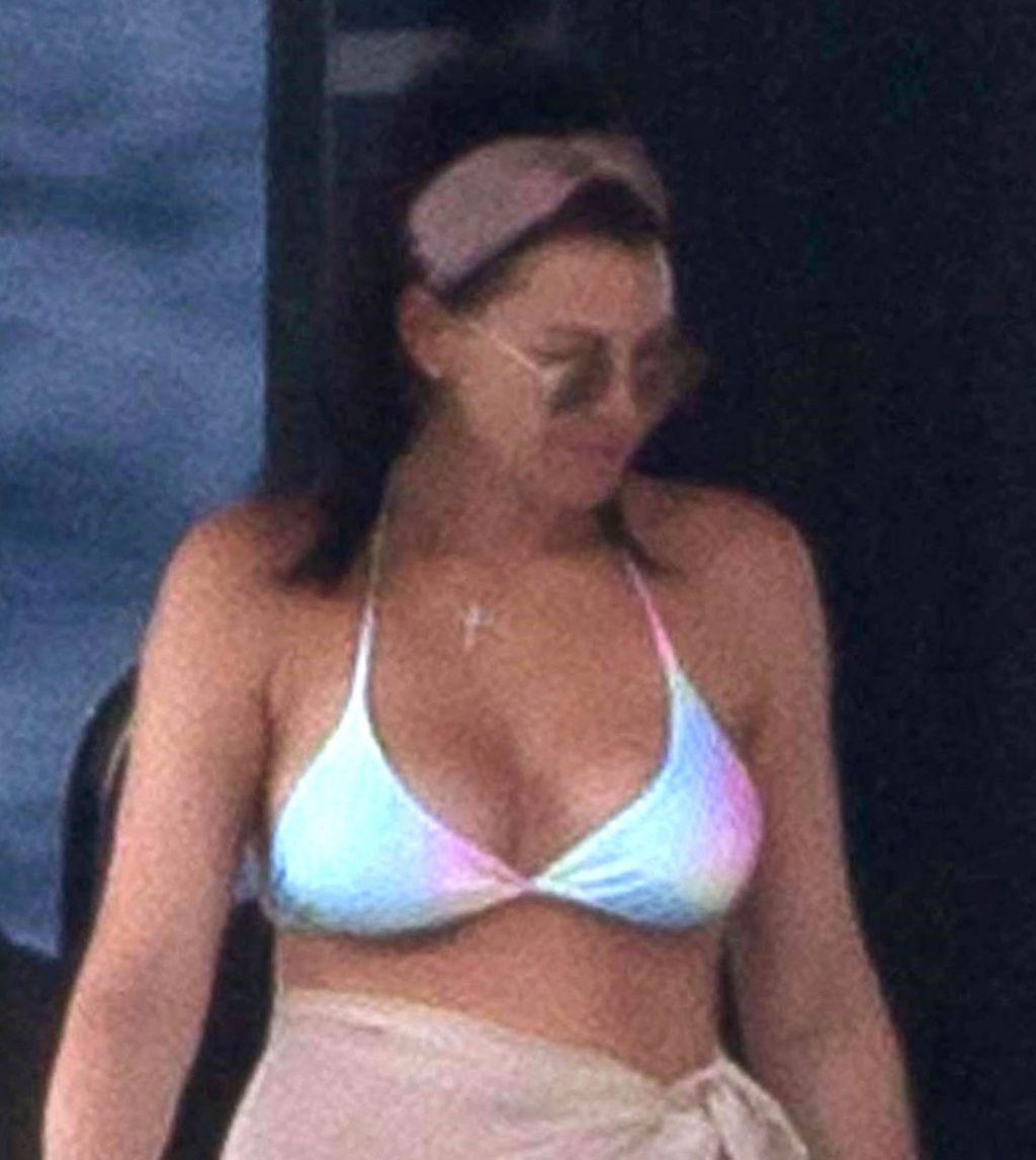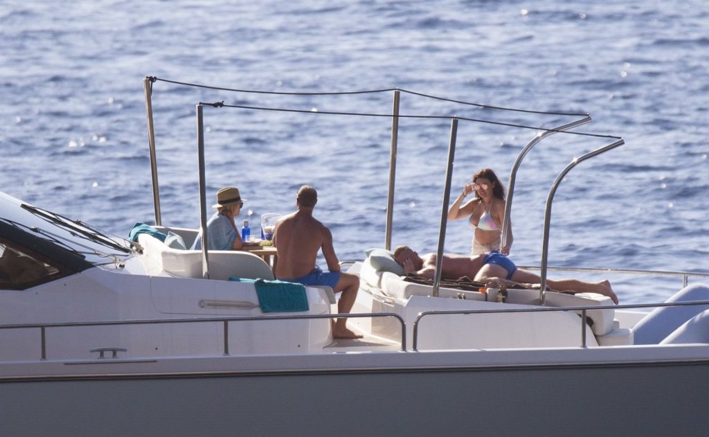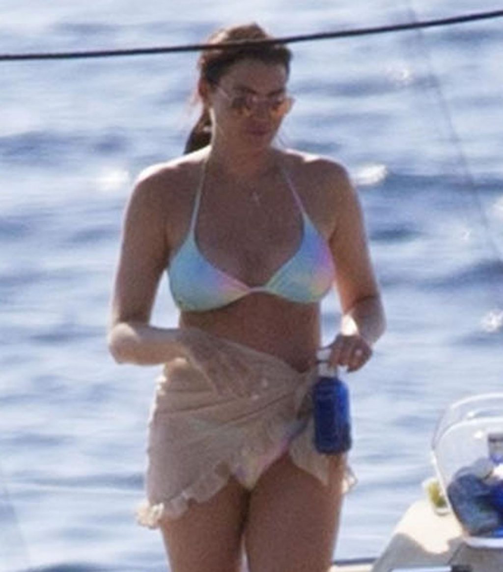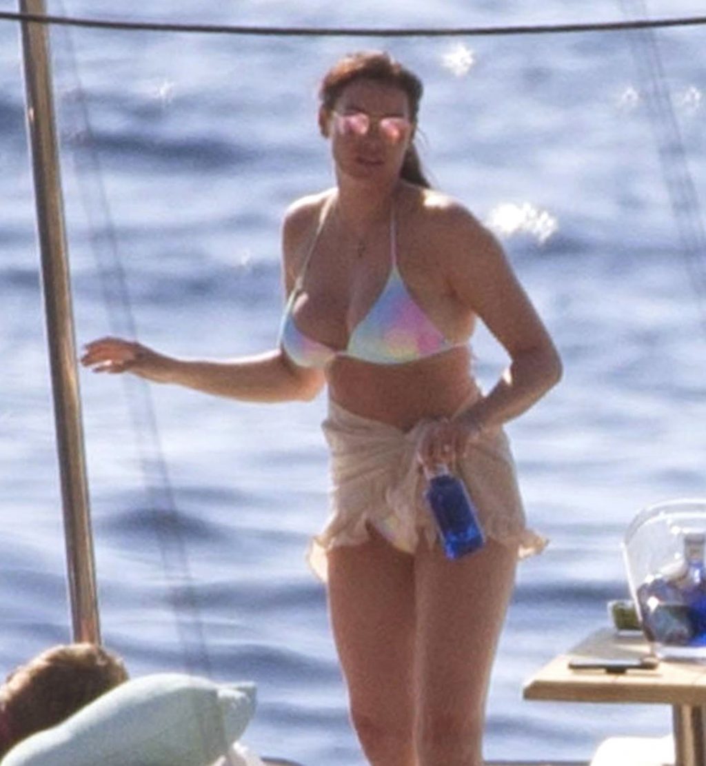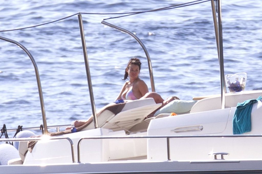 A estrela do TOWIE Jessica Wright veste seu biquíni minúsculo aproveitando o sol espanhol com seu namorado William Lee-Kemp e a família, desfrutando de um dia à beira-mar em seu iate com sua família em Mallorca, Espanha, 15/07/2020.