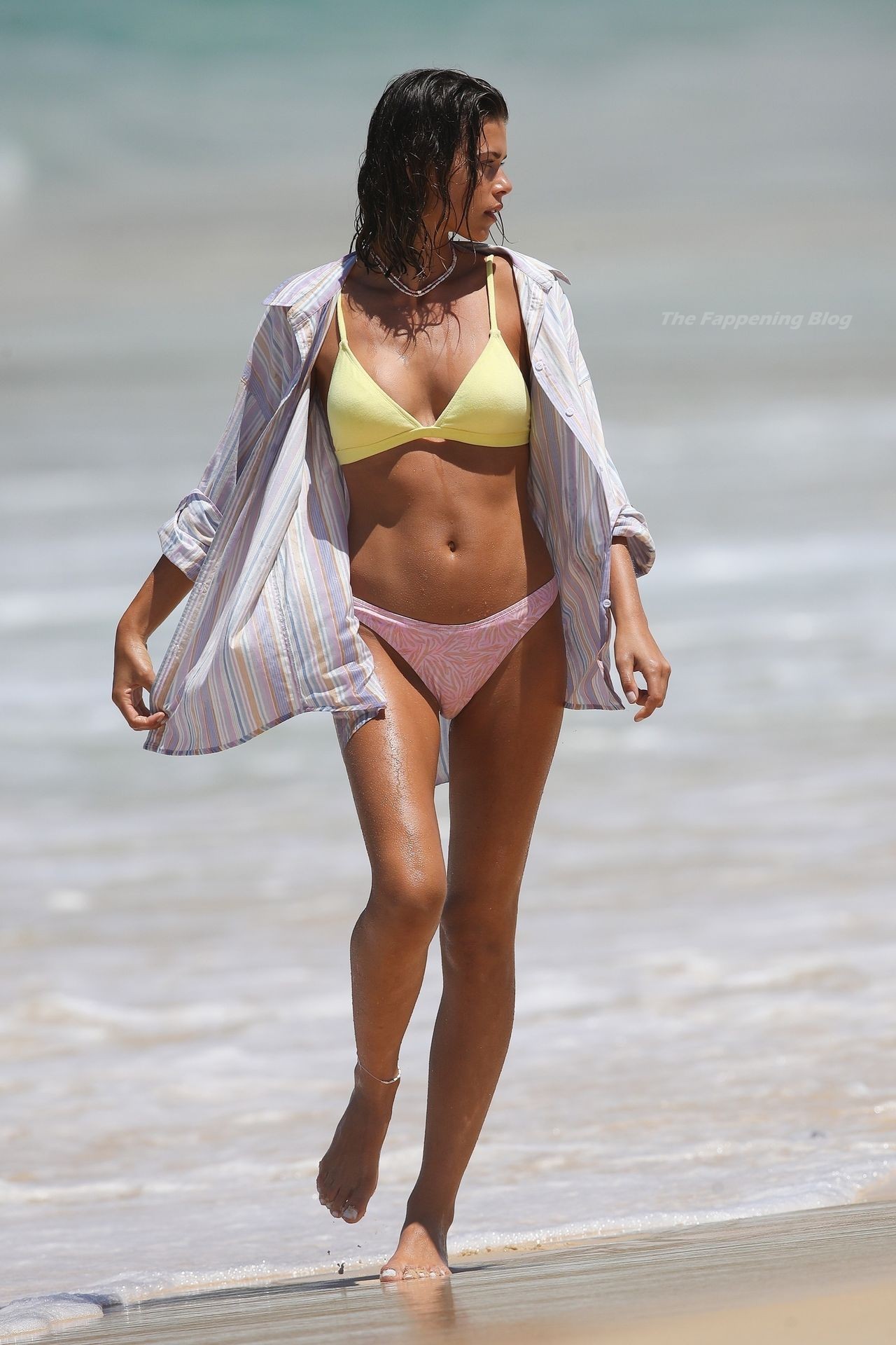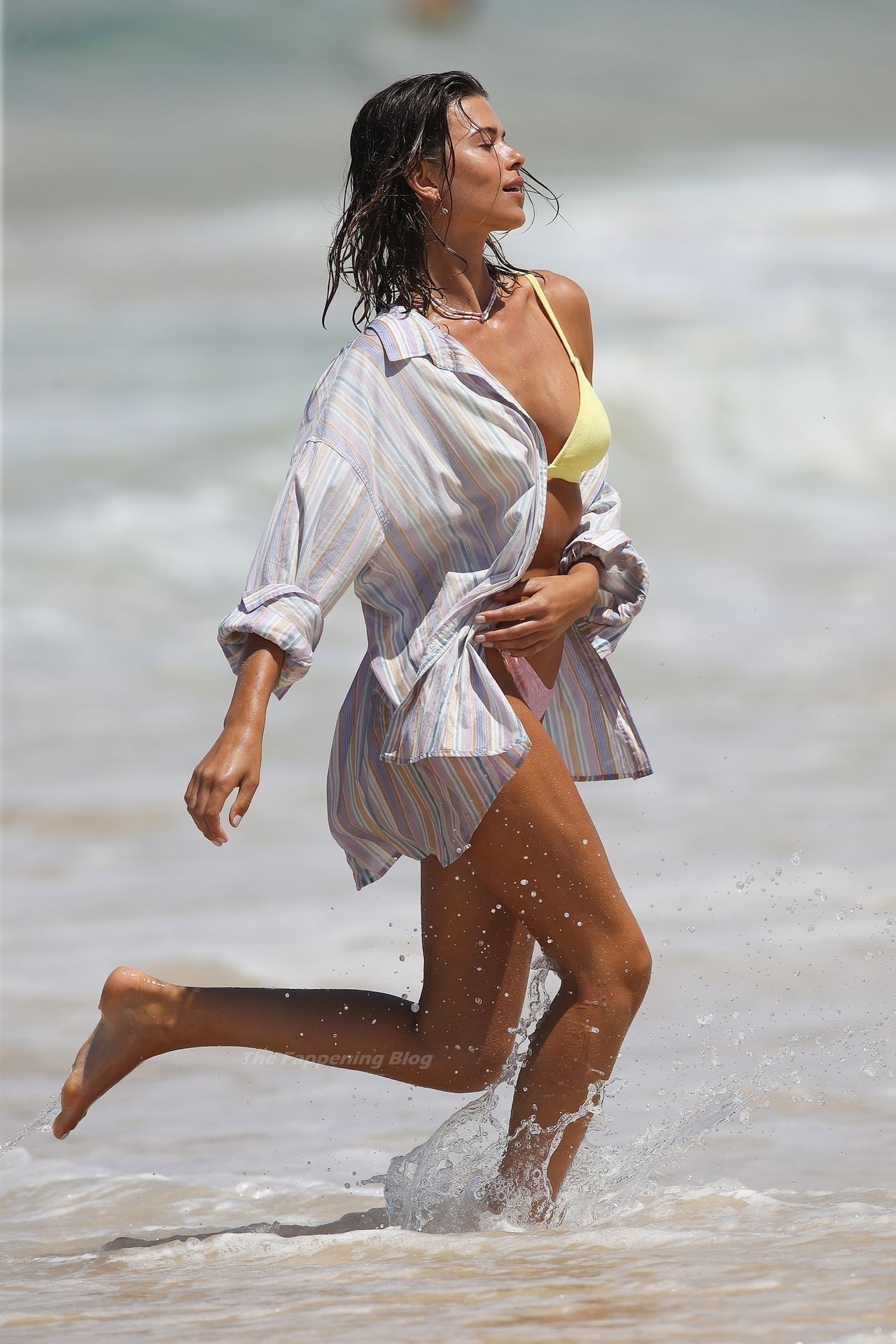 Modelo da Victoria’s Secret, Georgia Fowler aumenta o calor em Bondi, Sydney, enquanto posa para uma marca de roupas de banho, 01/02/2021.