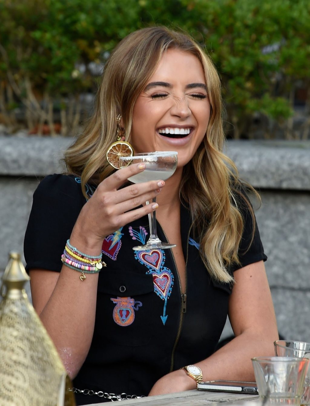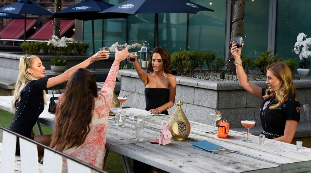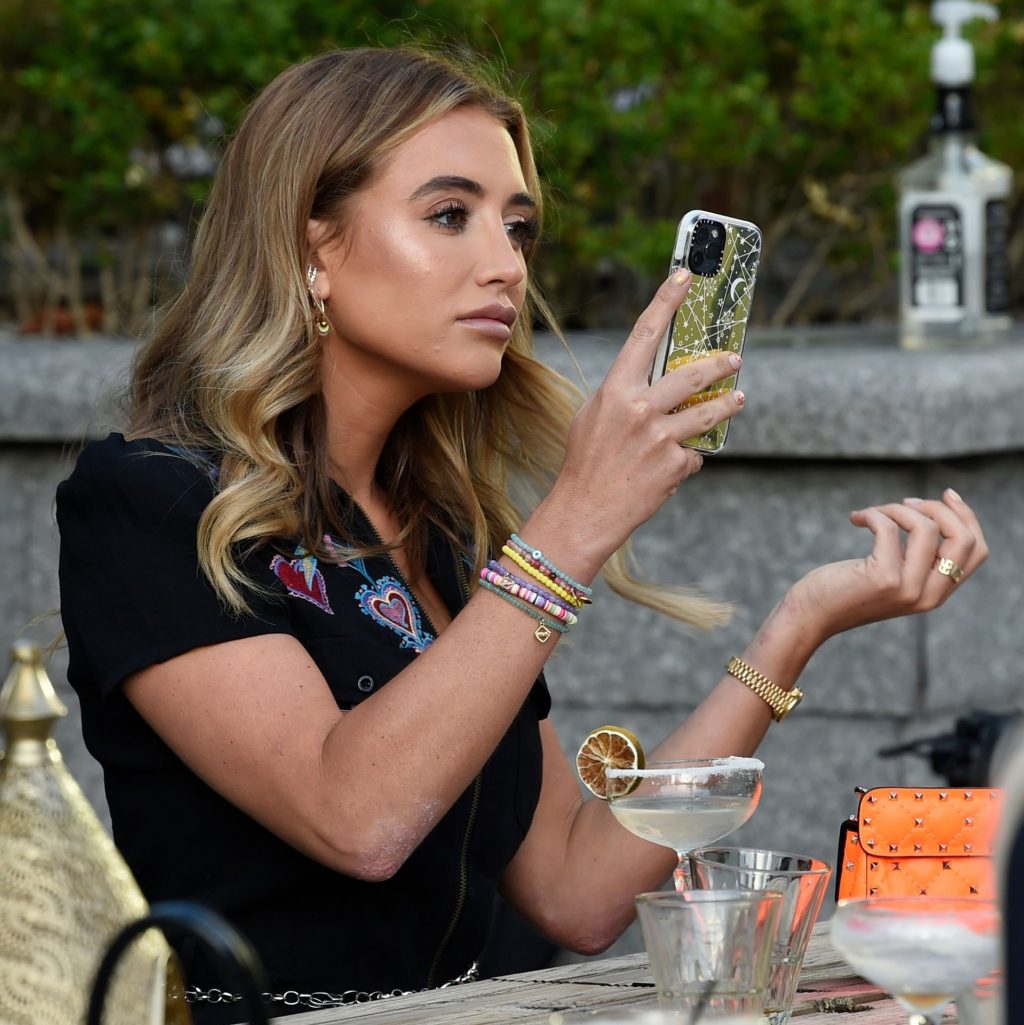 Love Island e a estrela de TOWIE Georgia Harrison exibe seus novos seios 32C de $8K enquanto grava Olivia Meets her Match com Nicole Bass e Fran Parman em Manchester no Impossible Bar, 09/02/2020.