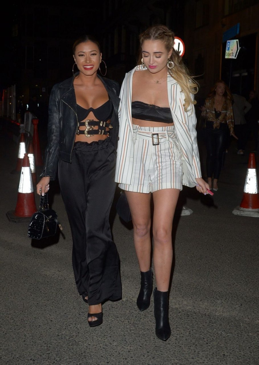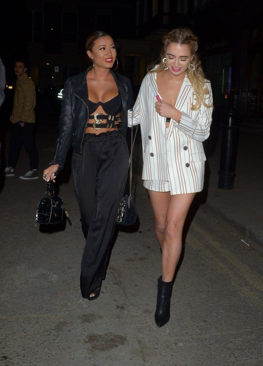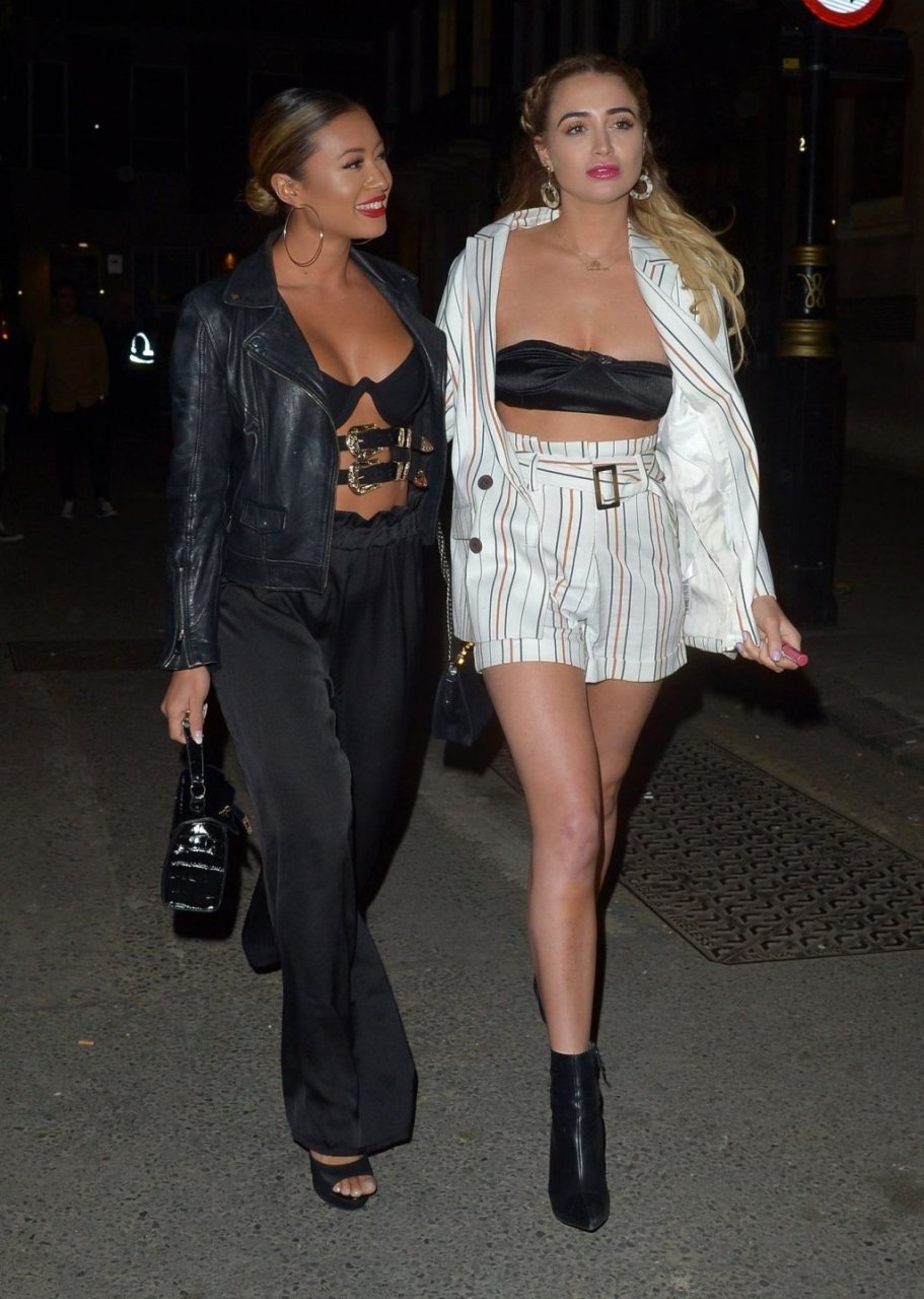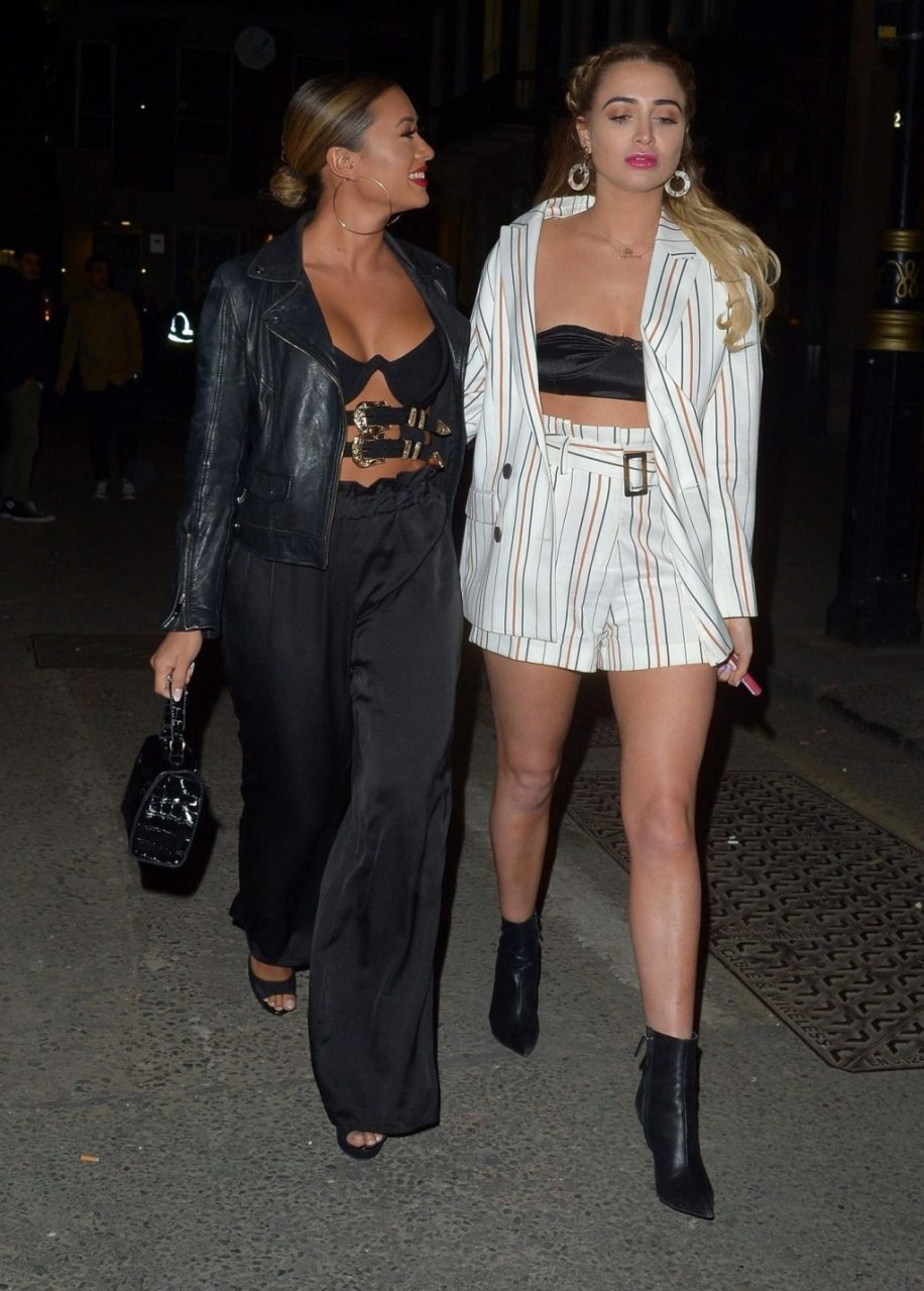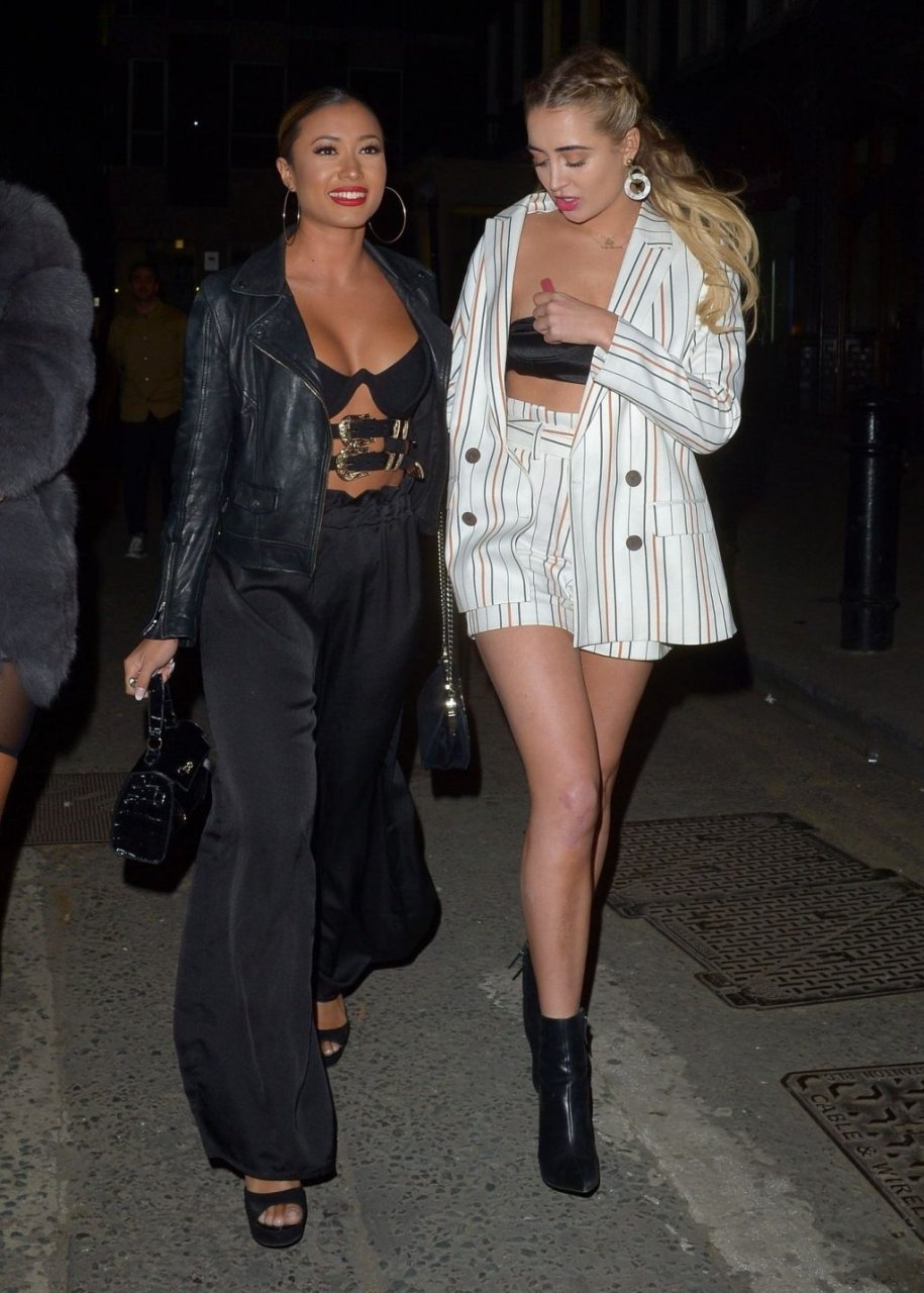 Estrelas de reality show Georgia Harrison e Kaz Crossley foram fotografadas saindo juntas do Tape Night Club em Mayfair, Londres, 12/04/2019.