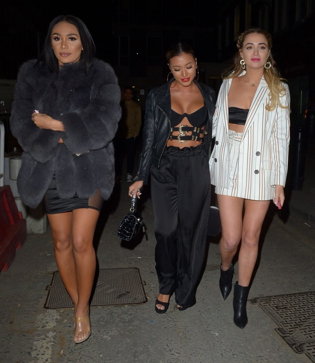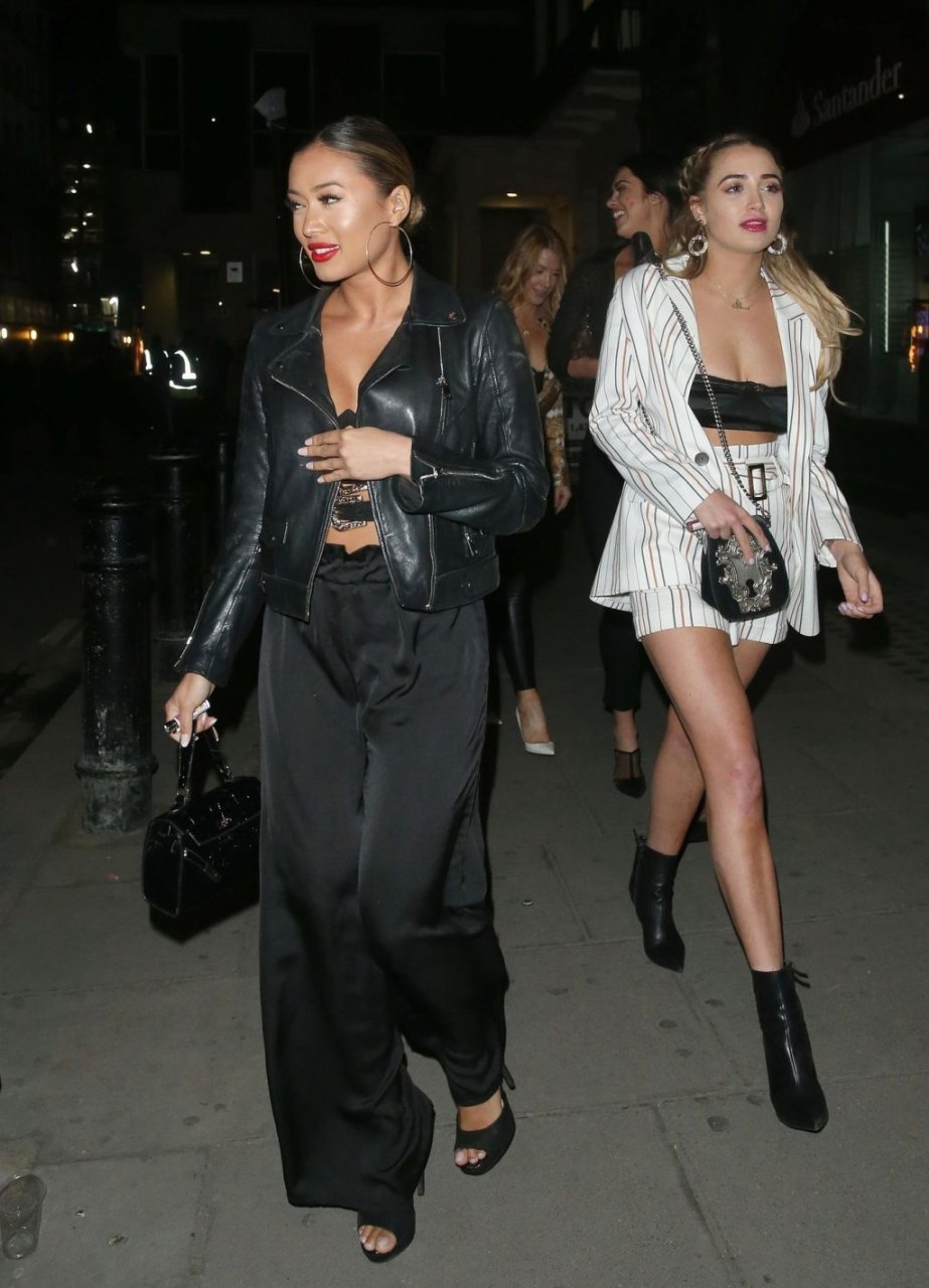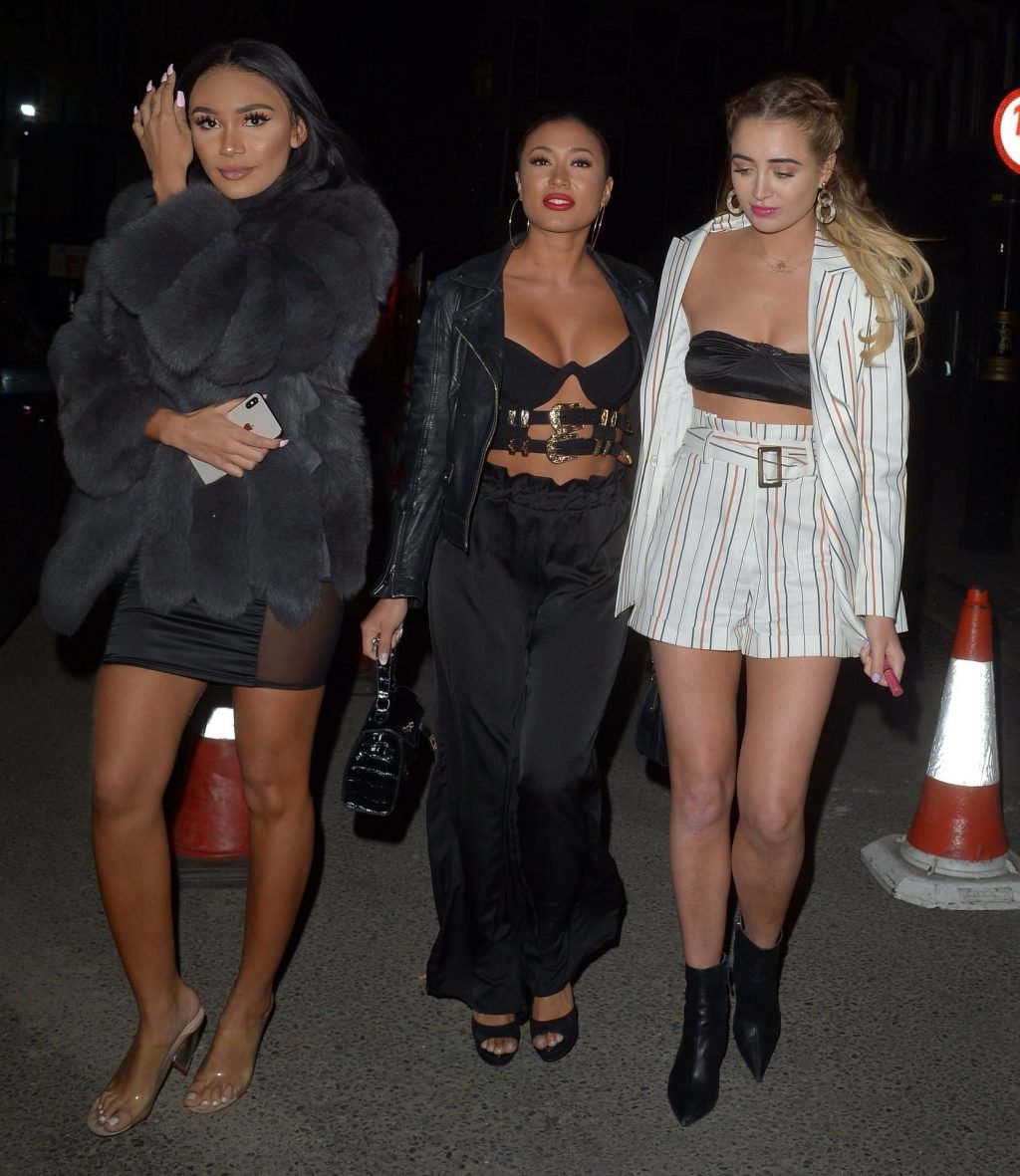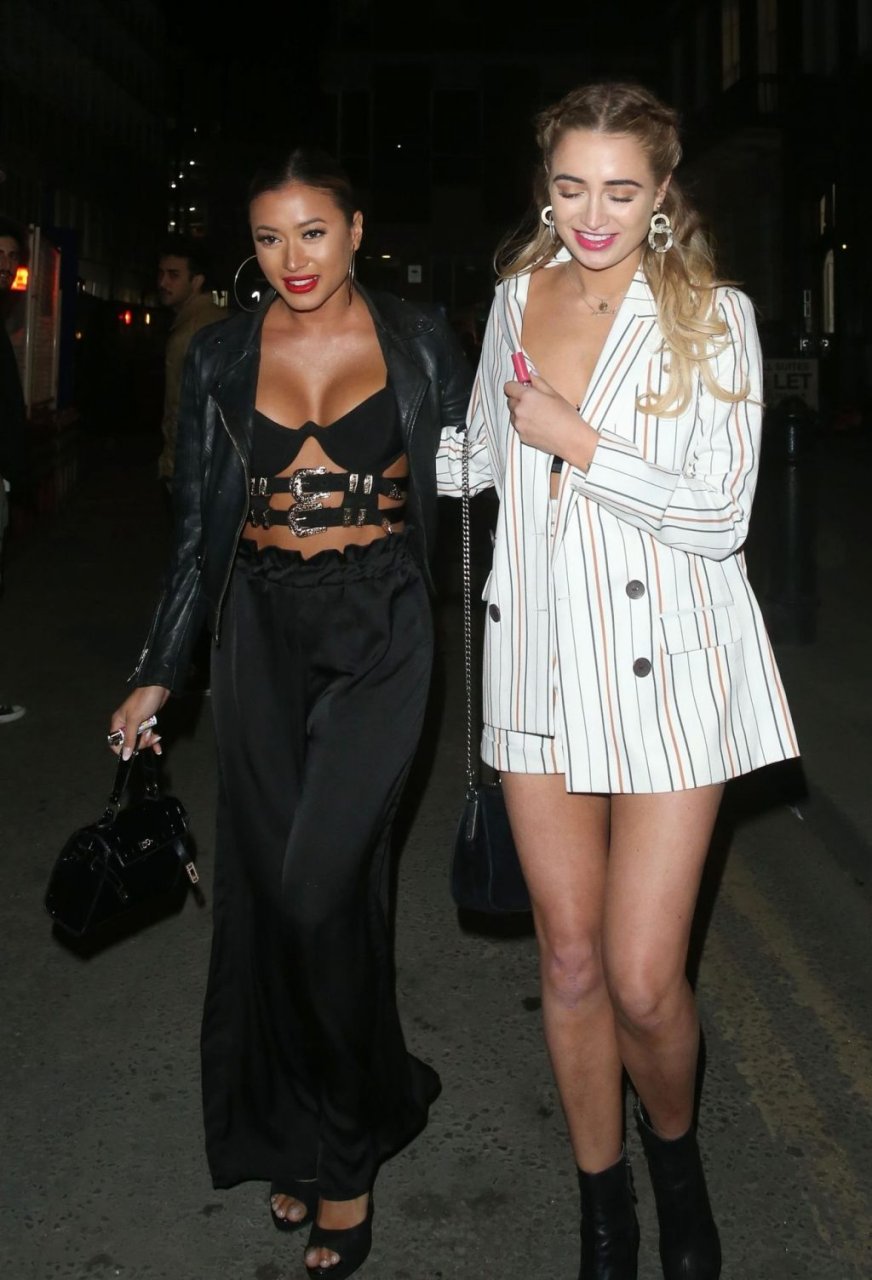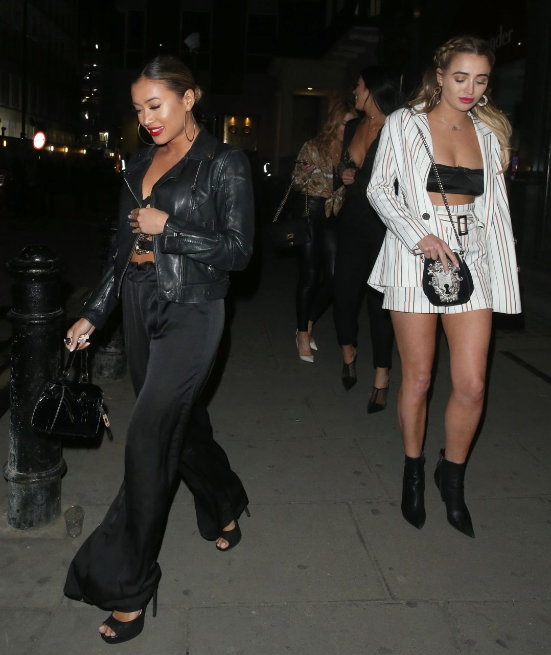 Estrelas de reality show Georgia Harrison e Kaz Crossley foram fotografadas saindo juntas do Tape Night Club em Mayfair, Londres, 12/04/2019.