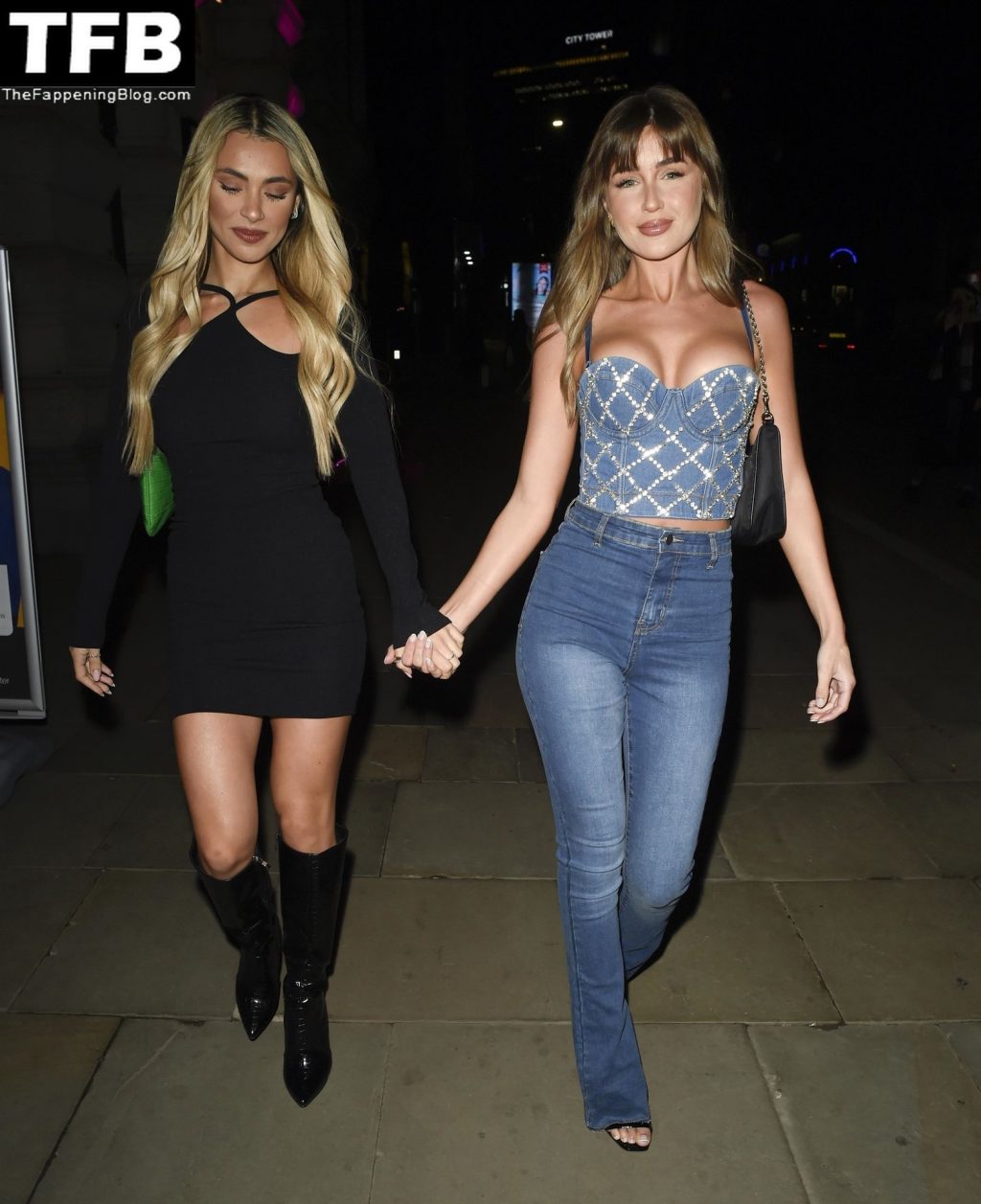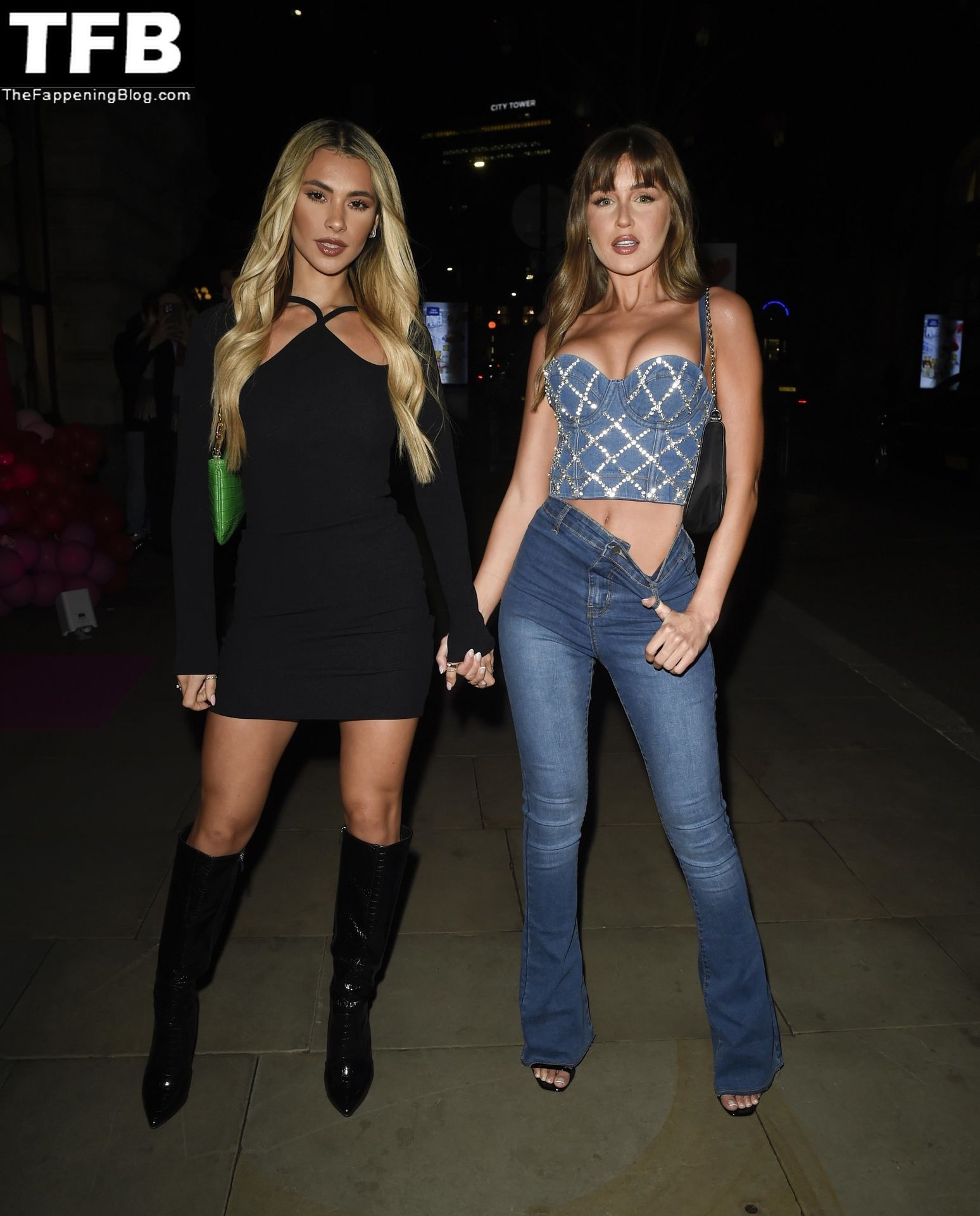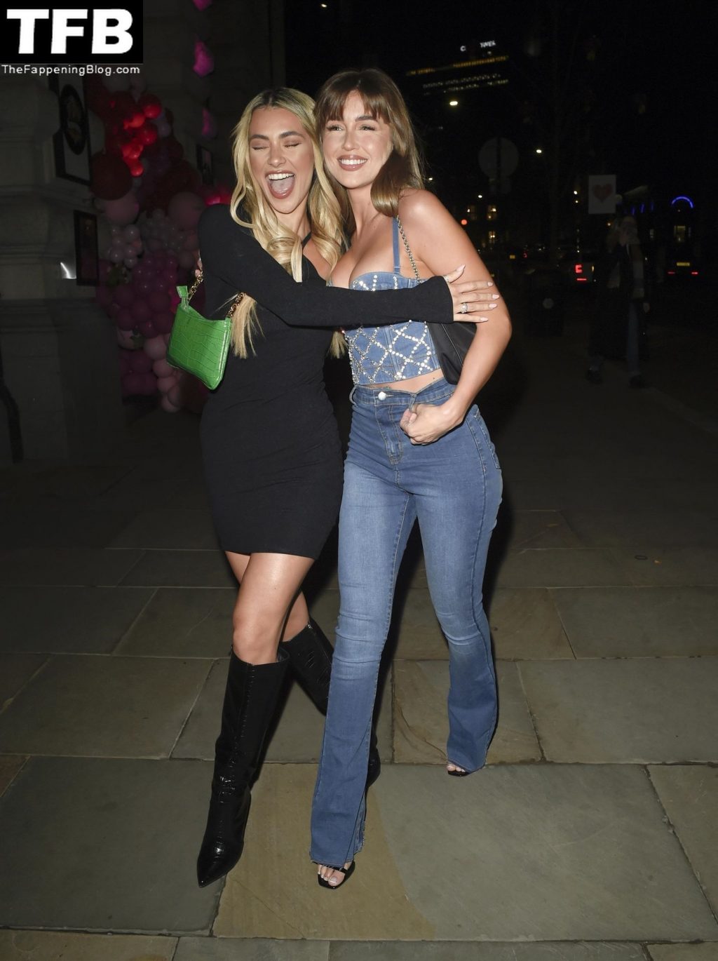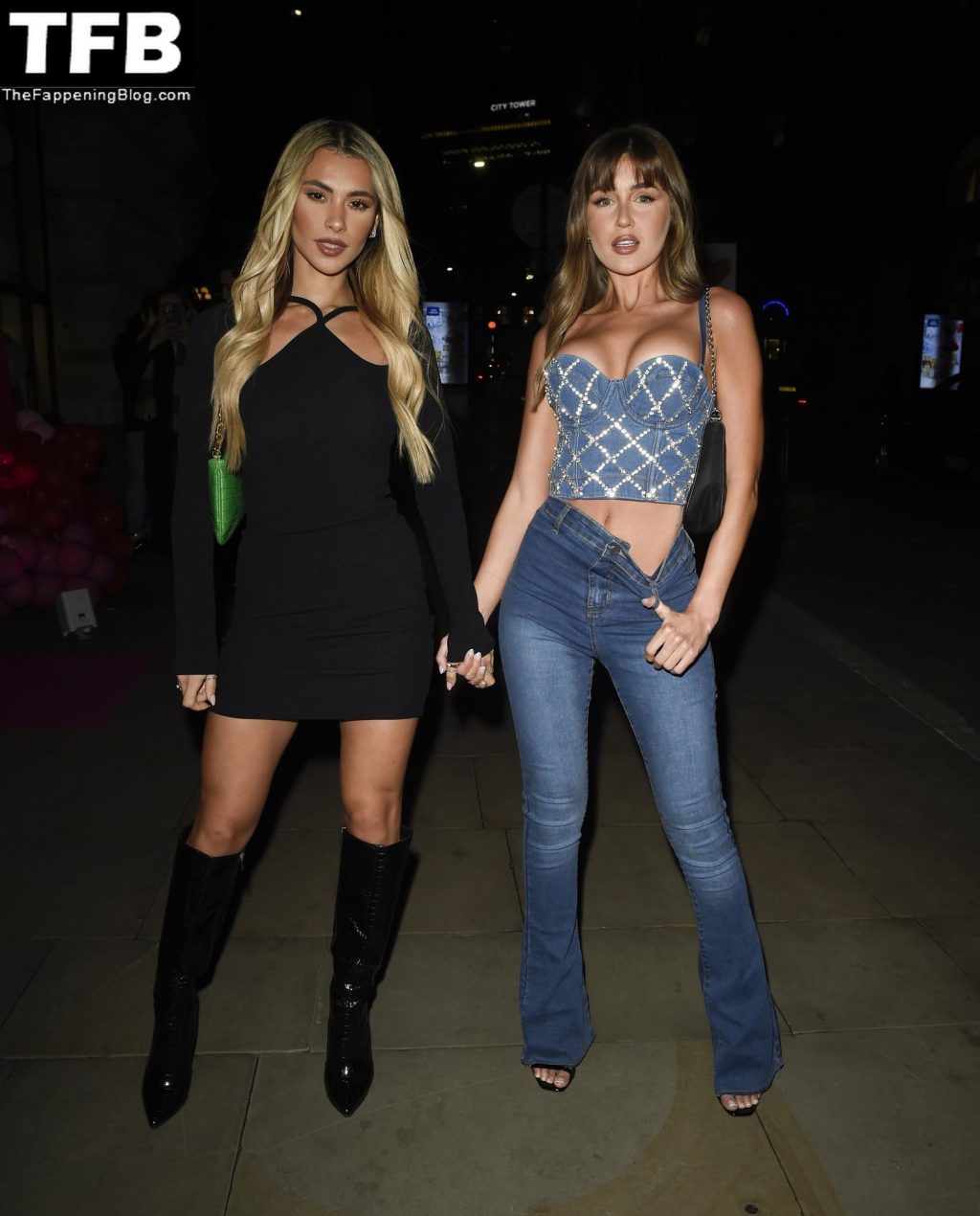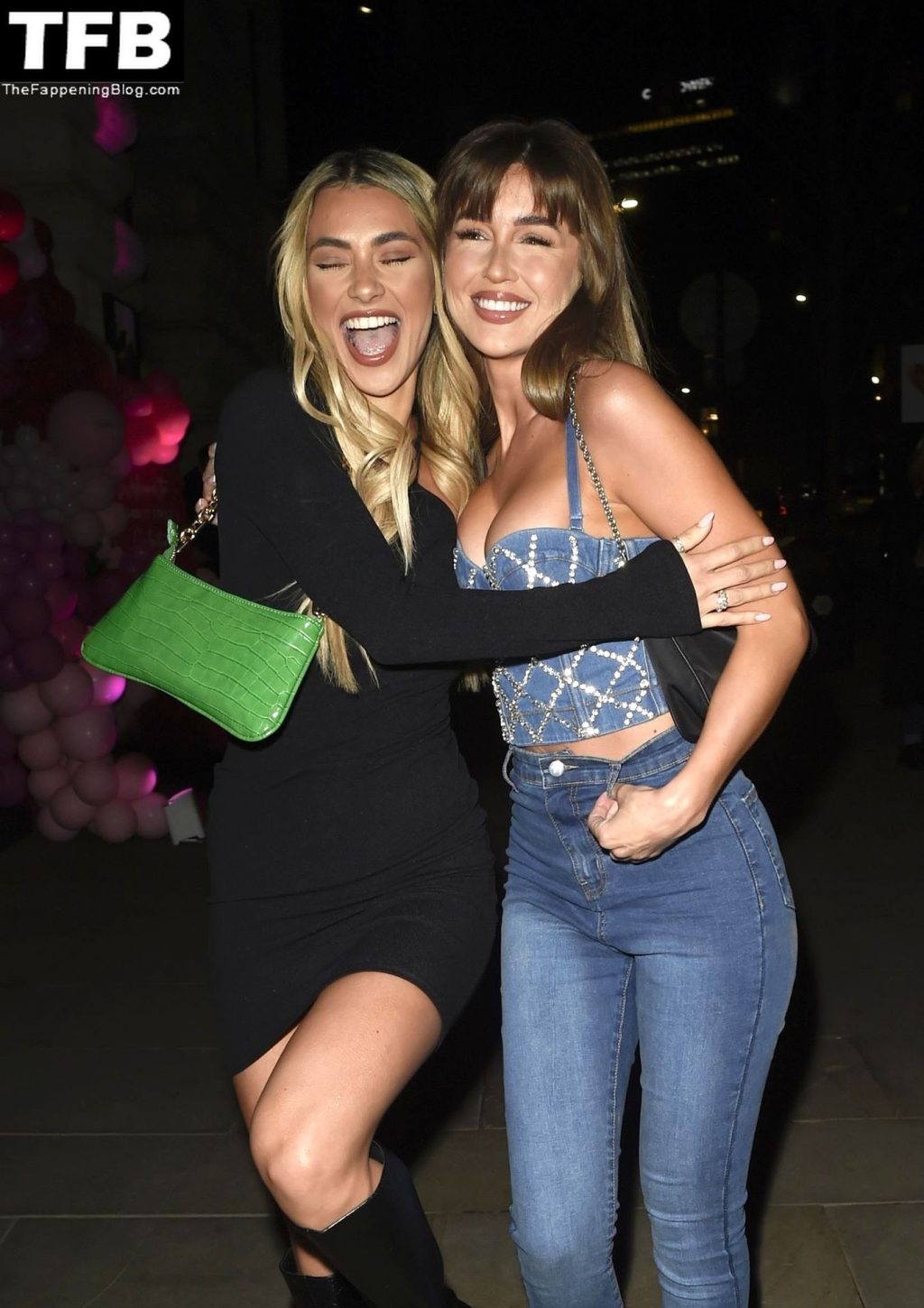 Love Island’s Georgia Steel e Joanna Chimonides são vistas chegando ao Galentine’s “I Saw It First” no L Antica De Michele em Manchester, 02/03/2022.