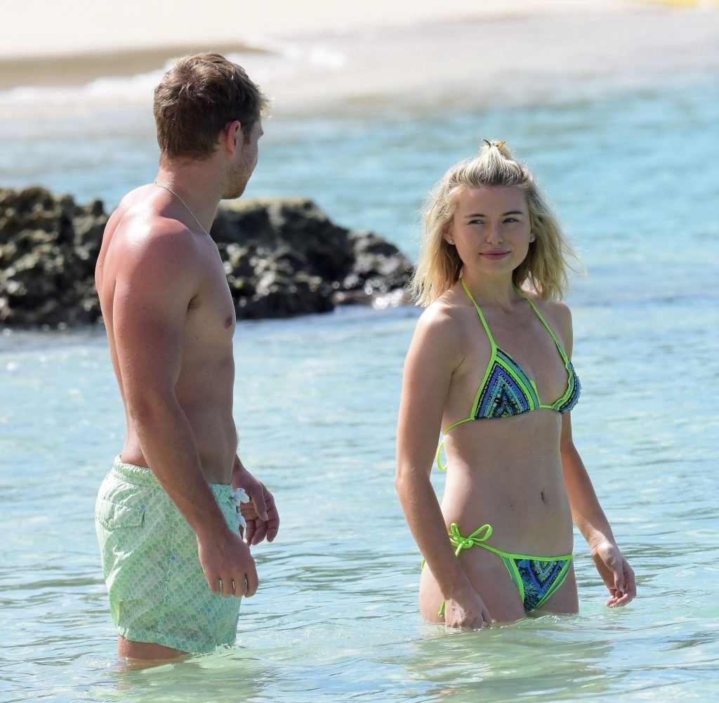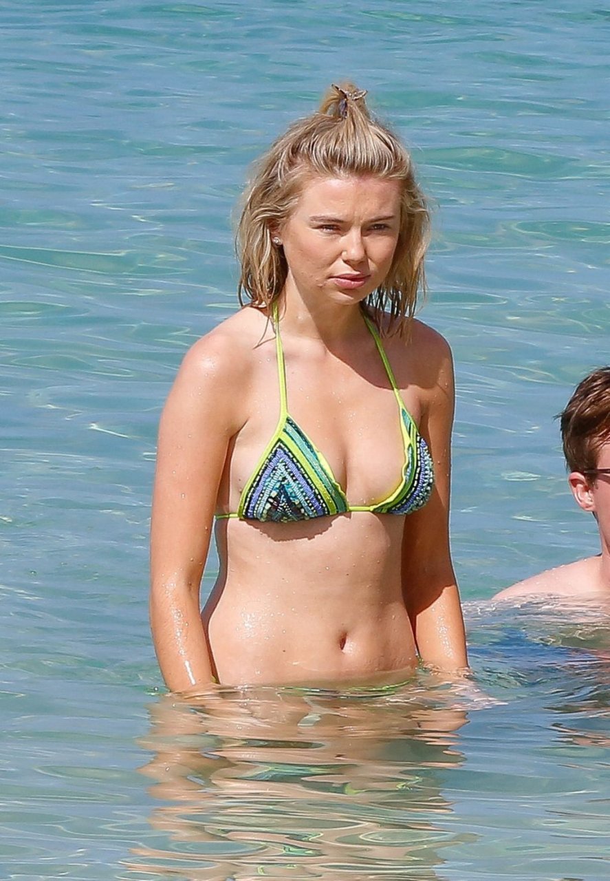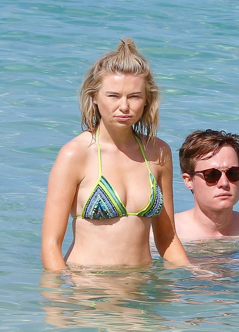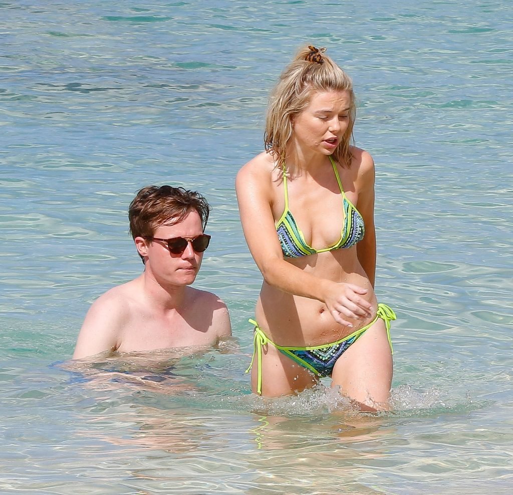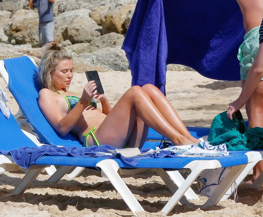 Georgia “Toff” Toffolo, Rainha da Selva, foi vista na praia usando um biquíni verde minúsculo durante férias em Barbados, 01/07/2019.