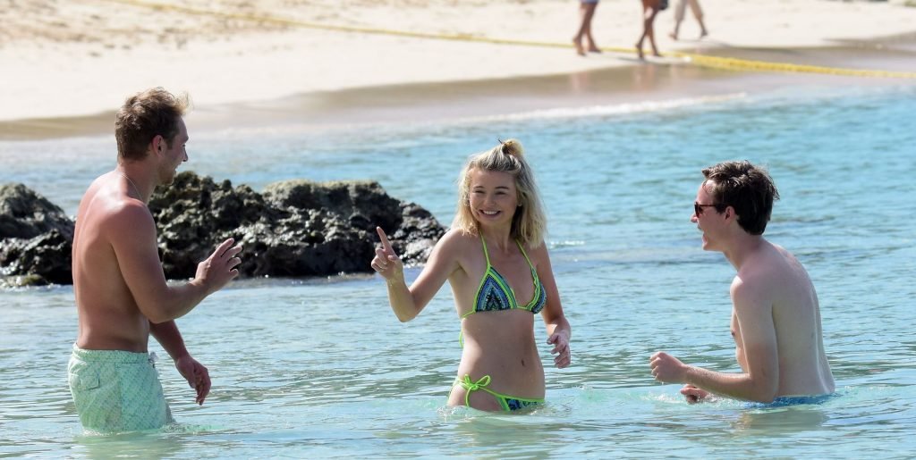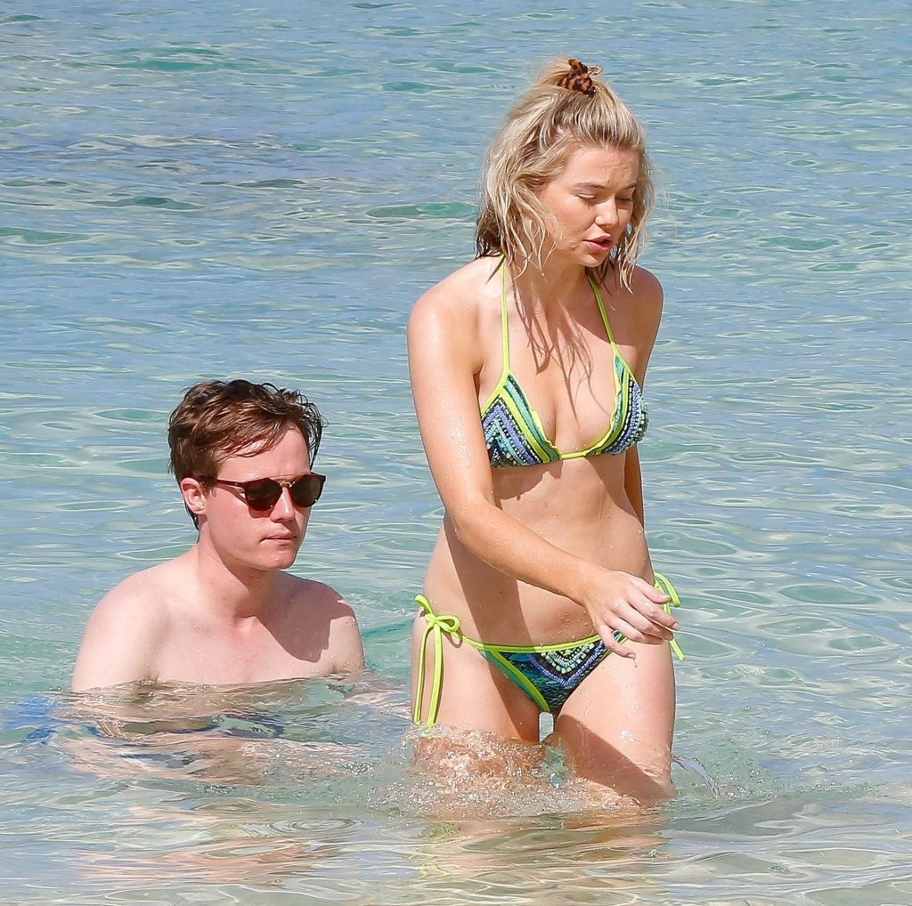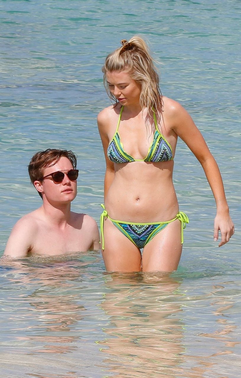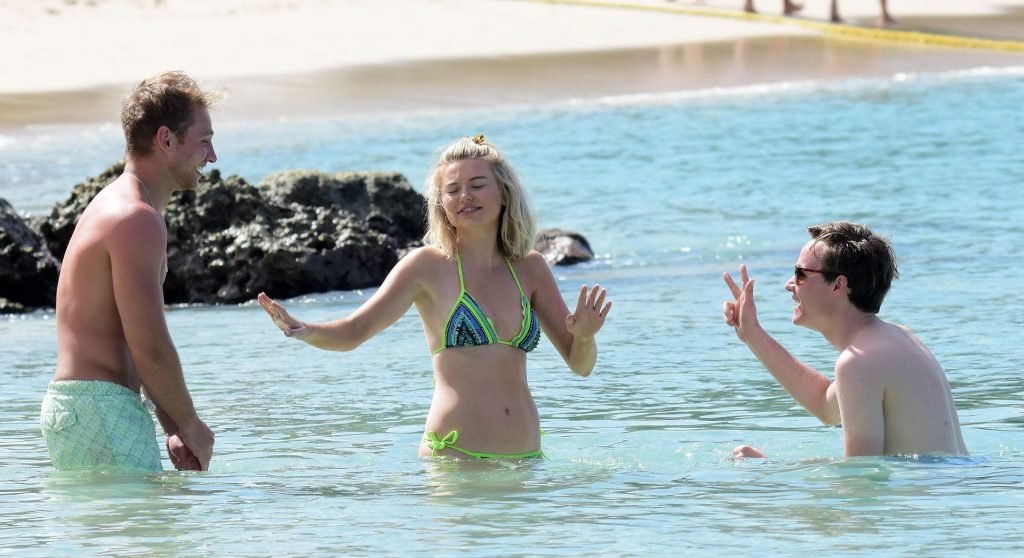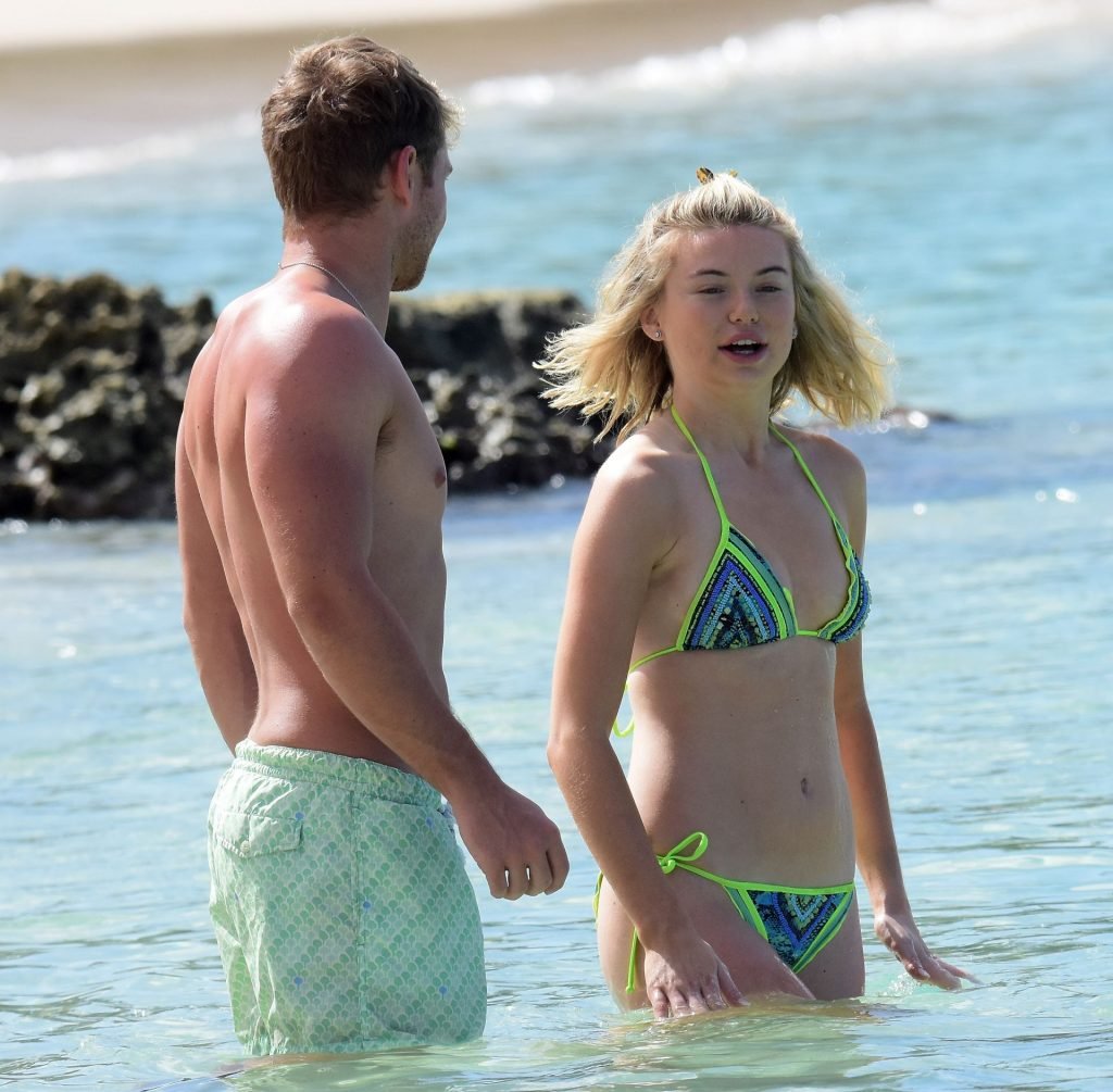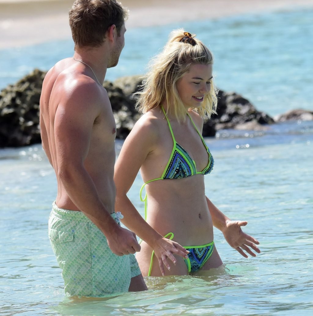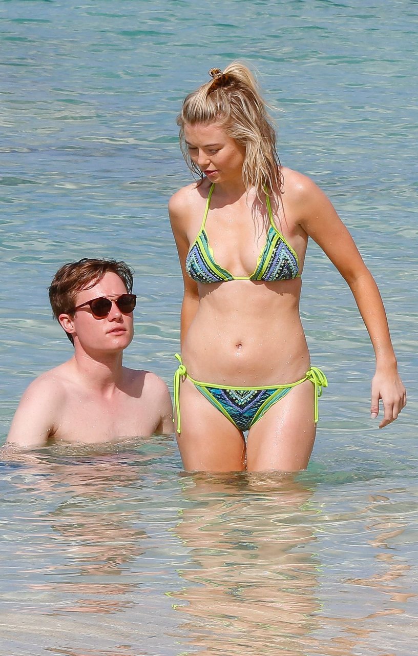 Georgia “Toff” Toffolo, Rainha da Selva, foi vista na praia usando um biquíni verde minúsculo durante férias em Barbados, 01/07/2019.