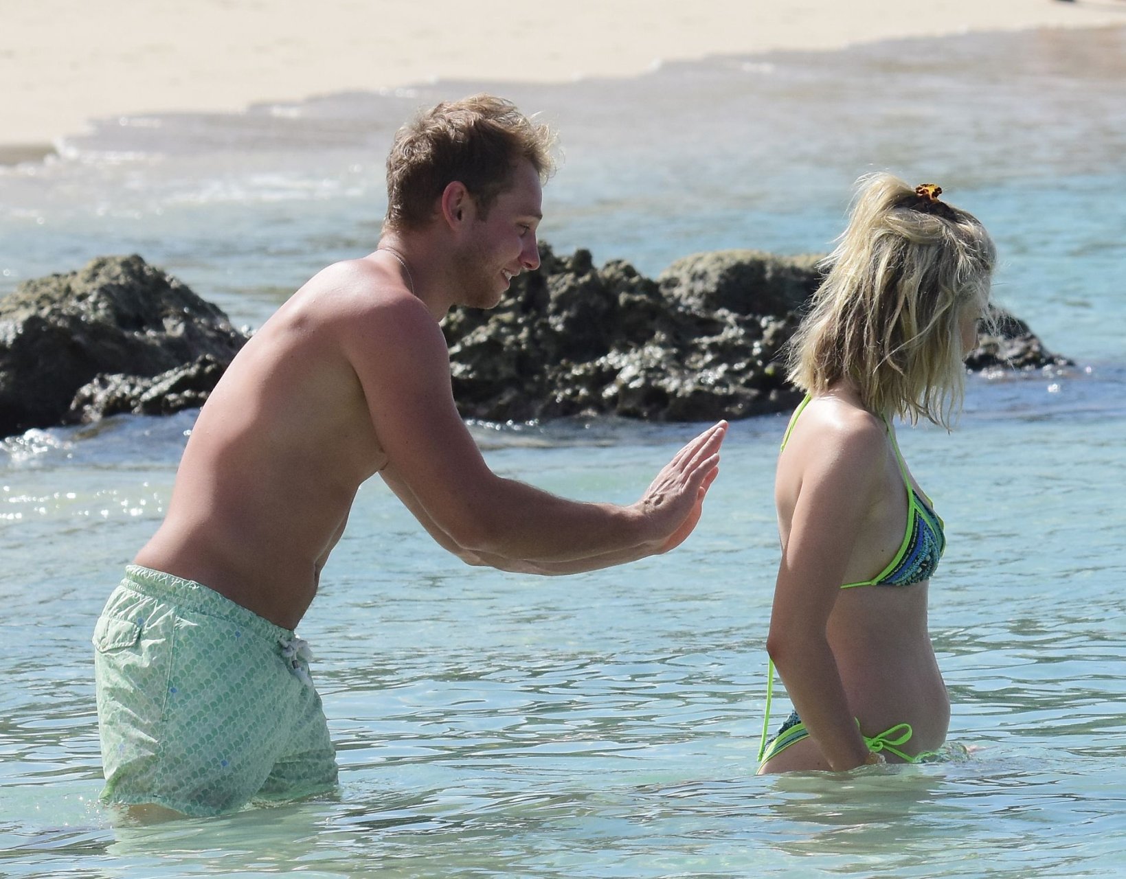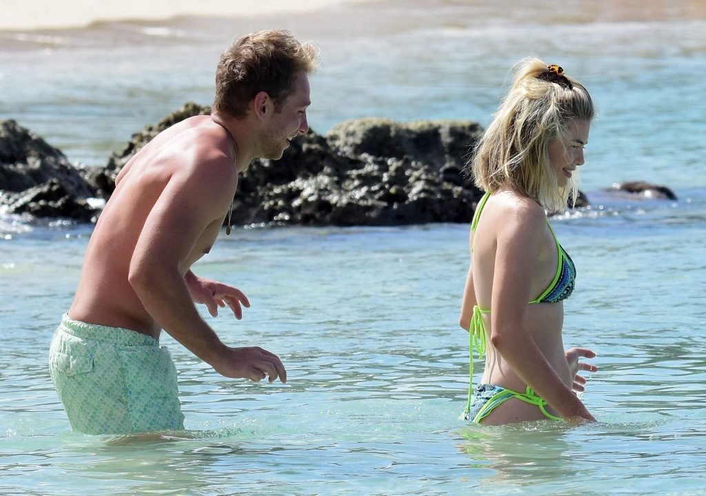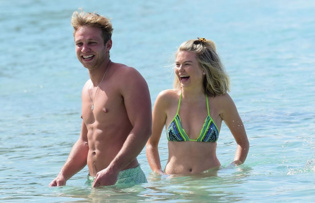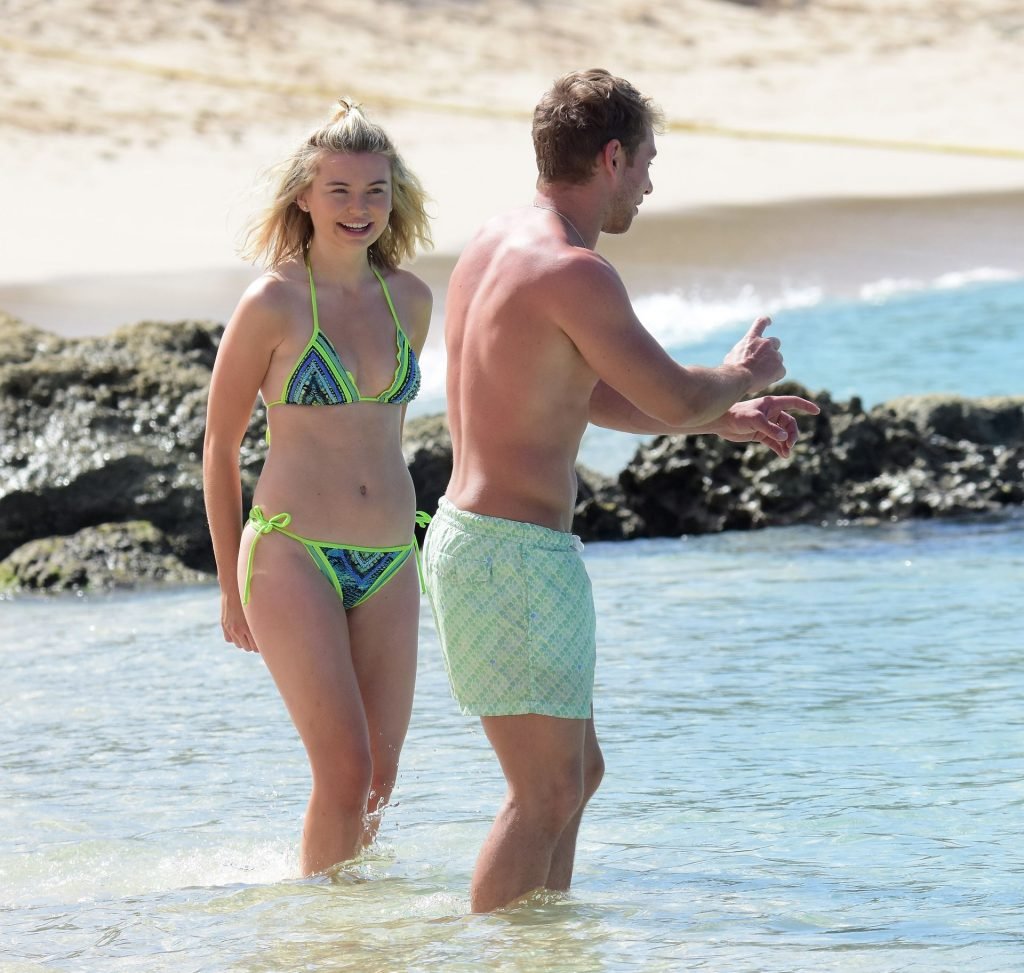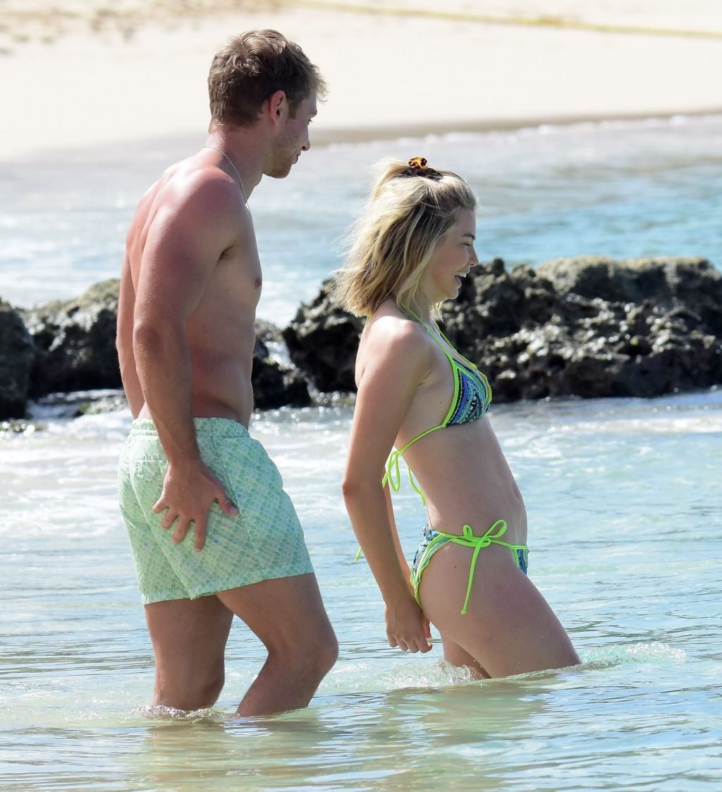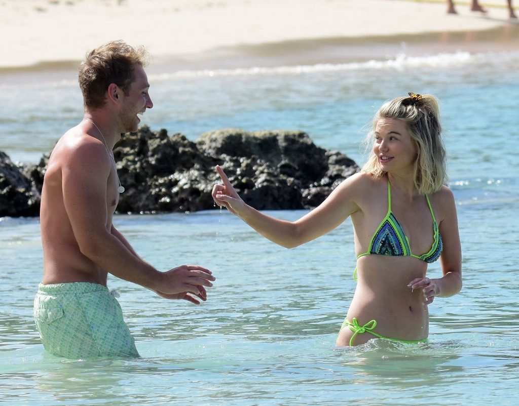 Georgia “Toff” Toffolo, Rainha da Selva, foi vista na praia usando um biquíni verde minúsculo durante férias em Barbados, 01/07/2019.