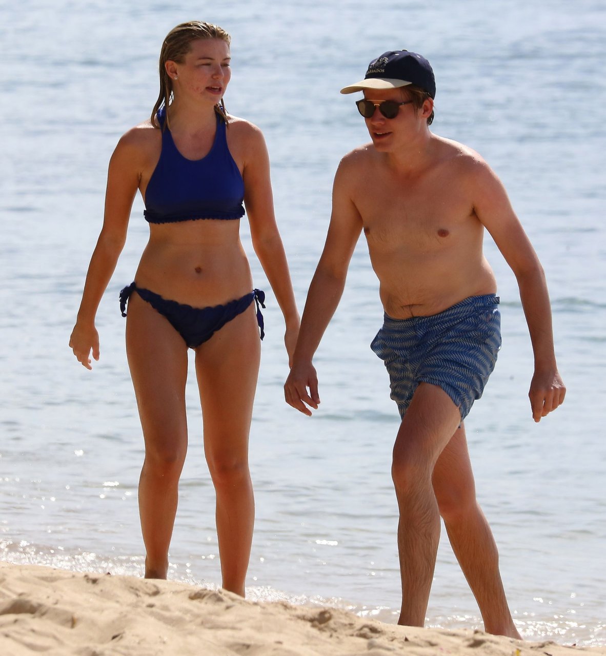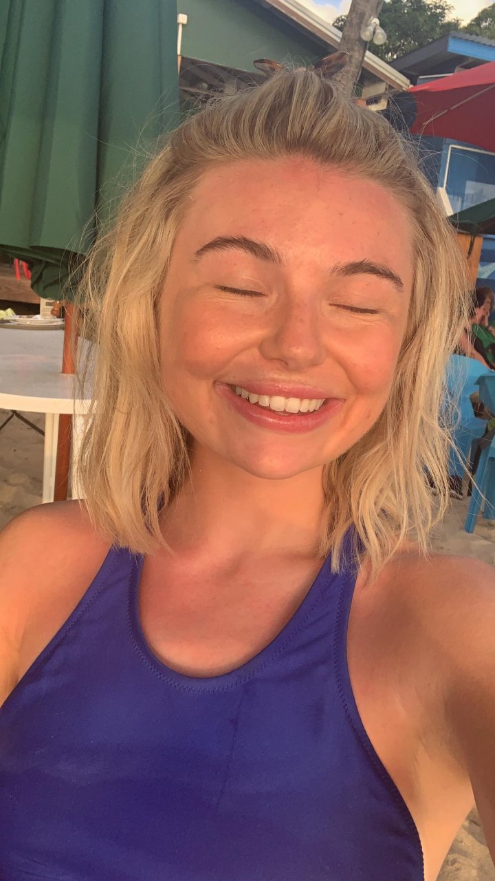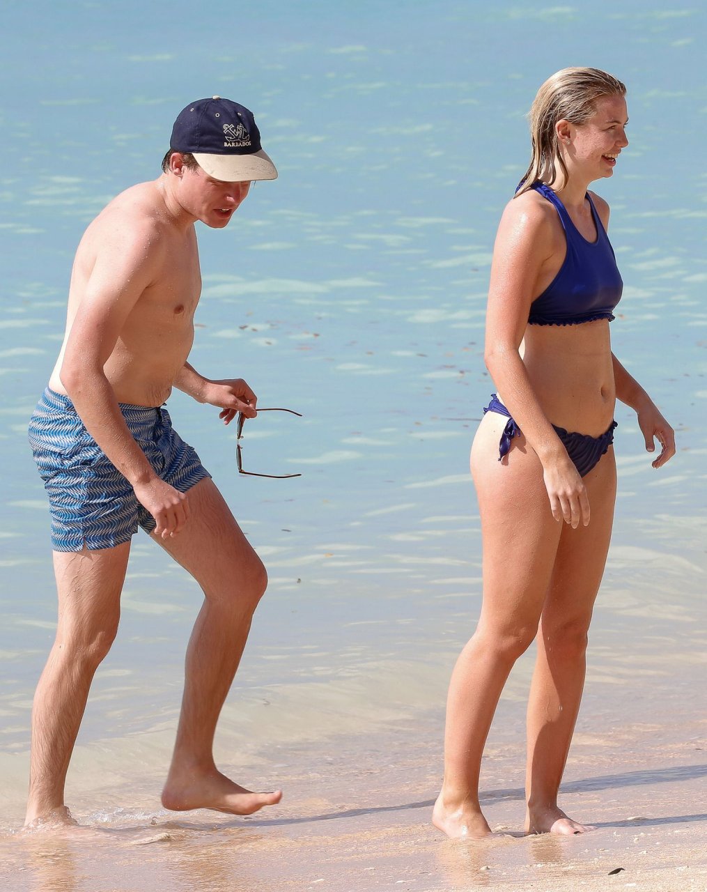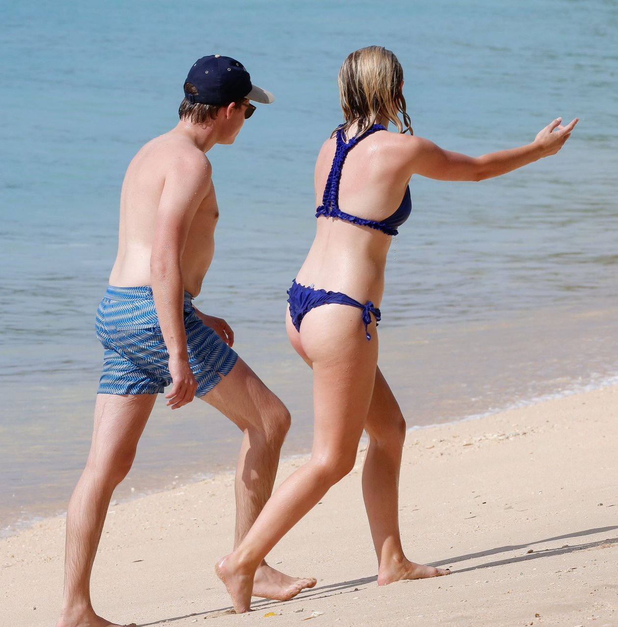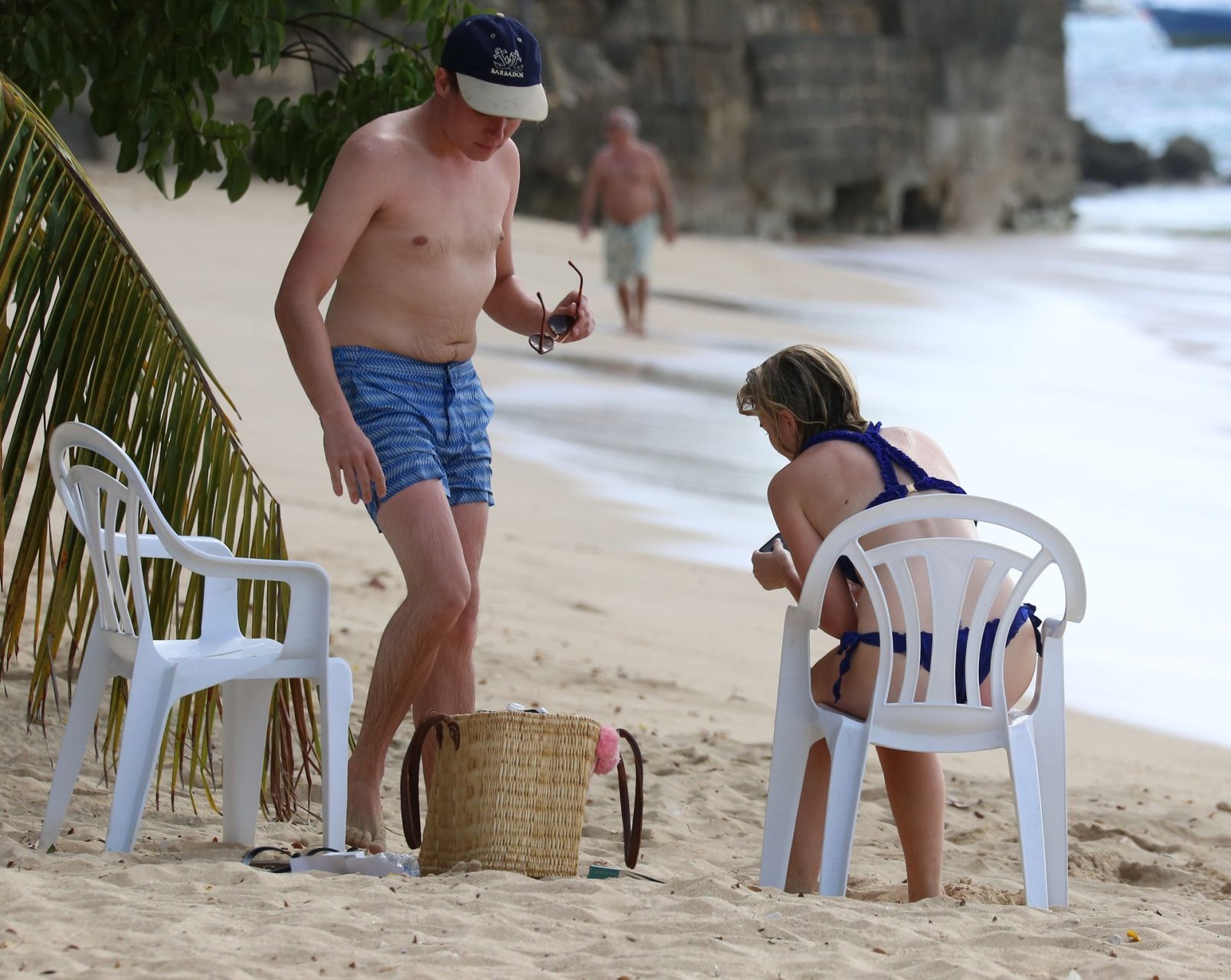 Georgia “Toff” Toffolo, Rainha da Selva, foi vista na praia usando um biquíni azul minúsculo durante as férias em Barbados, 01/10/2019. Seus mamilos ficaram duros e o bumbum ficou vermelho.