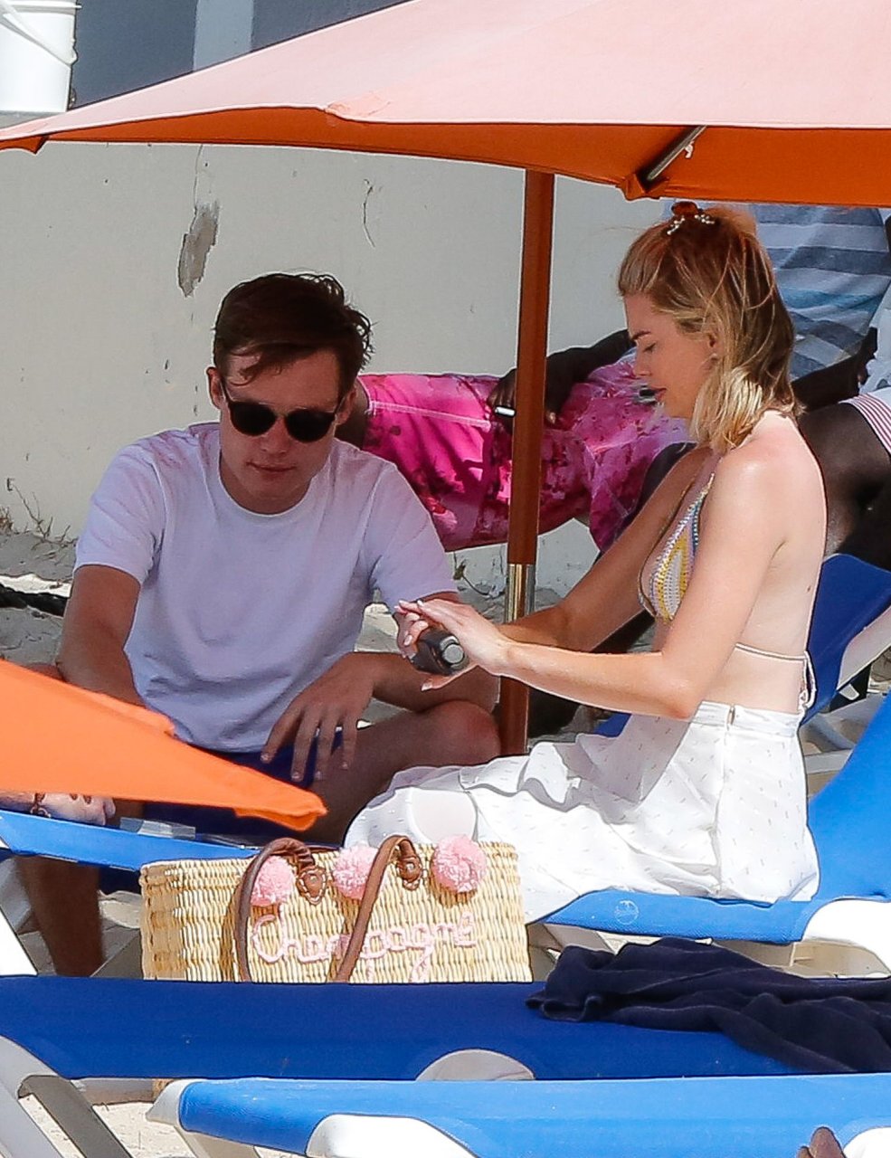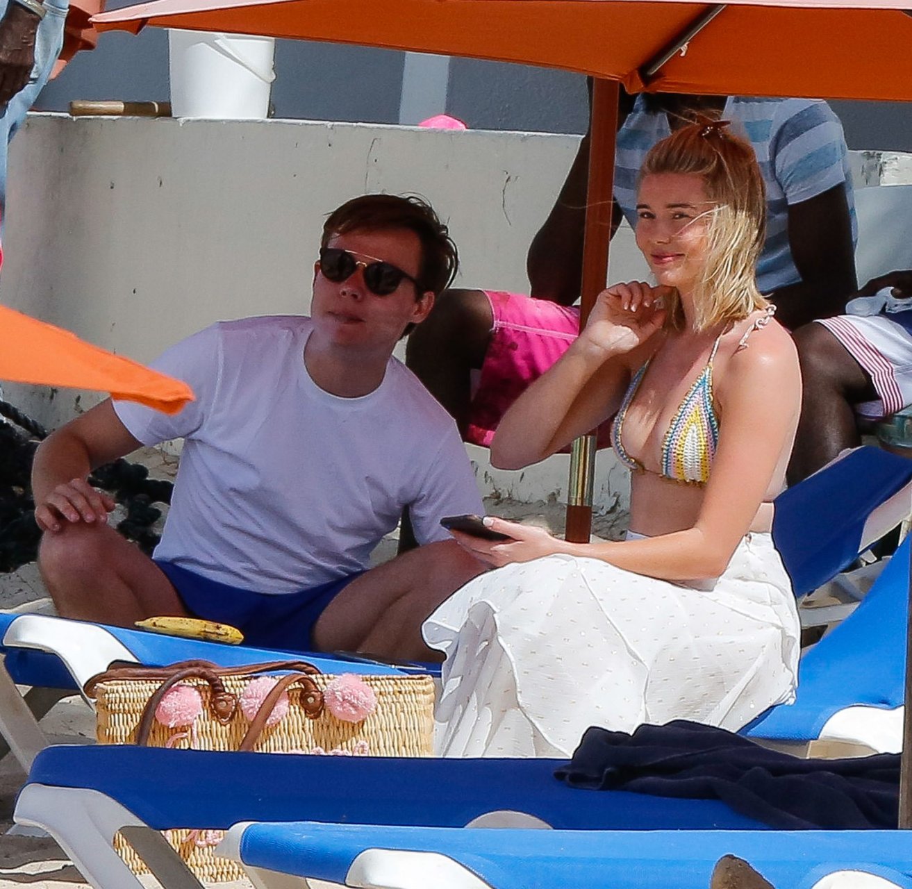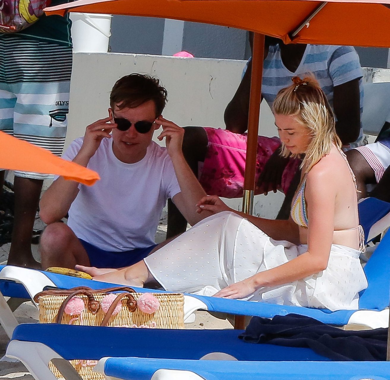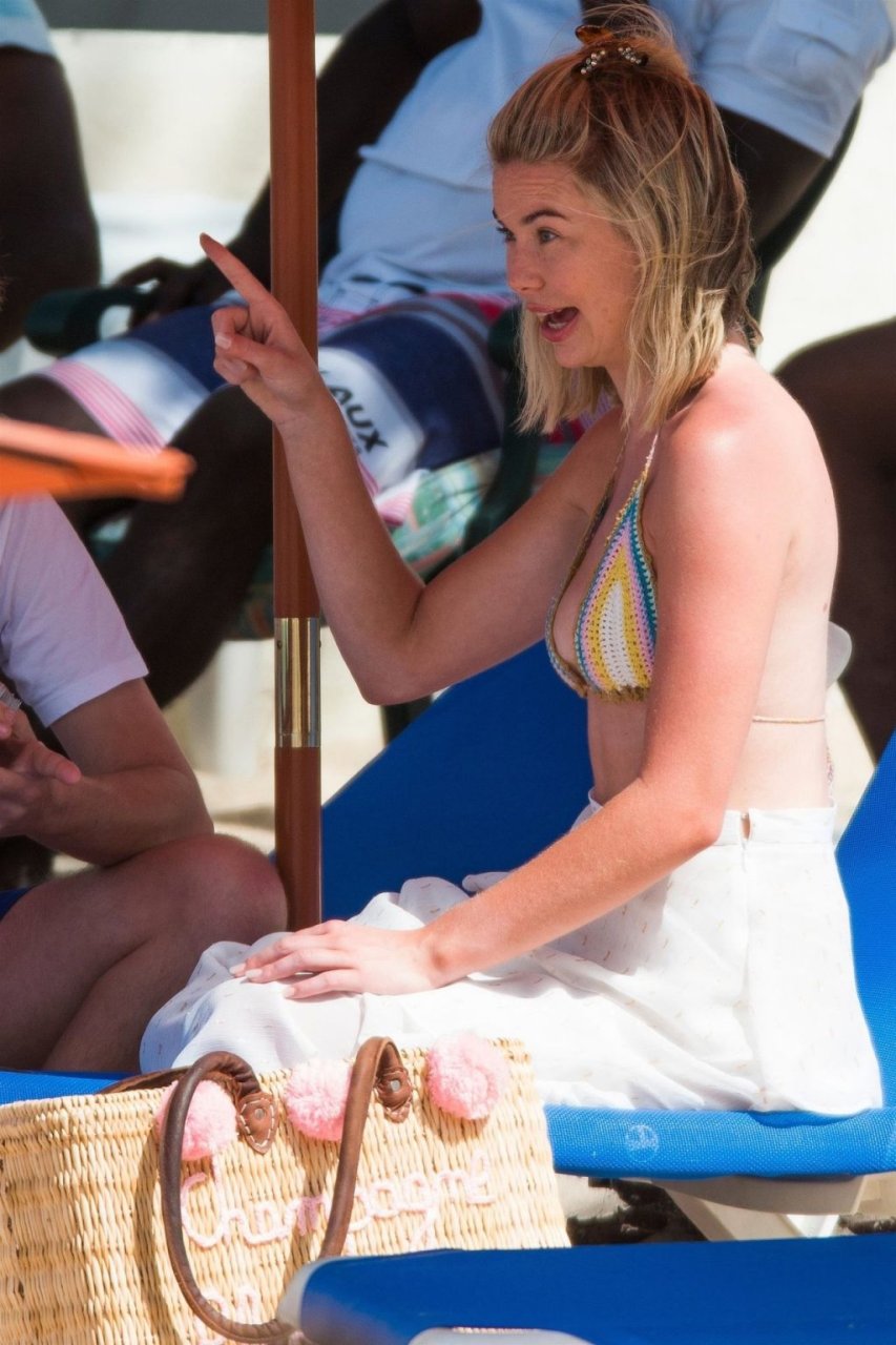 A sexy loira Georgia “Toff” Toffolo, Rainha da Selva, é vista na praia usando um top de biquíni e uma saia esvoaçante durante as férias em Barbados, 01/11/2019.