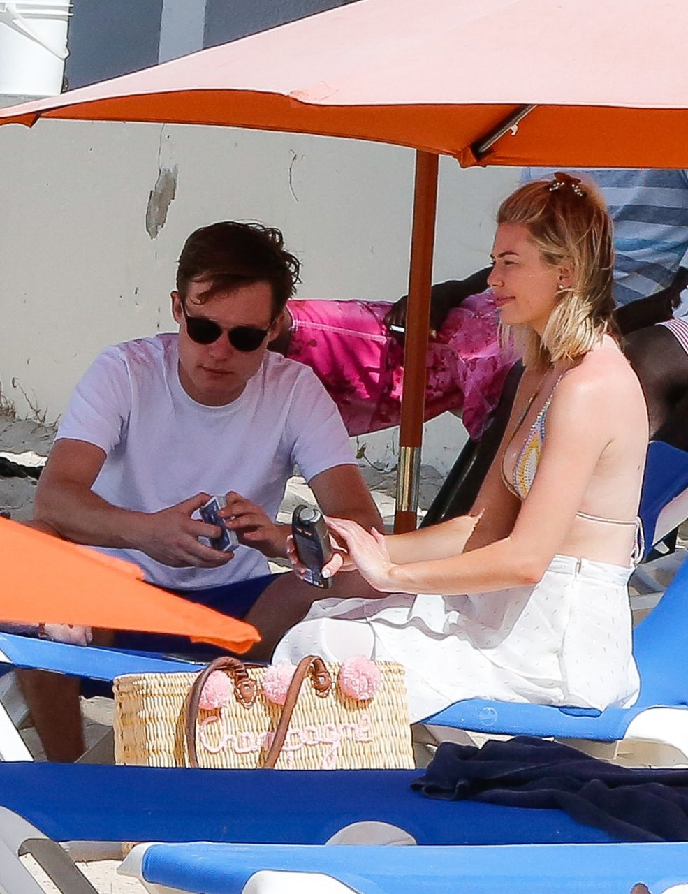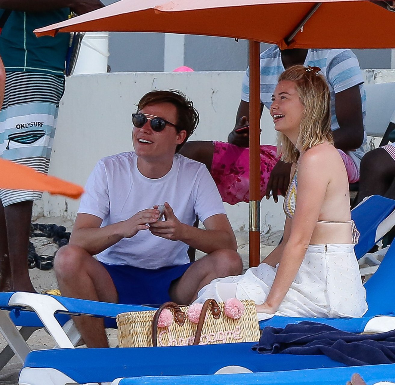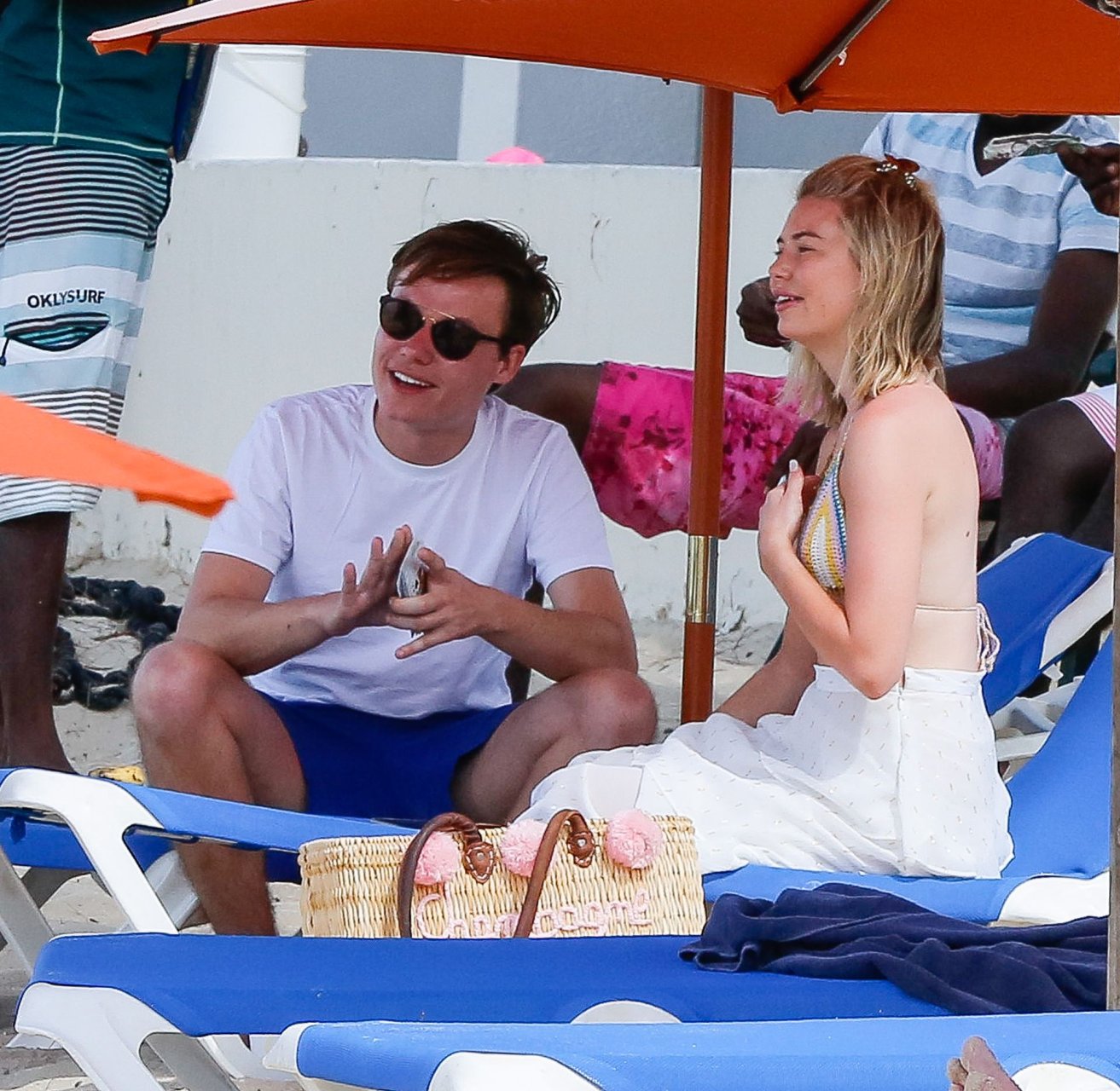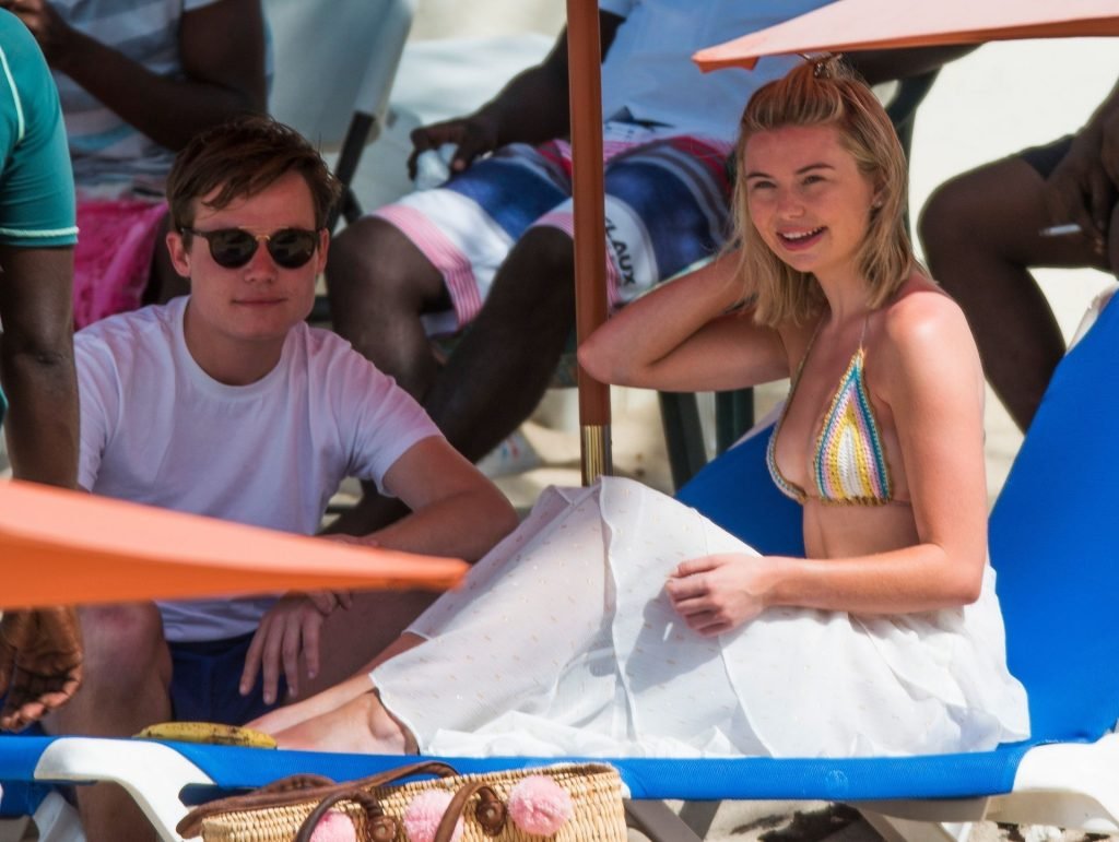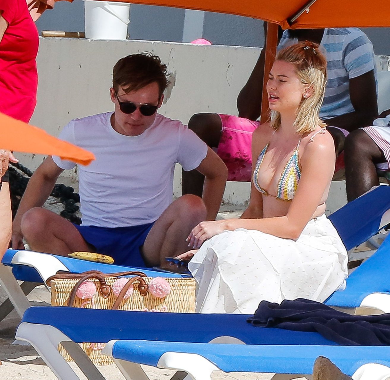 A sexy loira Georgia “Toff” Toffolo, Rainha da Selva, é vista na praia usando um top de biquíni e uma saia esvoaçante durante as férias em Barbados, 01/11/2019.