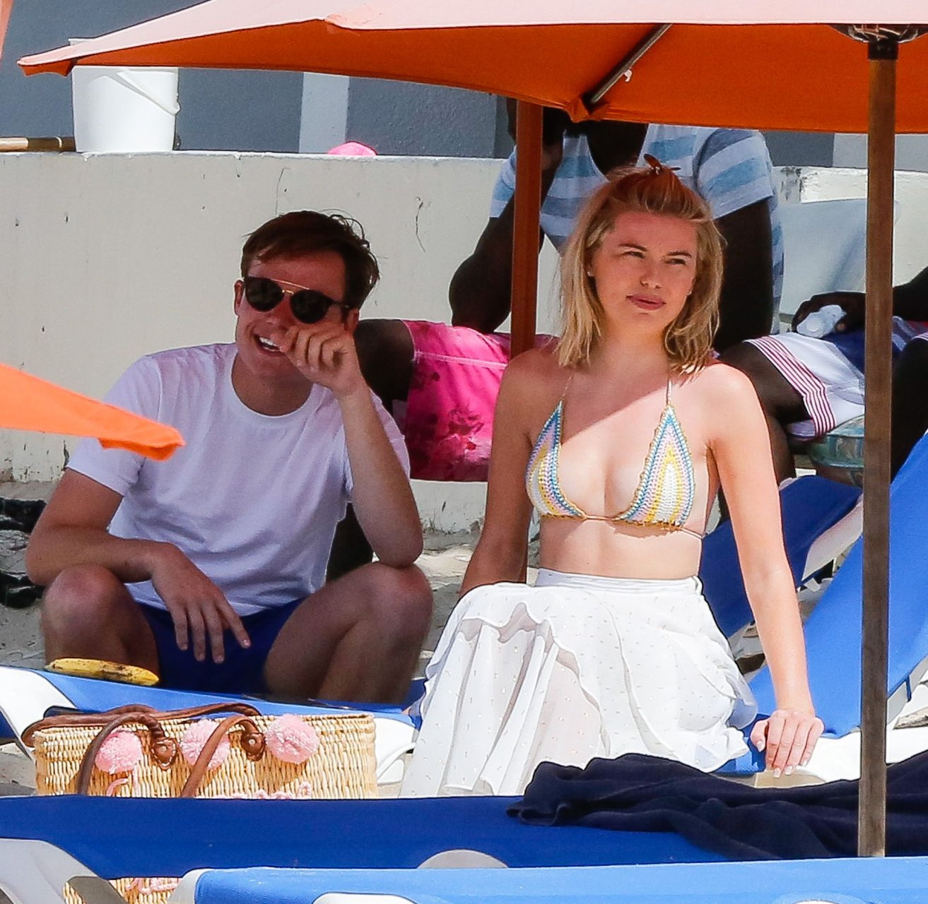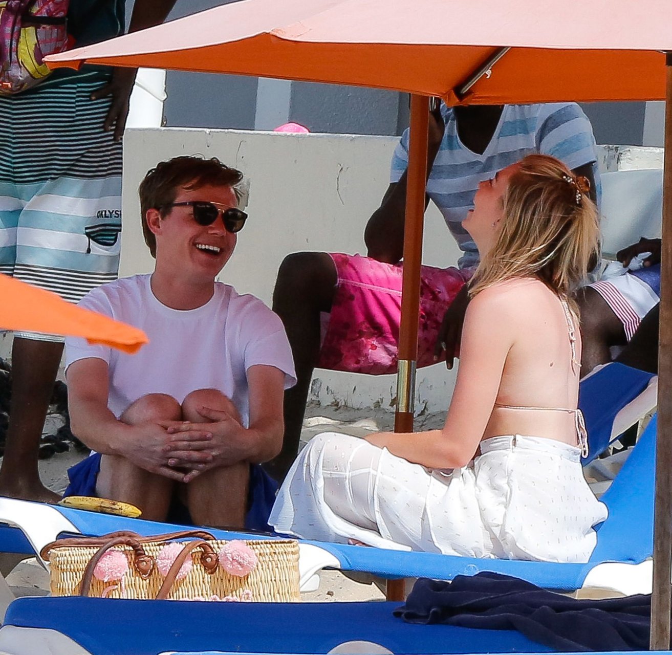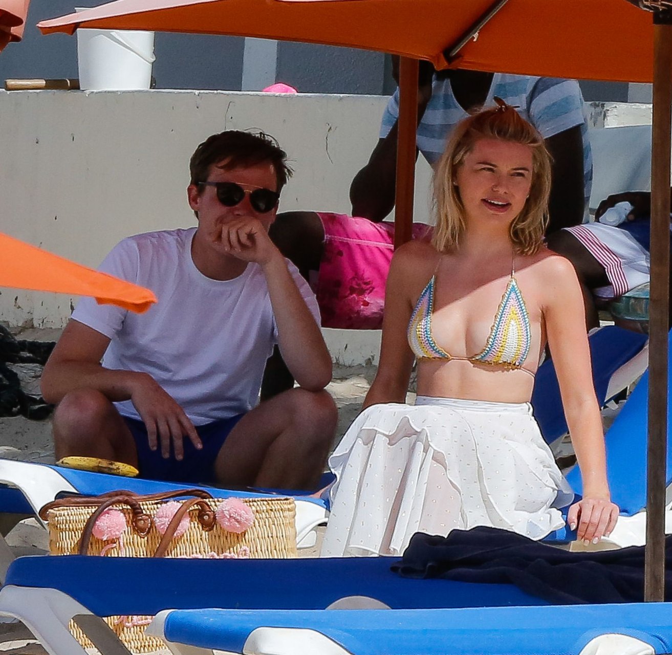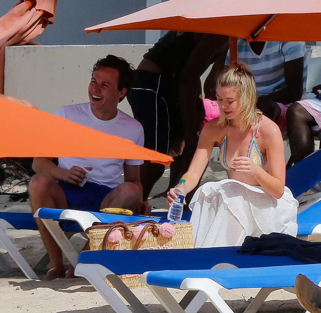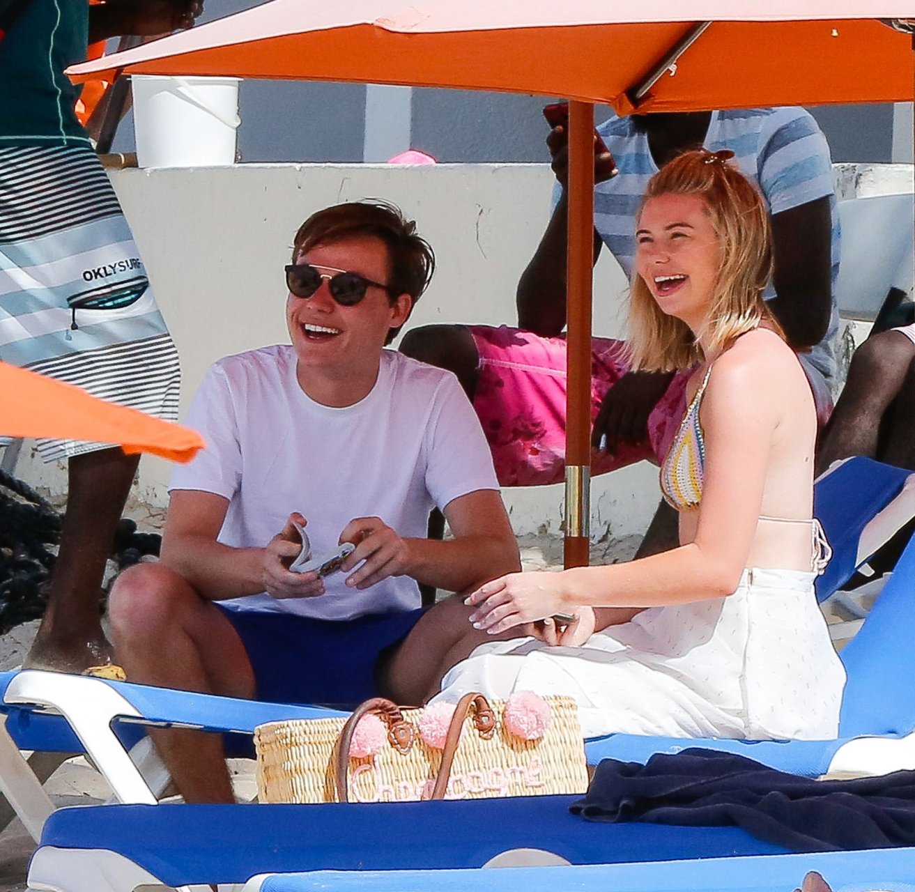 A sexy loira Georgia “Toff” Toffolo, Rainha da Selva, é vista na praia usando um top de biquíni e uma saia esvoaçante durante as férias em Barbados, 01/11/2019.