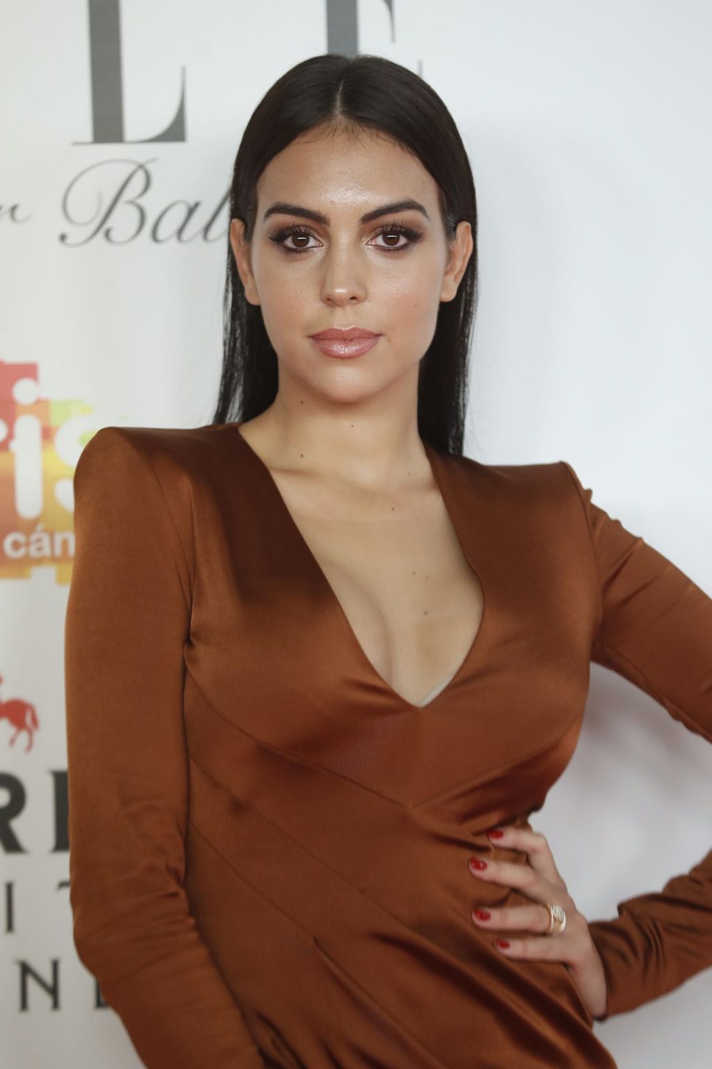 Georgina Rodriguez foi vista enquanto participava do ELLE Charity Gala 2019 para arrecadar fundos para o câncer no Hotel Intercontinental em Madrid, Espanha, em 30/05/2019. A modelo argentina de 25 anos exibiu suas pernas sexy, ótimo decote e calcinha preta enquanto posava no tapete vermelho com um vestido marrom.