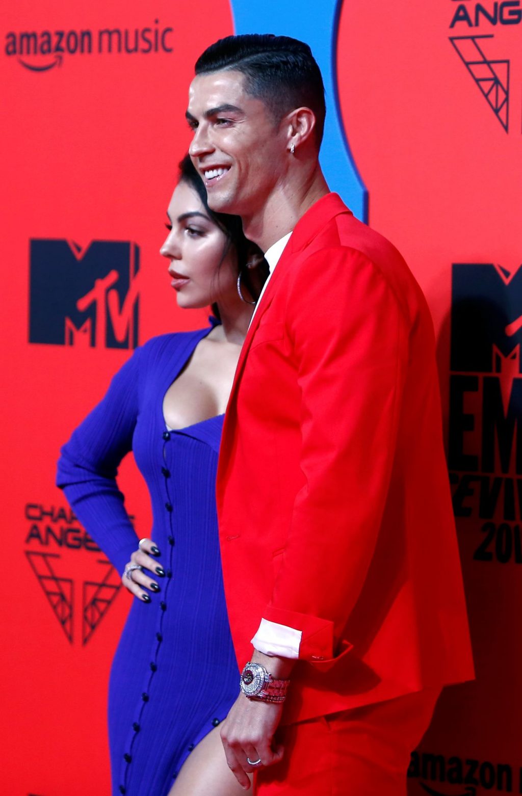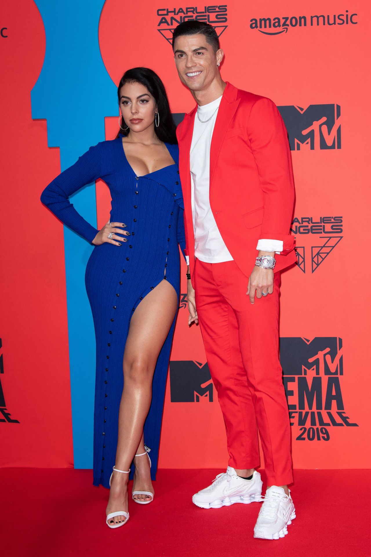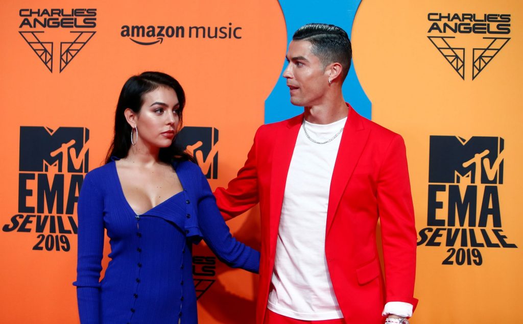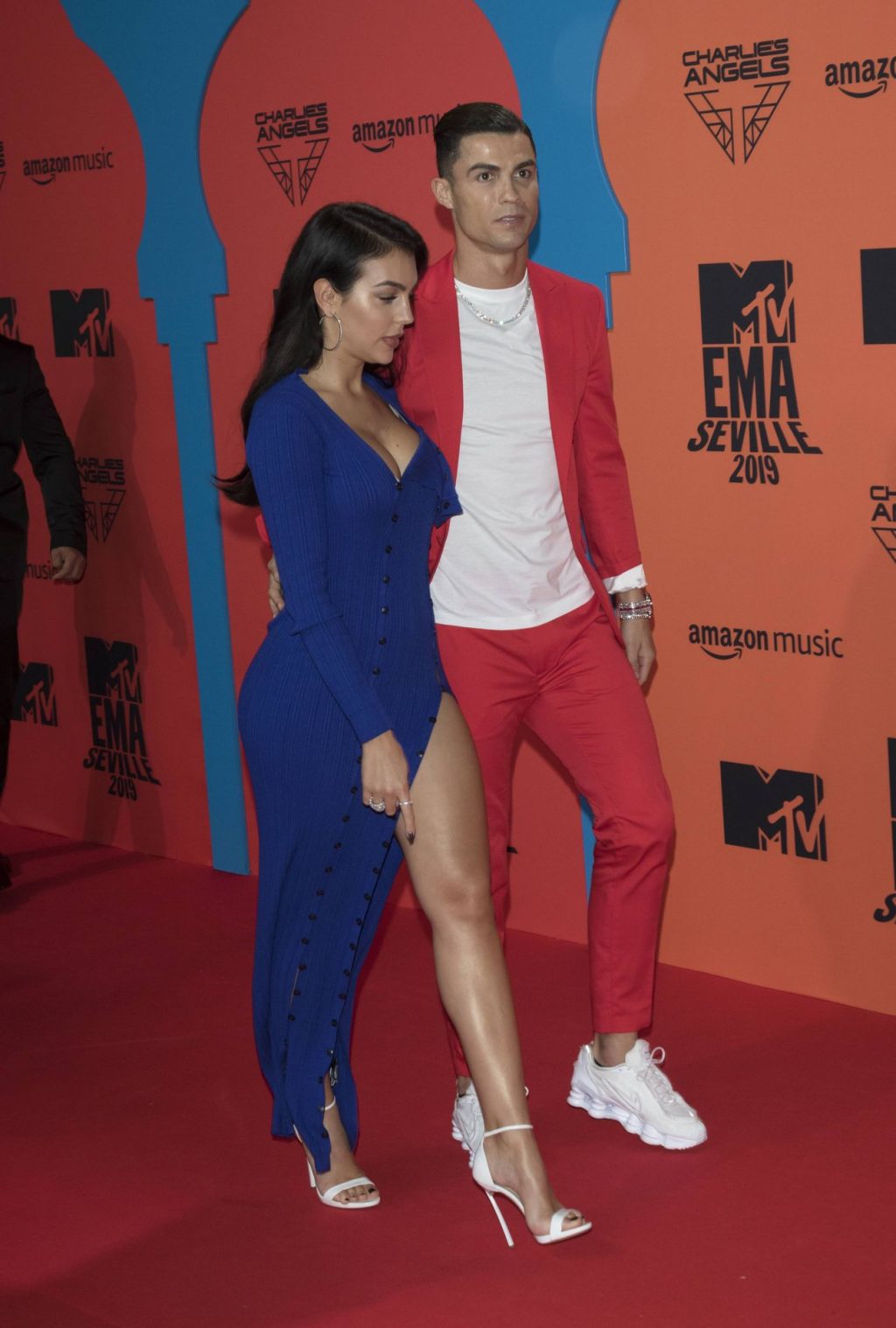 ‘O avançado português da Juventus, Cristiano Ronaldo, e sua esposa Georgina Rodriguez posam no tapete vermelho ao chegarem ao MTV Europe Music Awards no Centro de Conferências e Exposições FIBES de Sevilha em 3 de novembro de 2019.