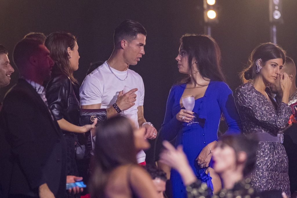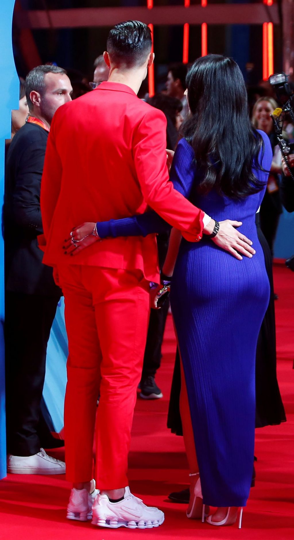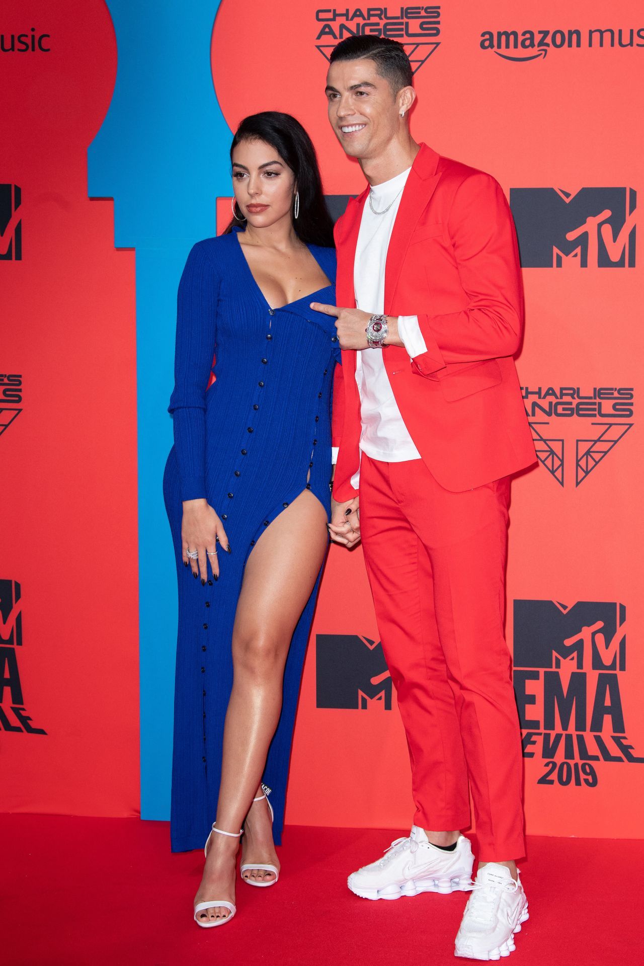 ‘O avançado português da Juventus, Cristiano Ronaldo, e sua esposa Georgina Rodriguez posam no tapete vermelho ao chegarem ao MTV Europe Music Awards no Centro de Conferências e Exposições FIBES de Sevilha em 3 de novembro de 2019.