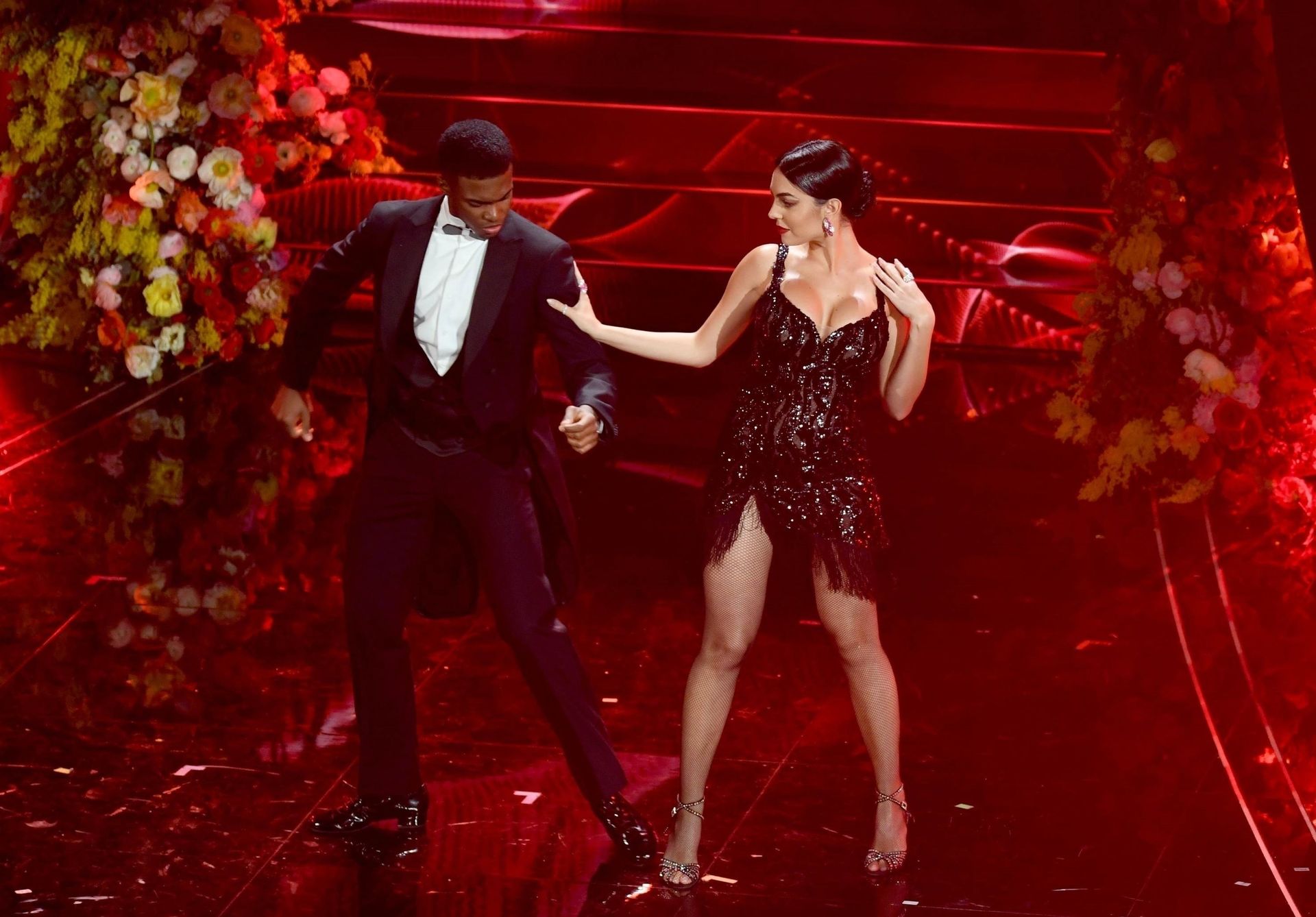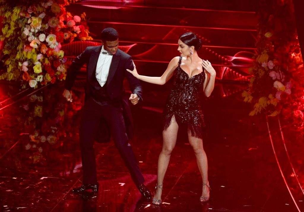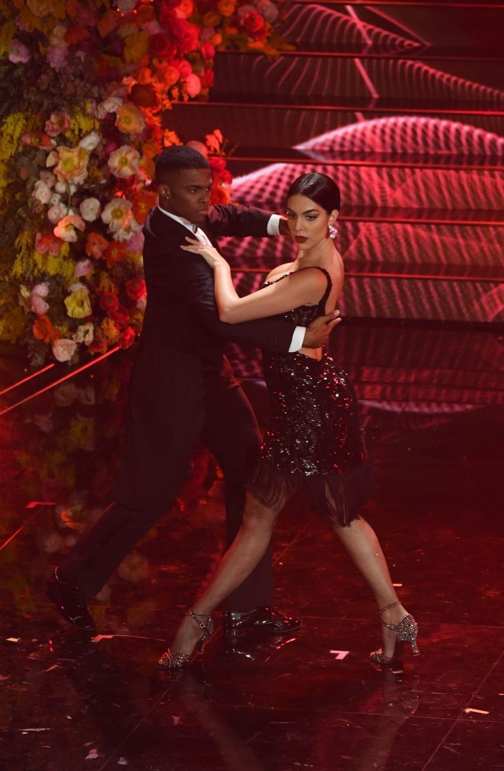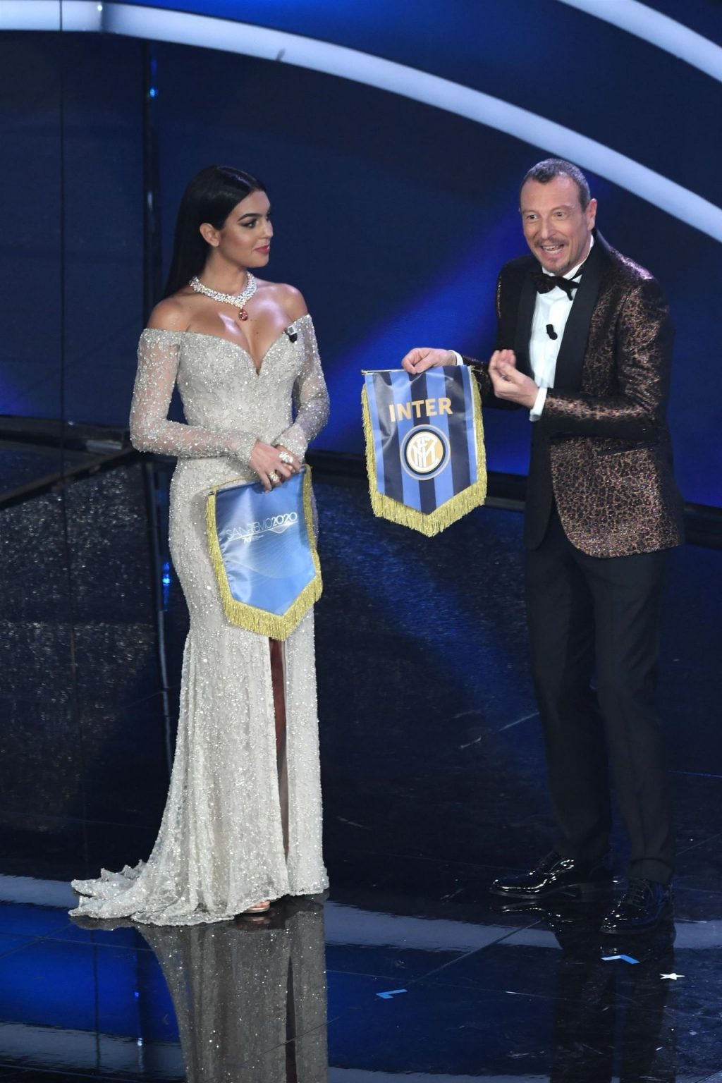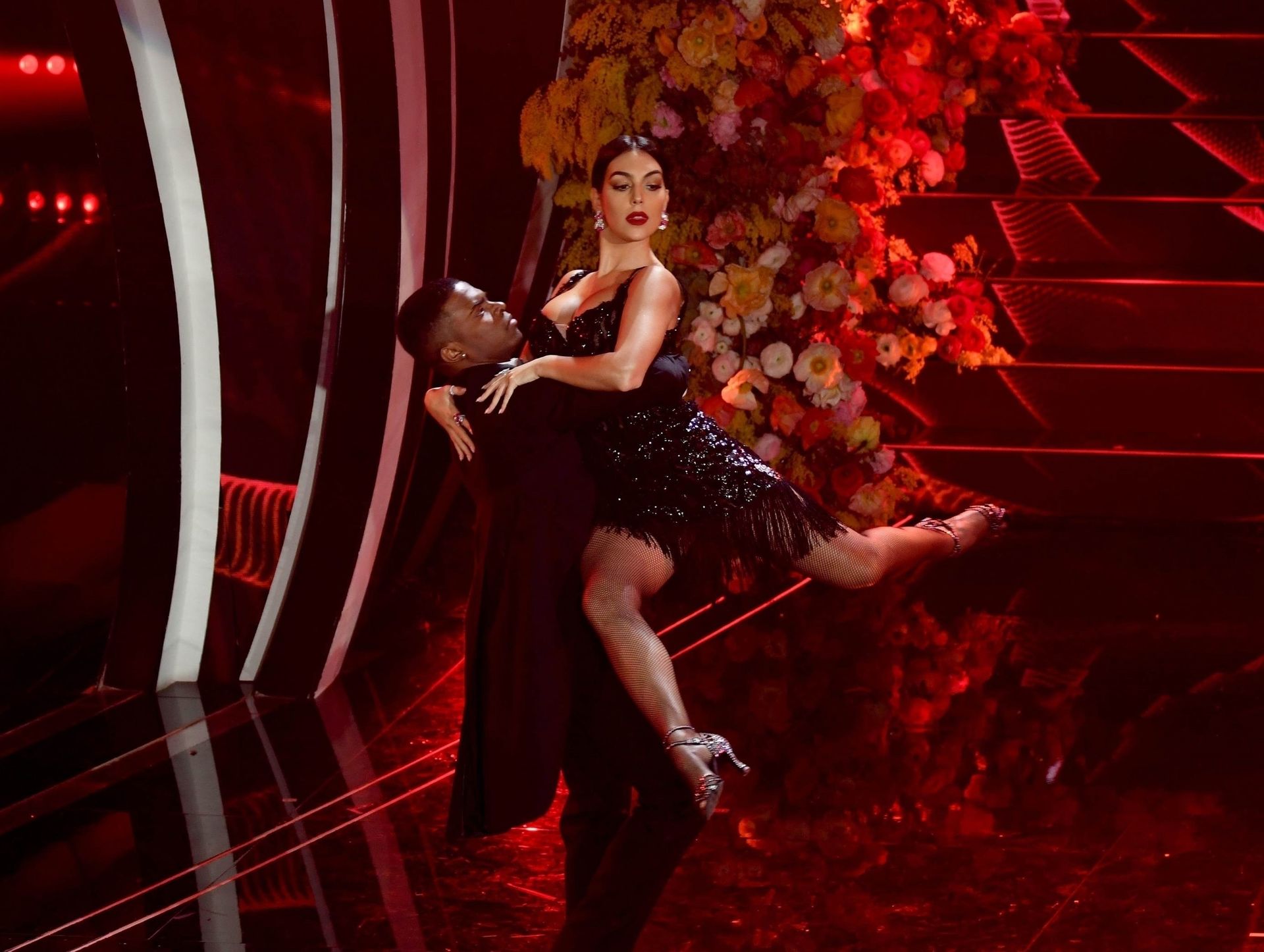 Georgina Rodríguez e Cristiano Ronaldo foram fotografados no 70º Festival de Música de Sanremo, 06/02/2020. Georgina aquece o festival dançando um tango argentino no palco do Ariston durante a terceira noite do evento.