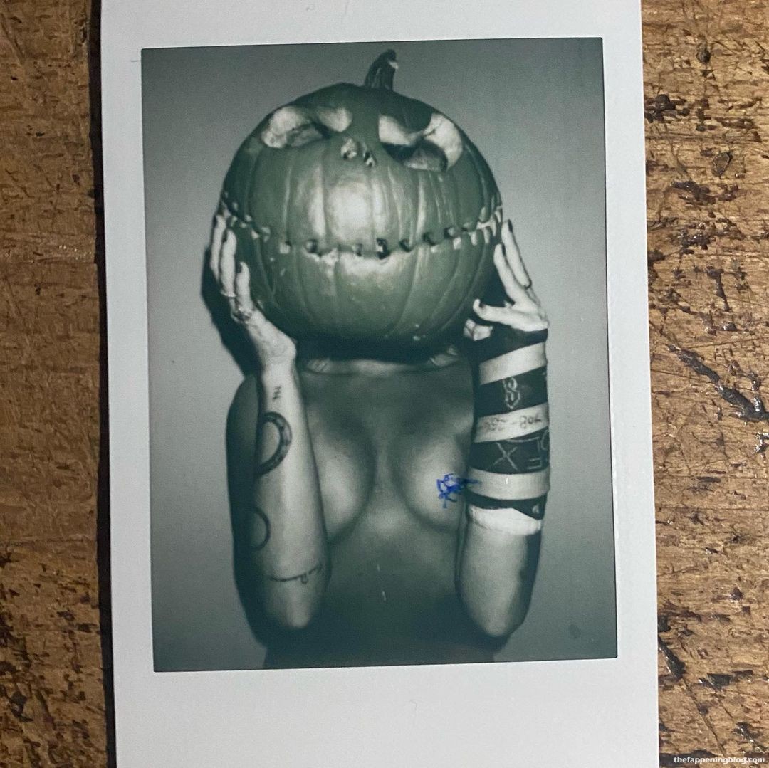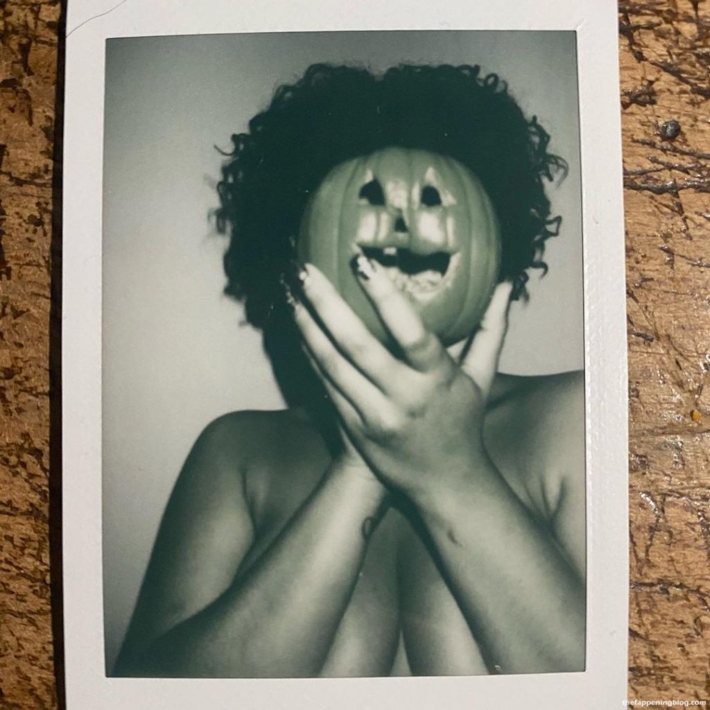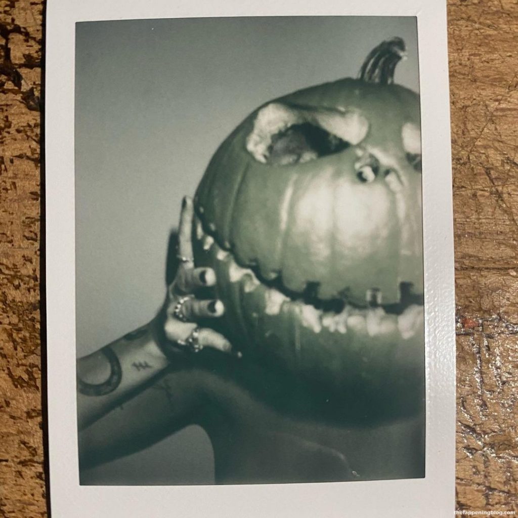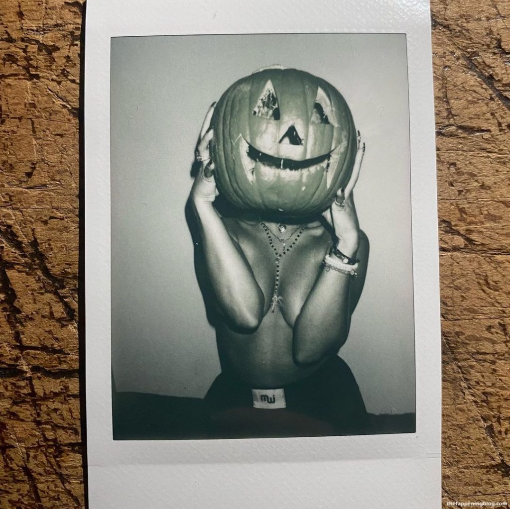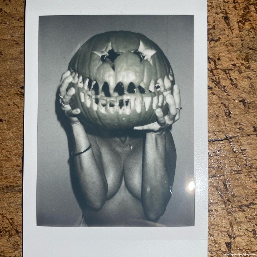 Confira algumas fotos nuas (cobertas e censuradas) de GG Magree e Vanessa Hudgens topless usando cabeças de abóbora em um ensaio de Halloween (outubro de 2021).