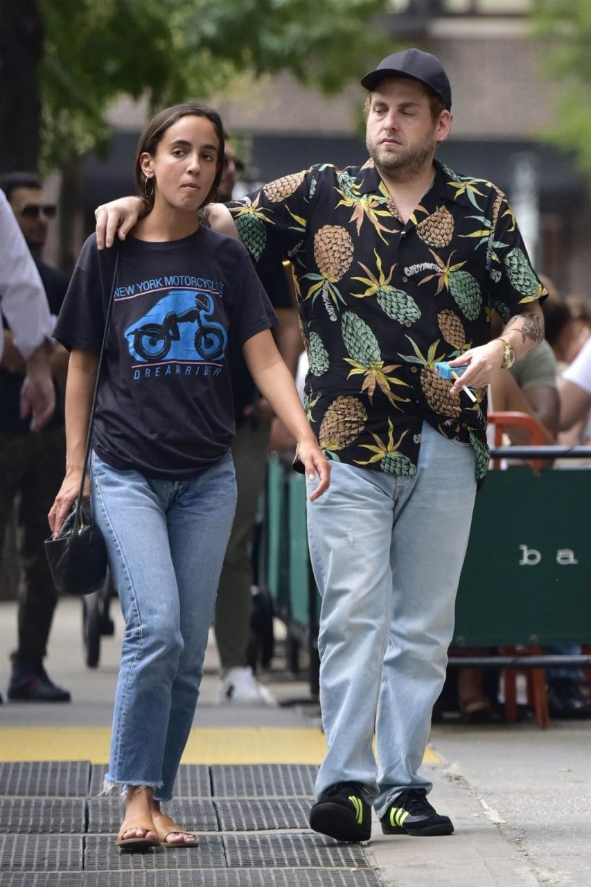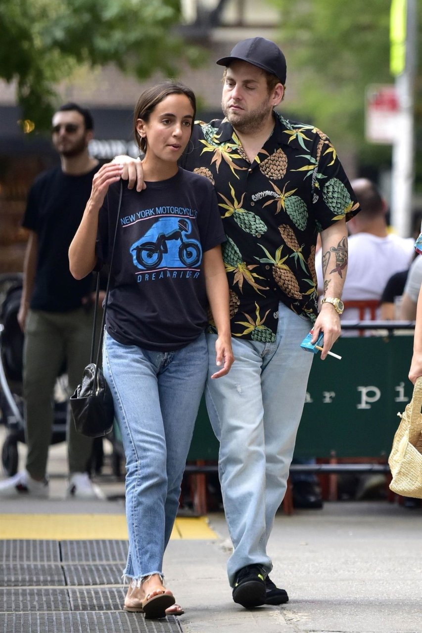 Jonah Hill está oficialmente comprometido após pedir sua namorada de pouco mais de um ano, Gianna Santos, em casamento. Gianna e Jonah foram fotografados durante um almoço cheio de demonstrações públicas de afeto em NYC, 30/07/2018.