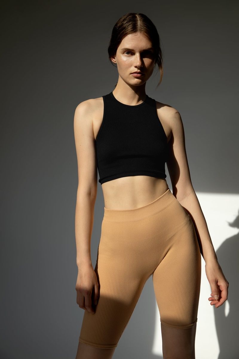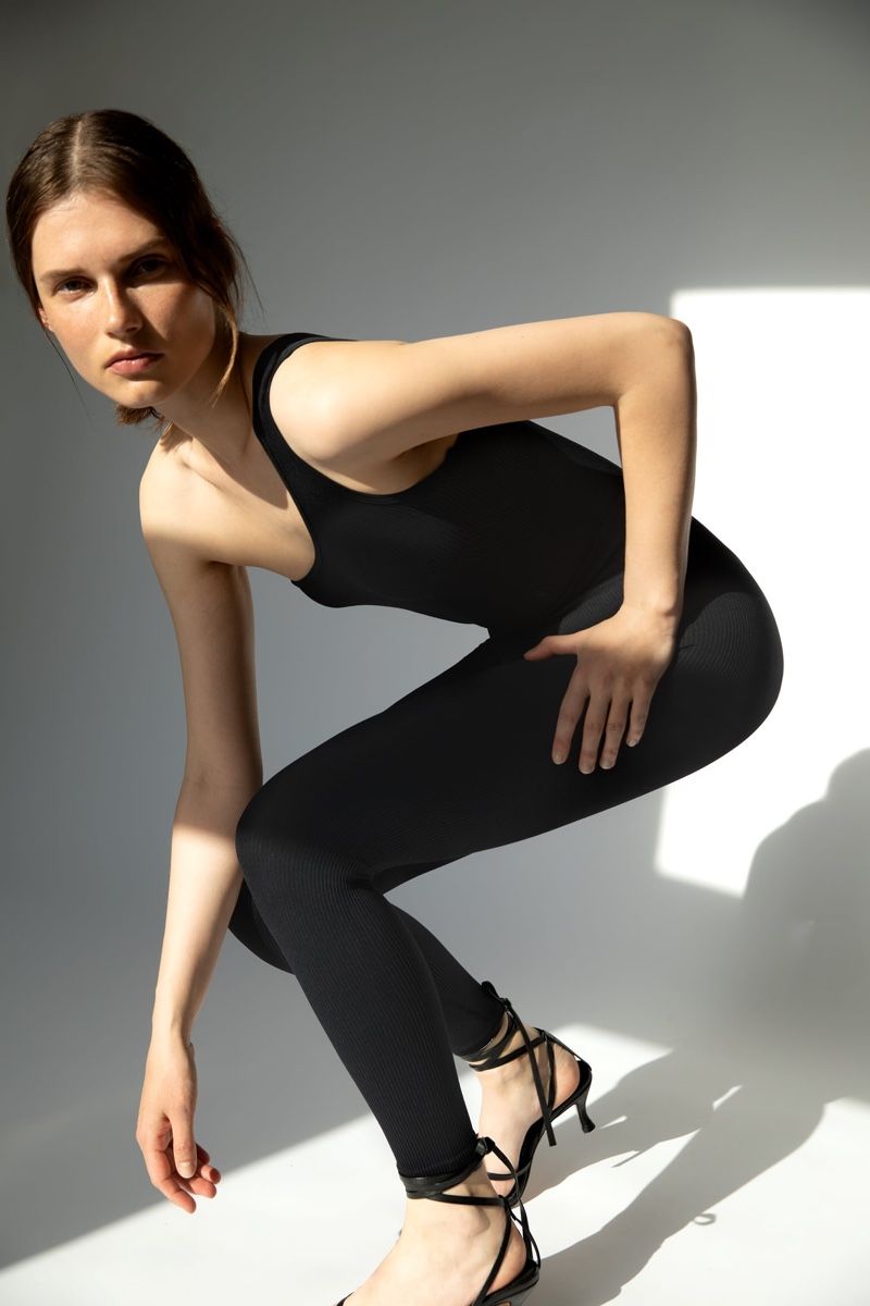 Exibindo seu físico esguio e elegante para a Coleção Zara Limitless Contour Body, a jovem de 32 anos aparece vestida com uma série de malhas justas e que abraçam o corpo.