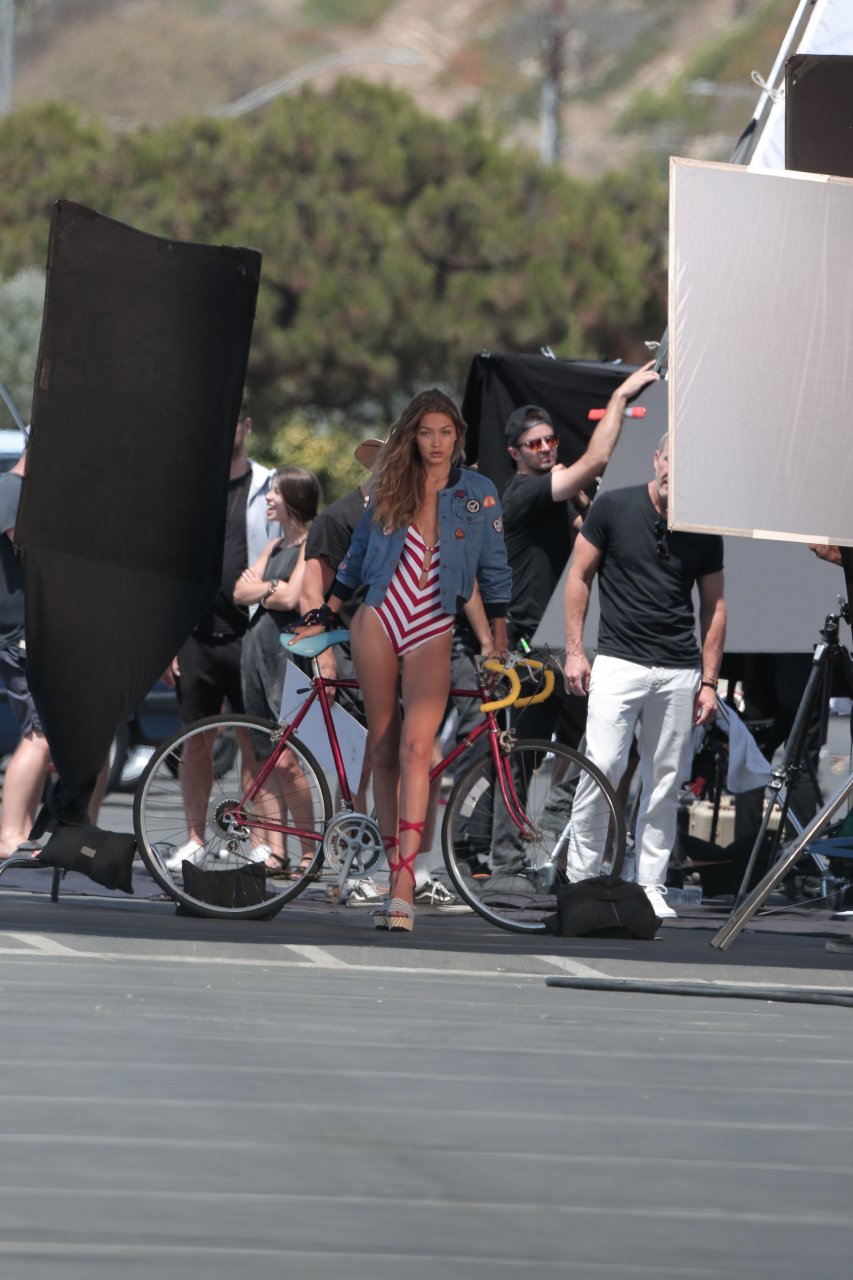 Gigi Hadid no set de uma sessão de fotos em Los Angeles, 28/07/16. Bunda hipnotizante! Gigi Hadid é uma modelo de moda americana e personalidade de TV. Idade: 21 (23 de abril de 1995).