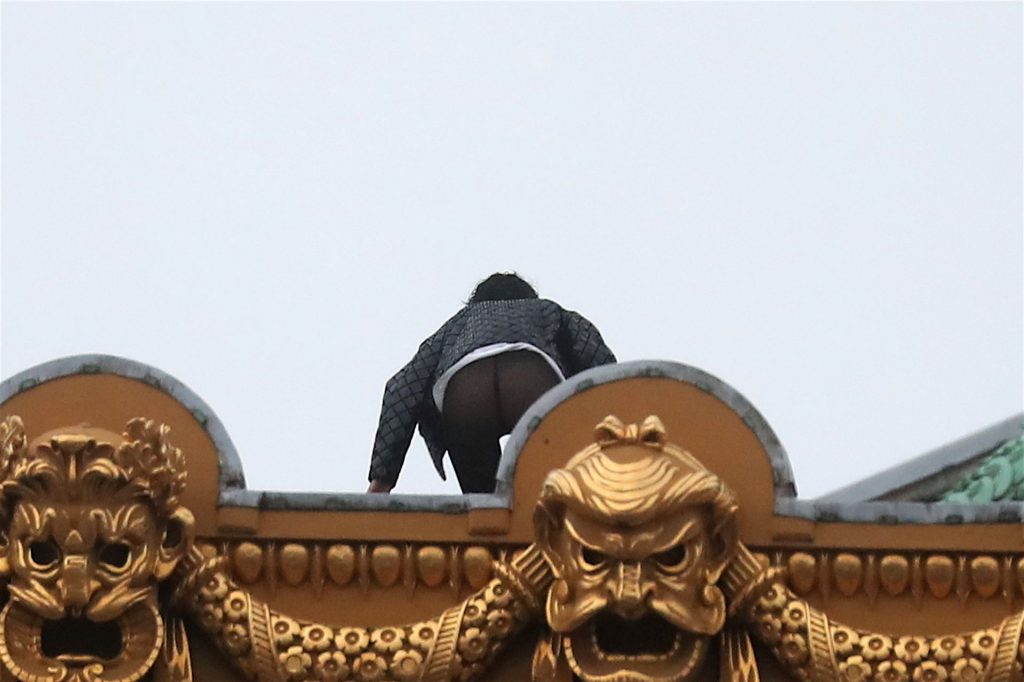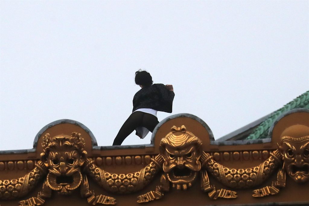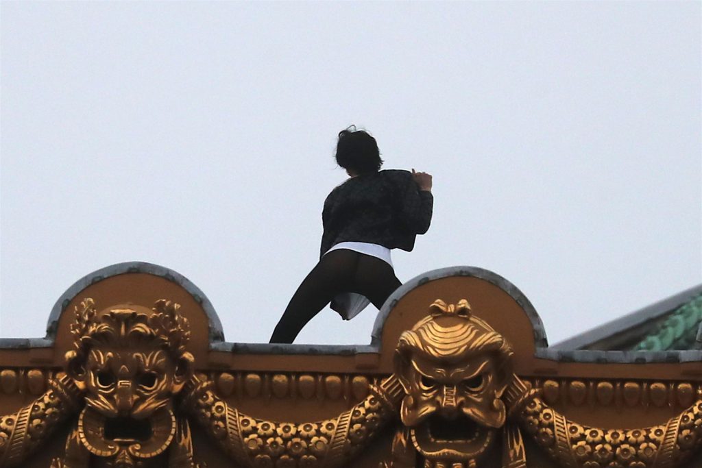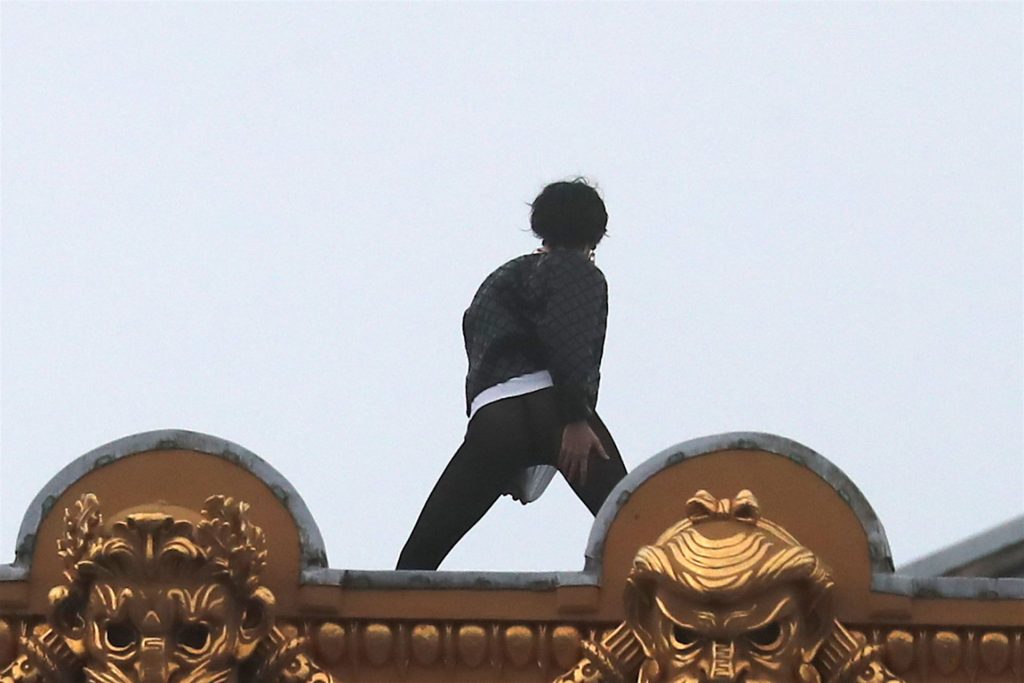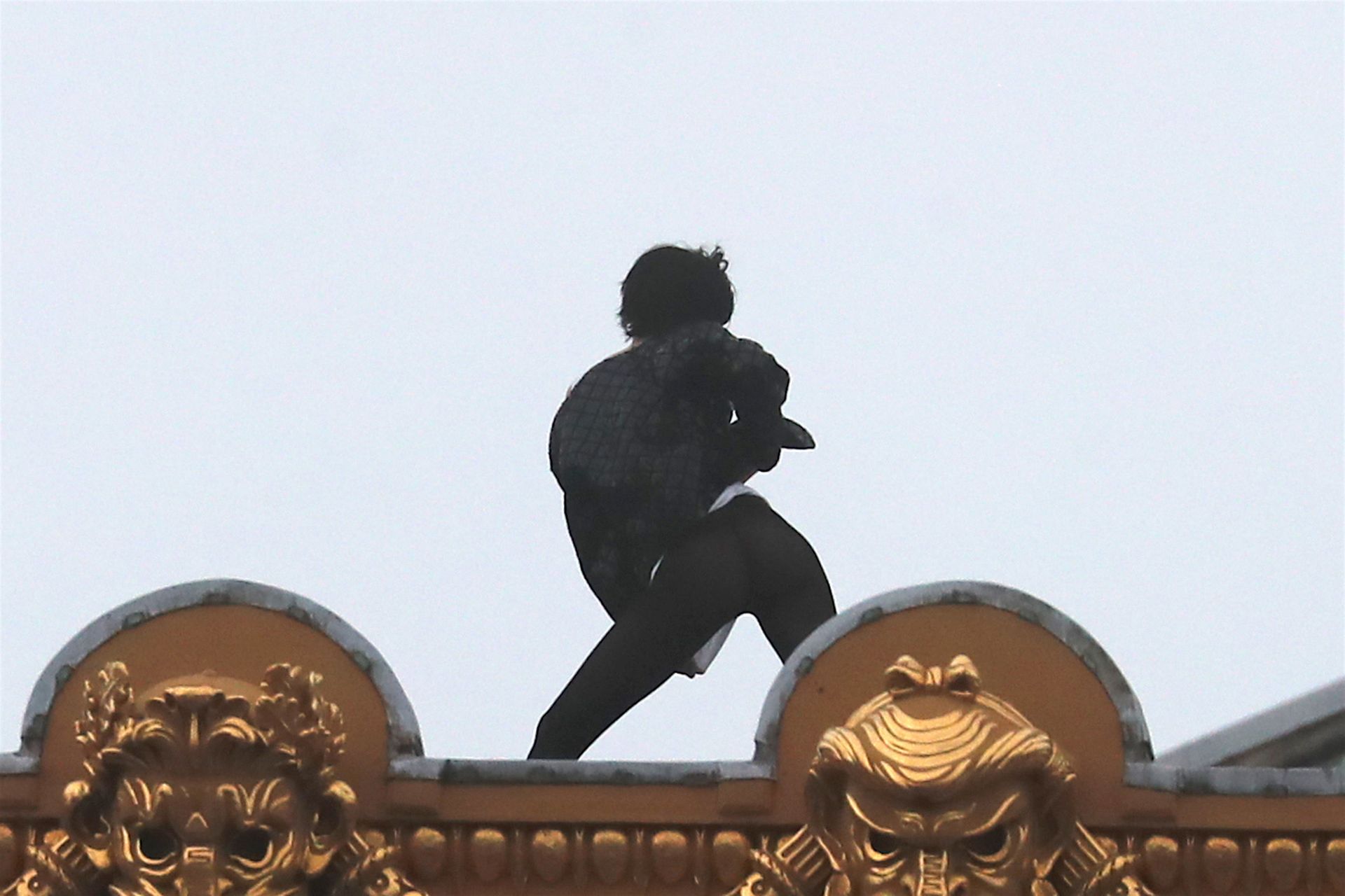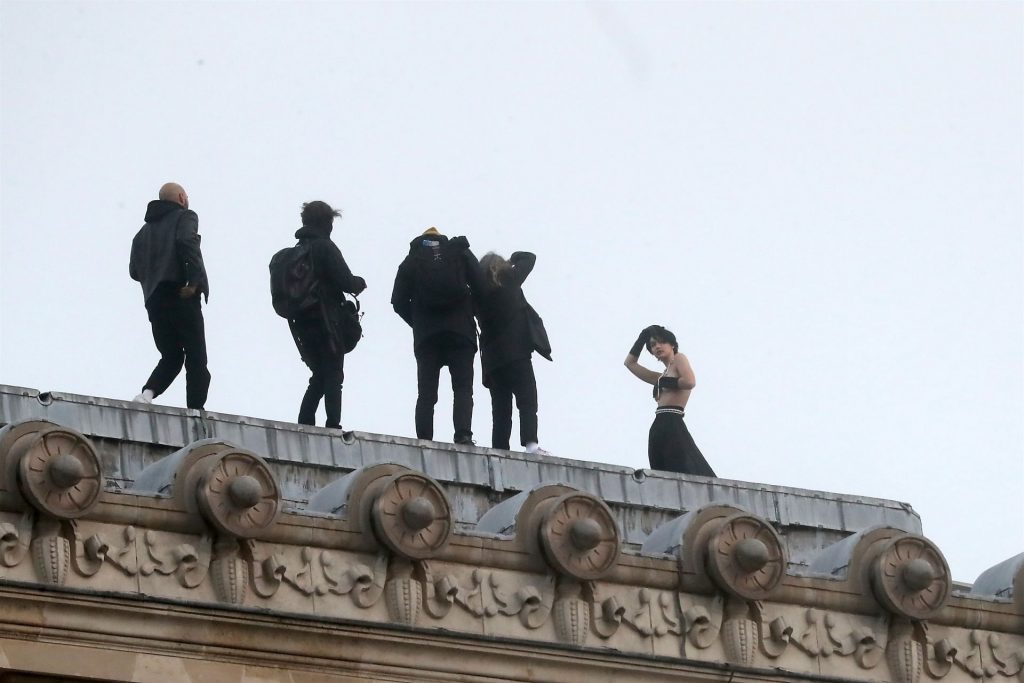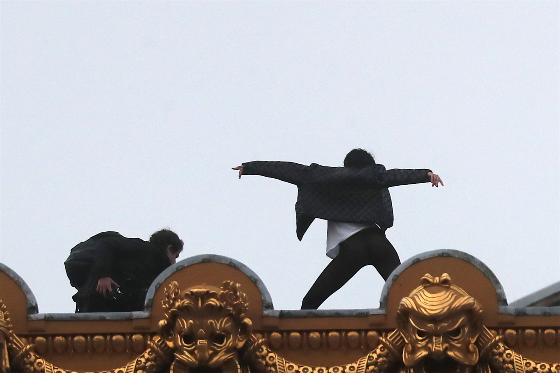Model Gigi Hadid foi fotografada topless (coberta) com cabelo escuro durante uma sessão de fotos para a Chanel no telhado da Ópera Garnier em Paris no dia 3 de dezembro de 2019.