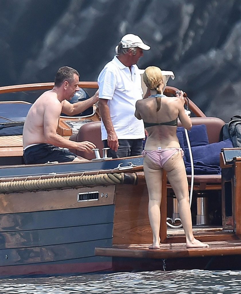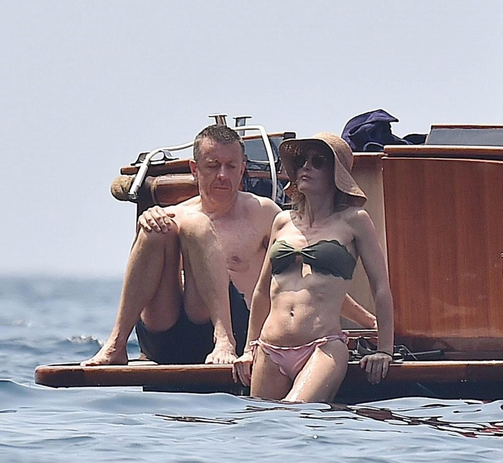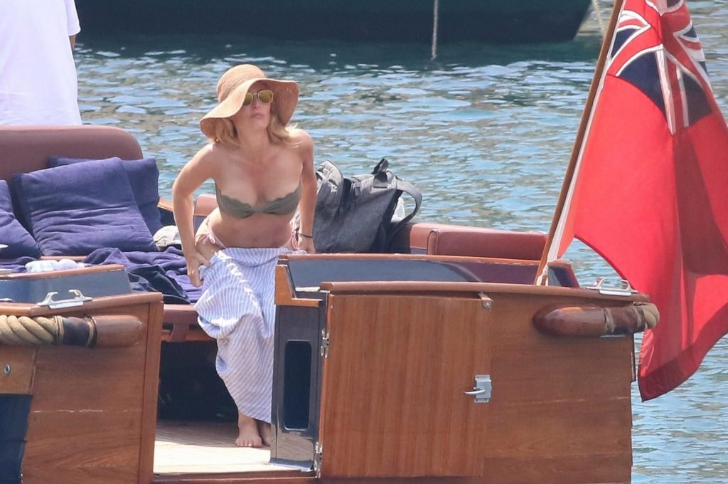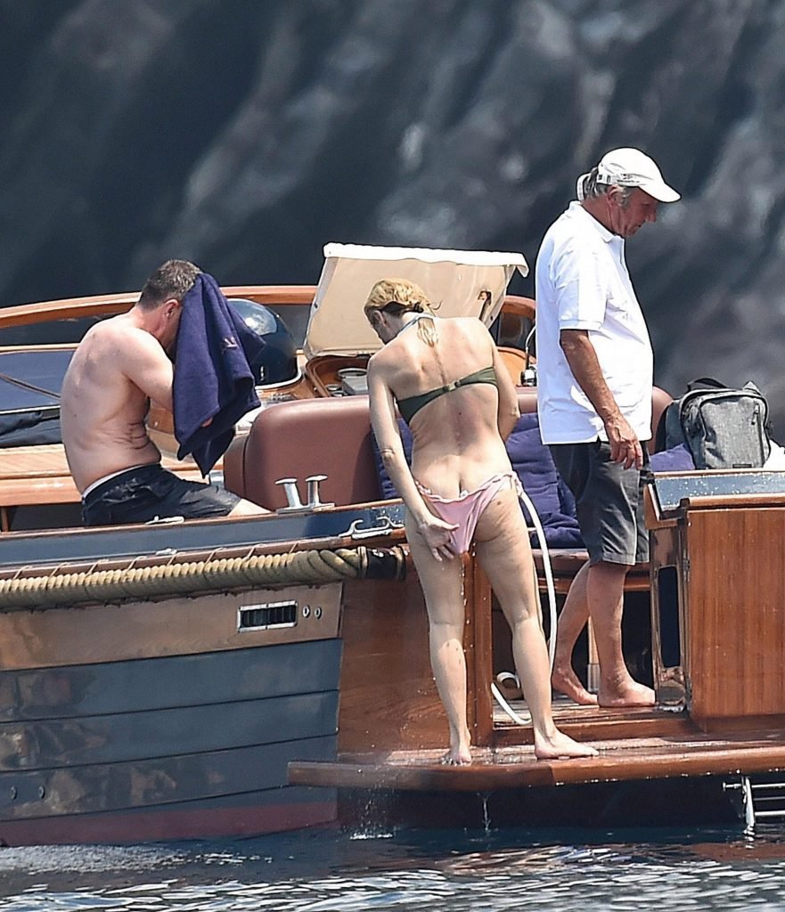 Gillian Anderson mostra seu seio enquanto tira o biquíni durante férias em Portofino, Itália, 17/06/2017. Gillian Anderson é uma atriz americano-britânica (The Turning, 1992). Idade – 48 anos.