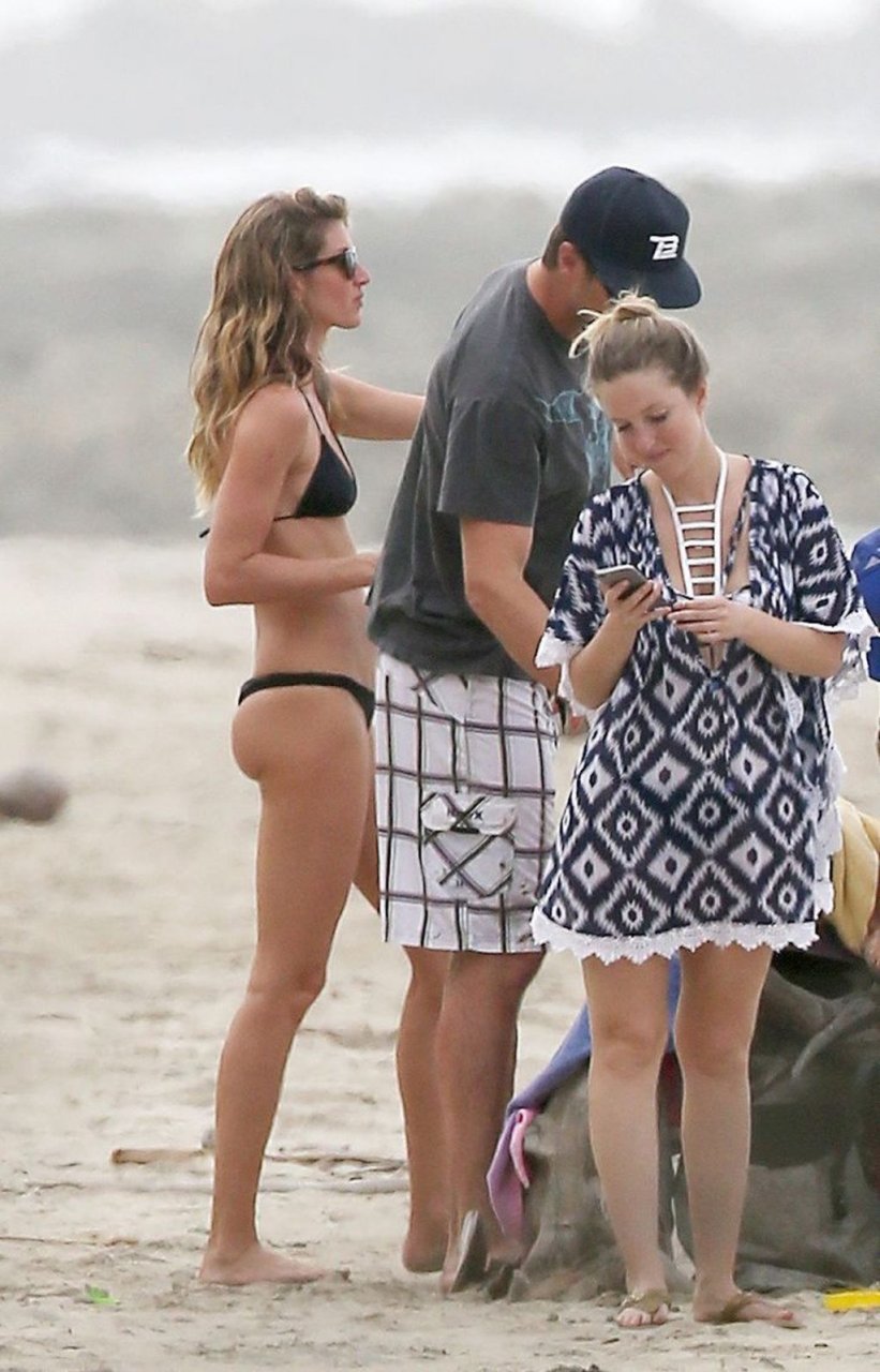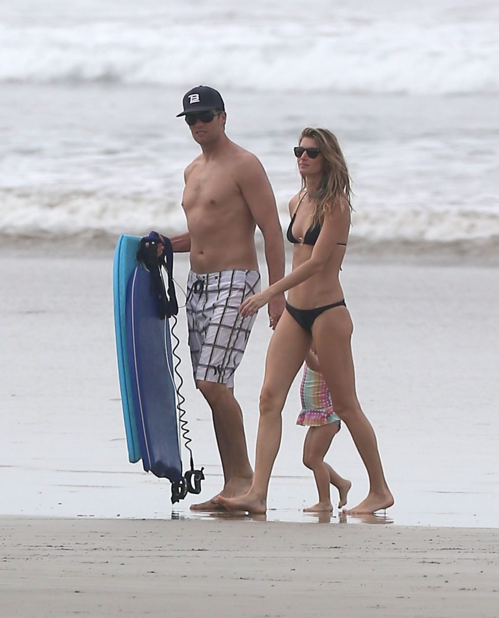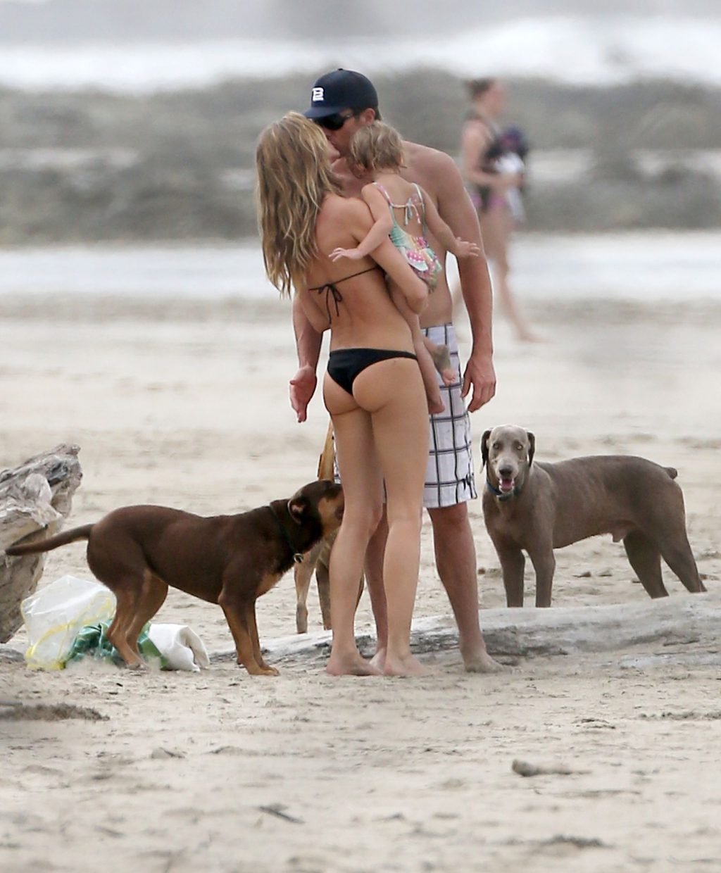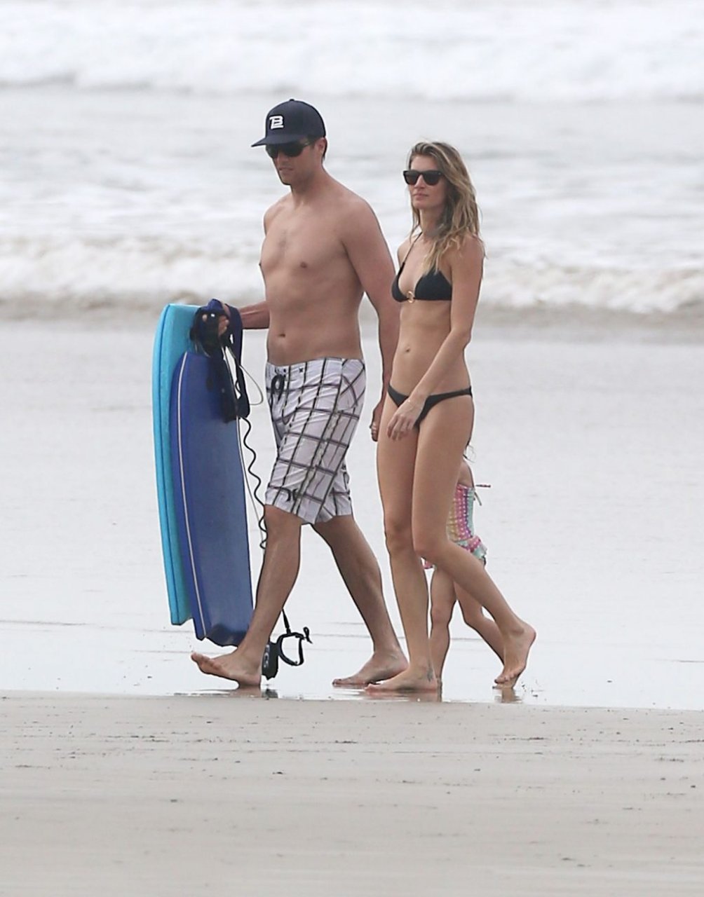 Gisele Bundchen e Tom Brady saem para a praia com a família na Costa Rica, 18/03/2015. Gisele e a família pareciam estar se divertindo muito.