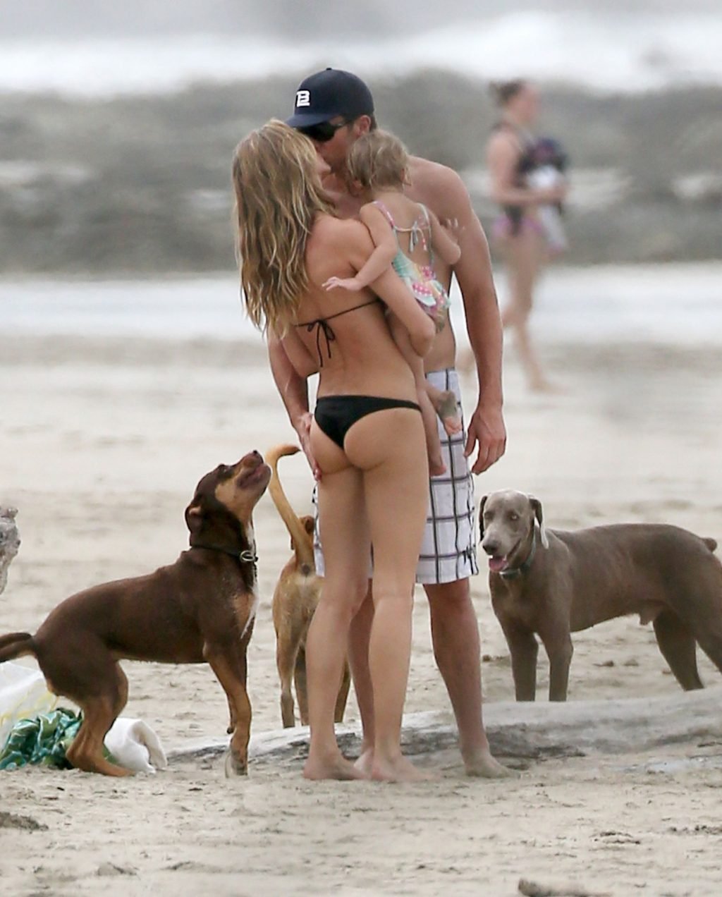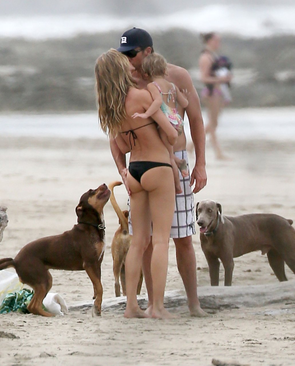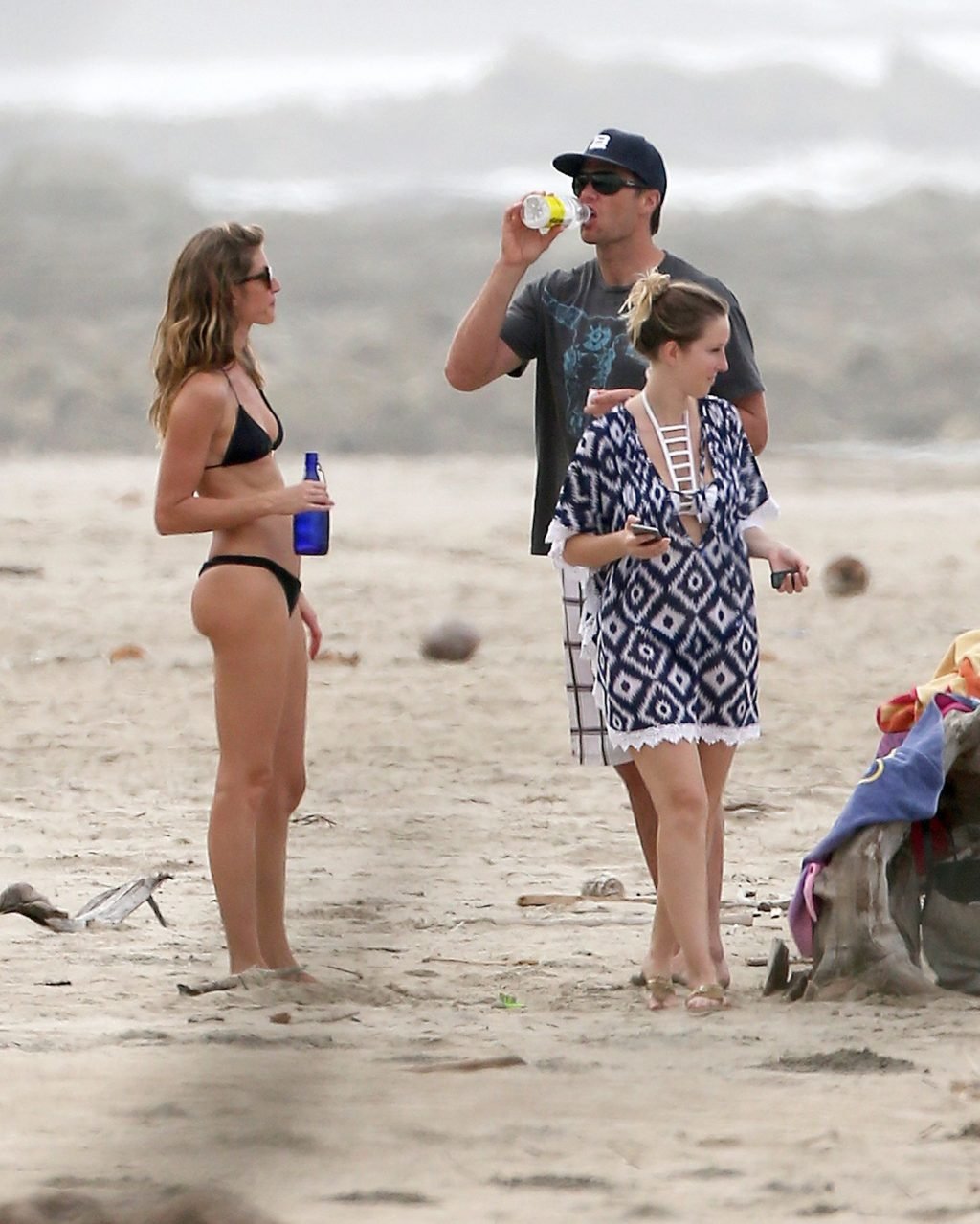 Gisele Bundchen e Tom Brady saem para a praia com a família na Costa Rica, 18/03/2015. Gisele e a família pareciam estar se divertindo muito.