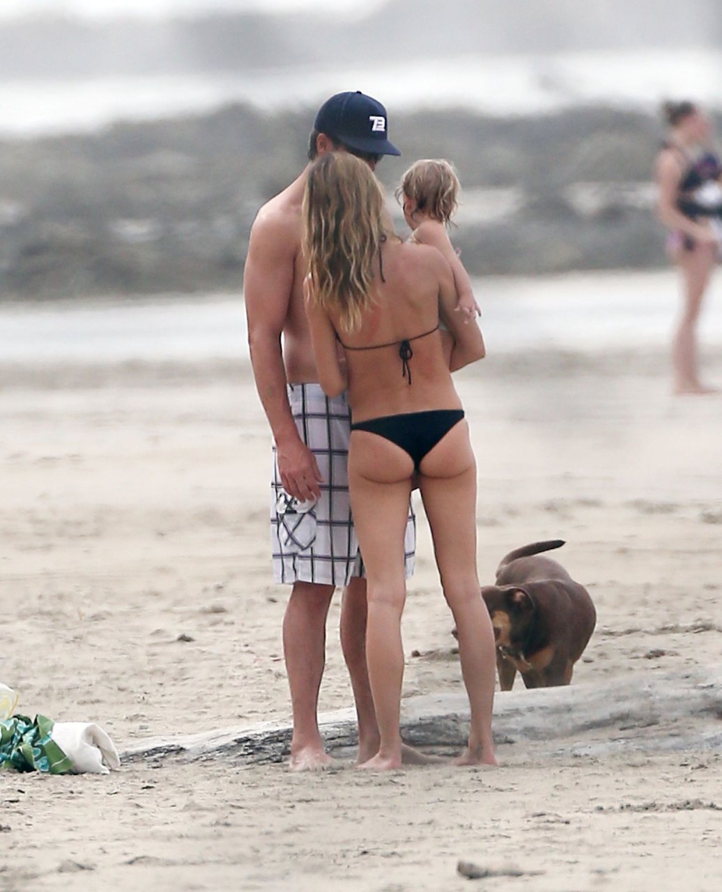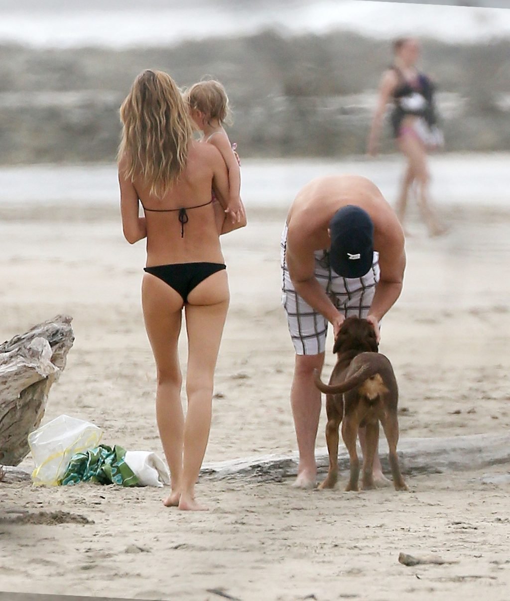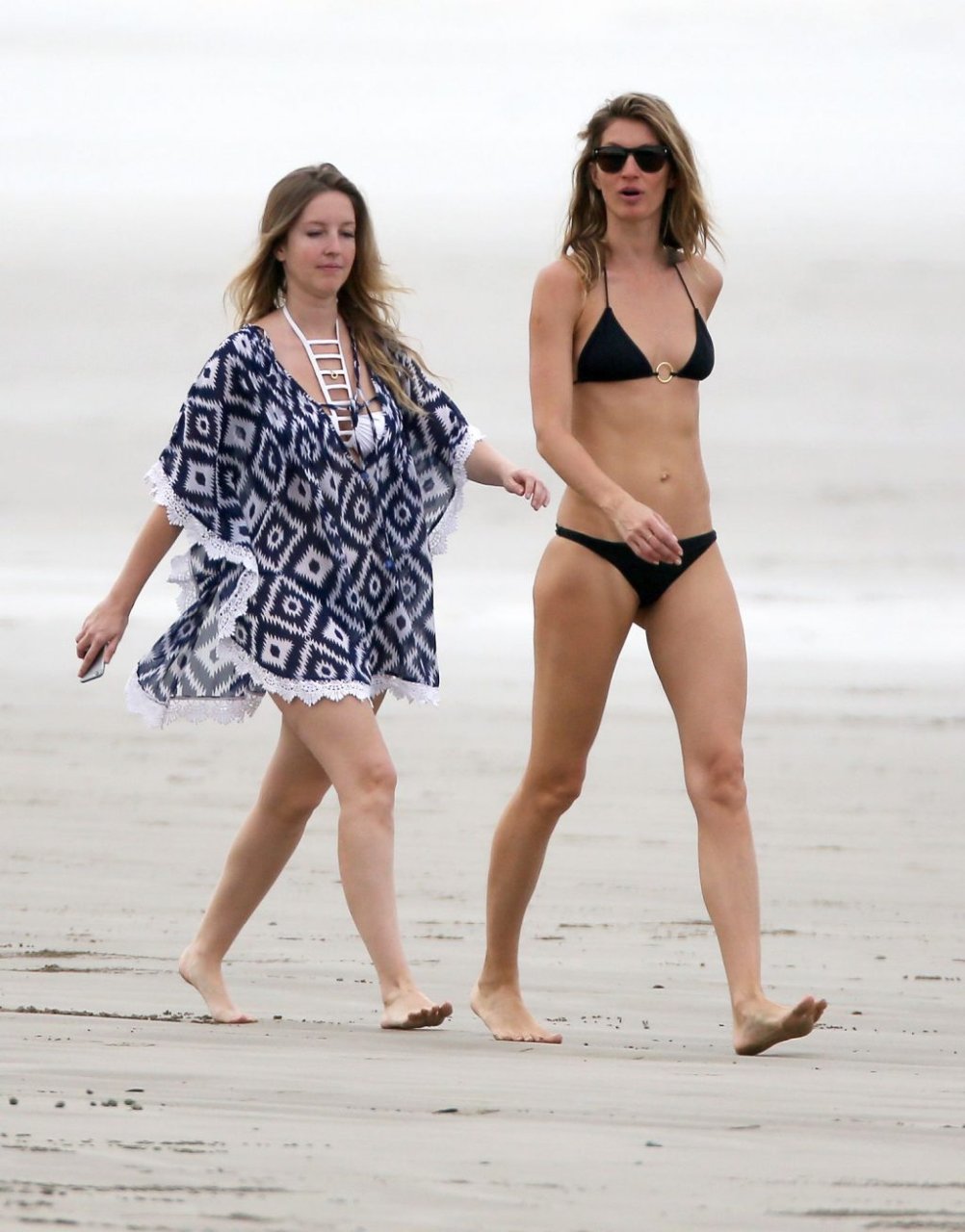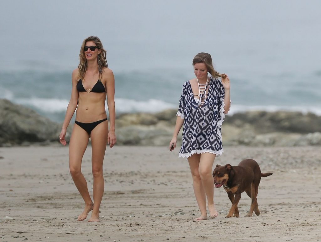 Gisele Bundchen e Tom Brady saem para a praia com a família na Costa Rica, 18/03/2015. Gisele e a família pareciam estar se divertindo muito.