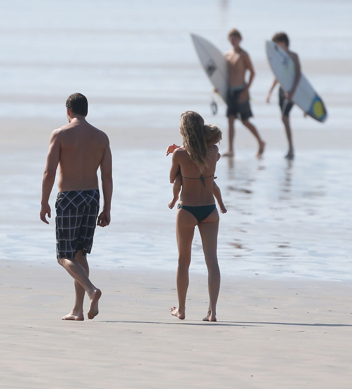 Gisele Bundchen e Tom Brady saem para a praia com a família na Costa Rica, 21/03/2015. Gisele e a família pareciam estar se divertindo muito. Tom pegou a prancha de surf enquanto a esposa Gisele brincava na praia.