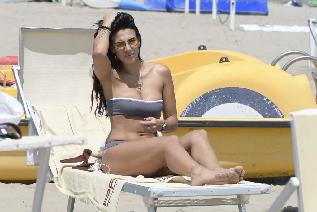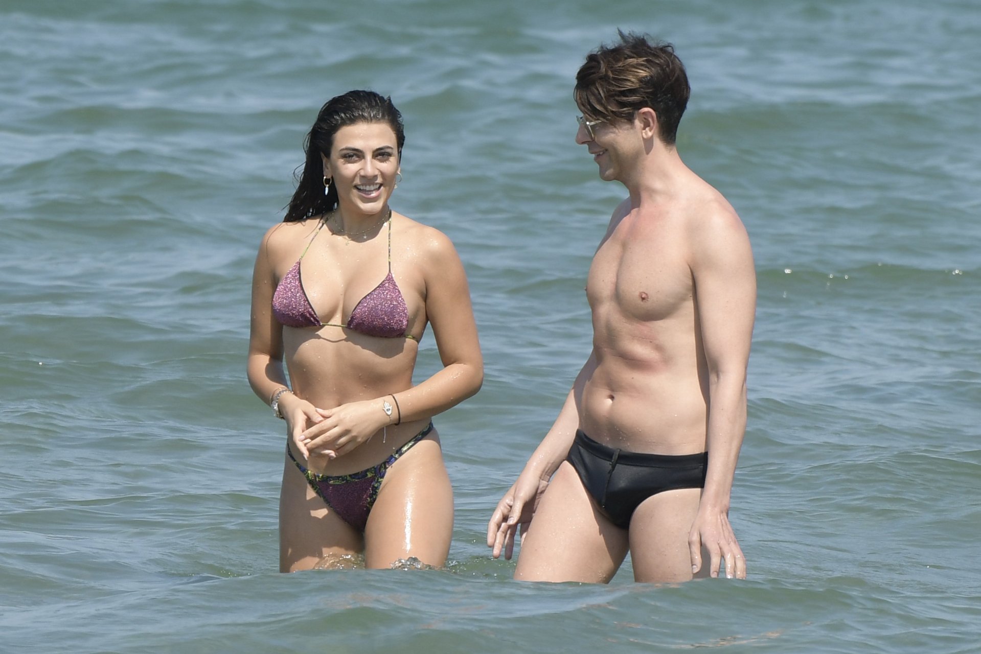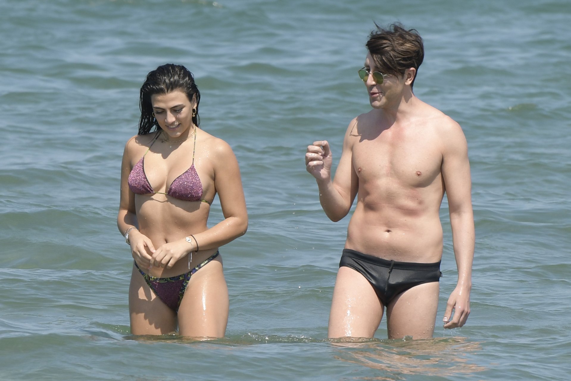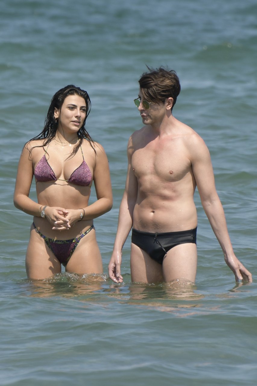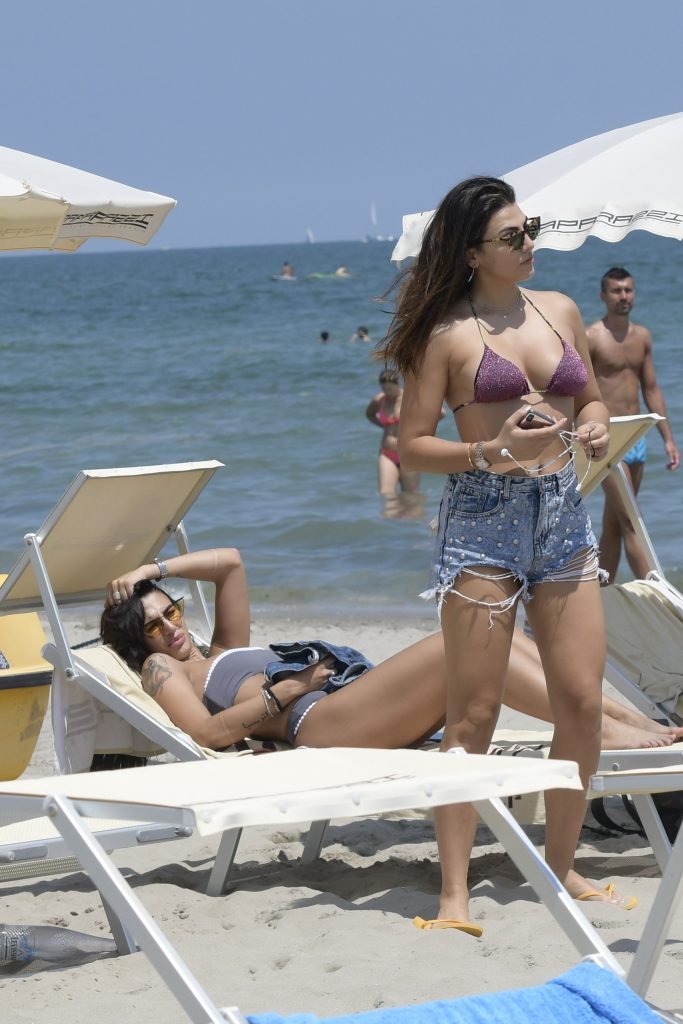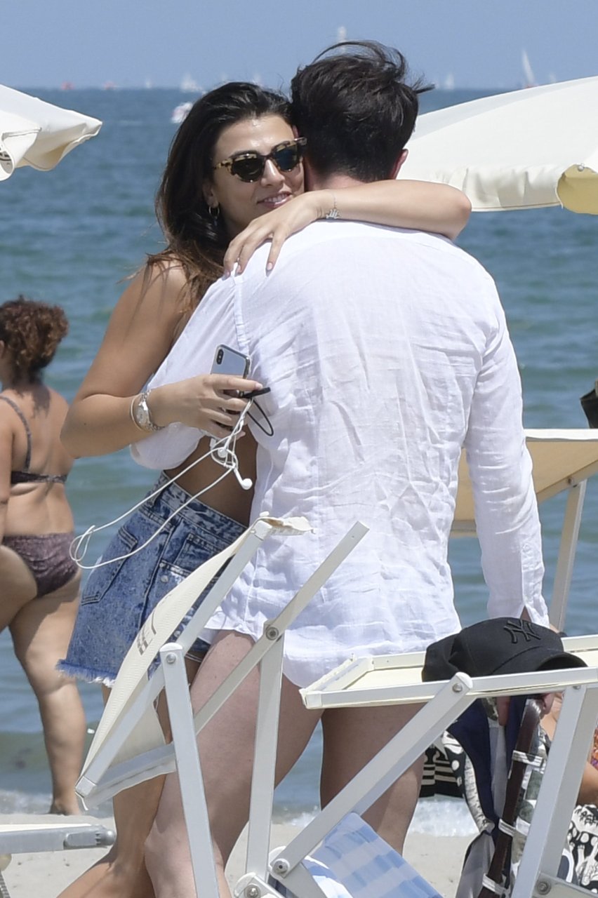 Showgirl Giulia Salemi foi vista com um namorado desconhecido na Paparazzi Beach em Milano Marittima, 15/07/2018. Um longo dia na água, 14/07/2018.
