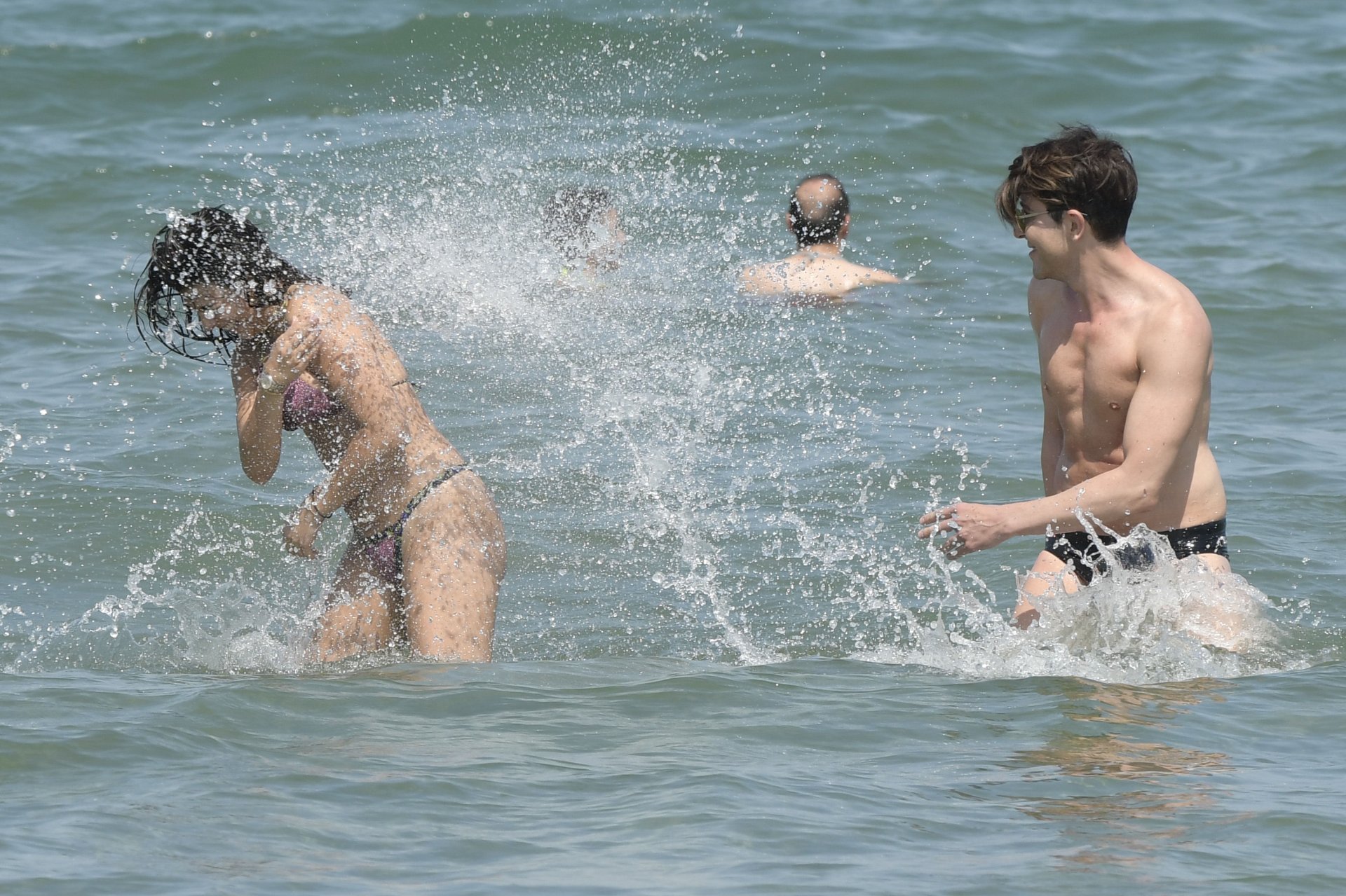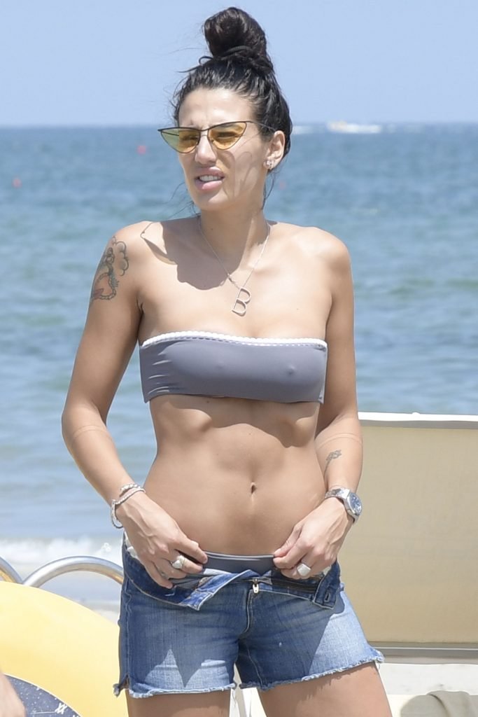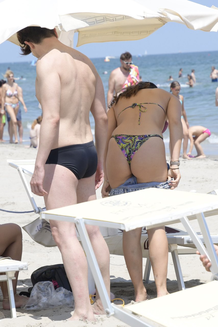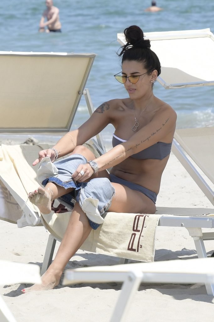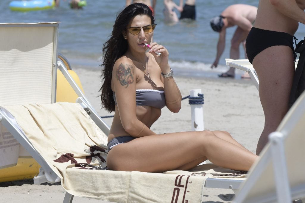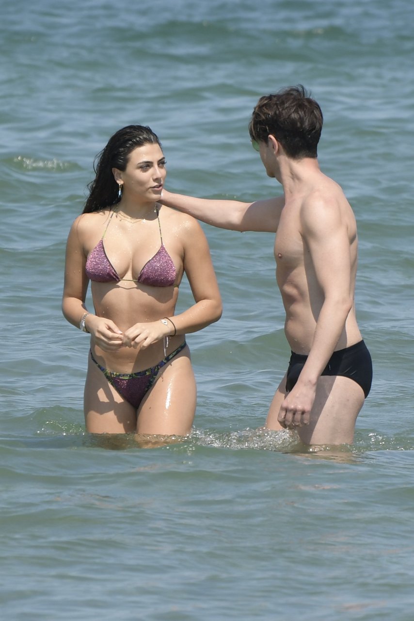 Showgirl Giulia Salemi foi vista com um namorado desconhecido na Paparazzi Beach em Milano Marittima, 15/07/2018. Um longo dia na água, 14/07/2018.
