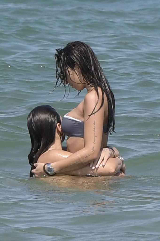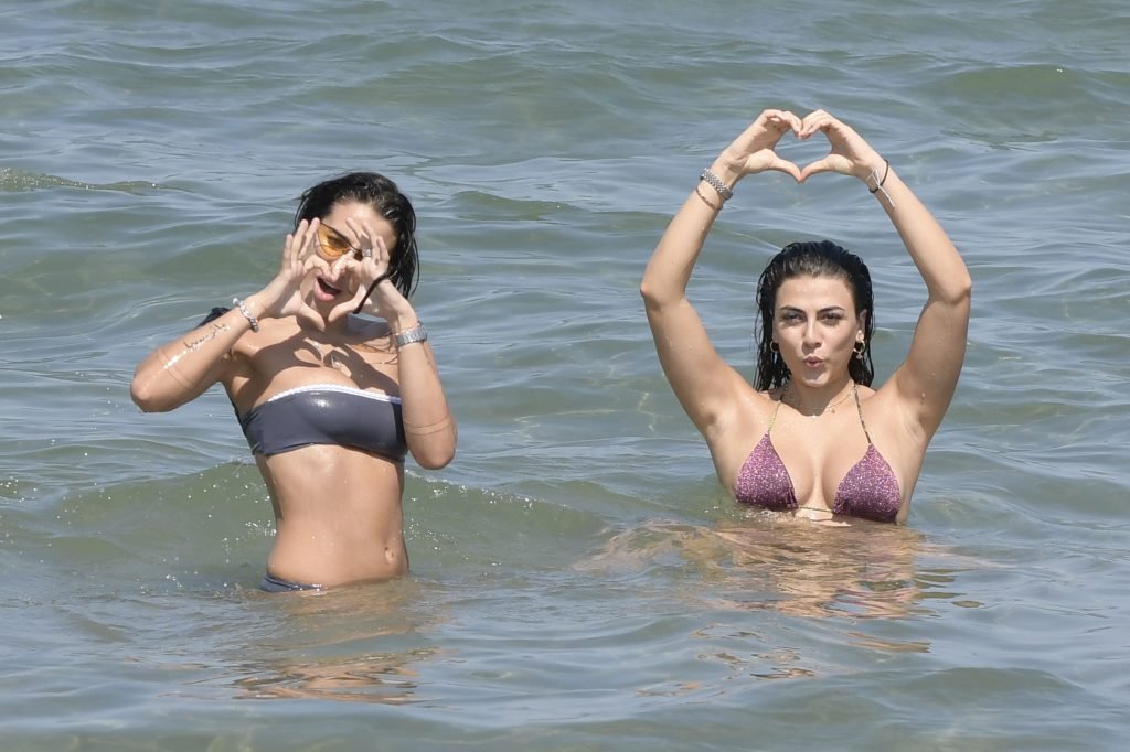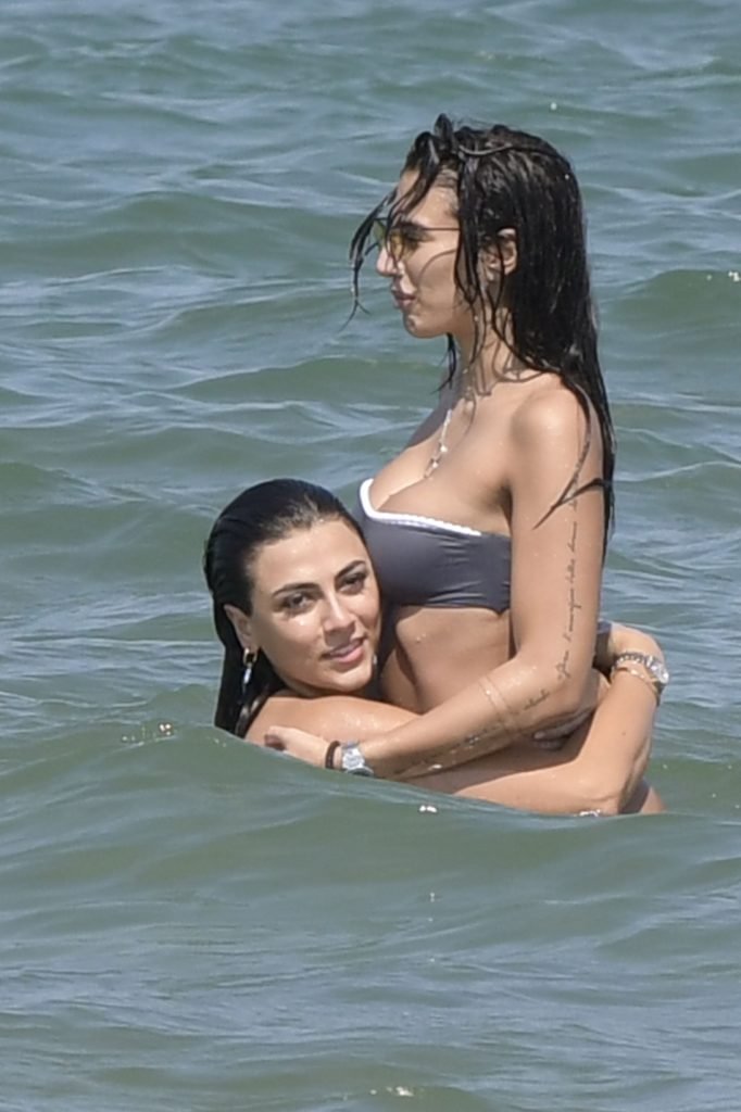 Giulia Salemi and ex GF Patrizia Bonetti make spicy games in the sea at Papparazzi Beach.