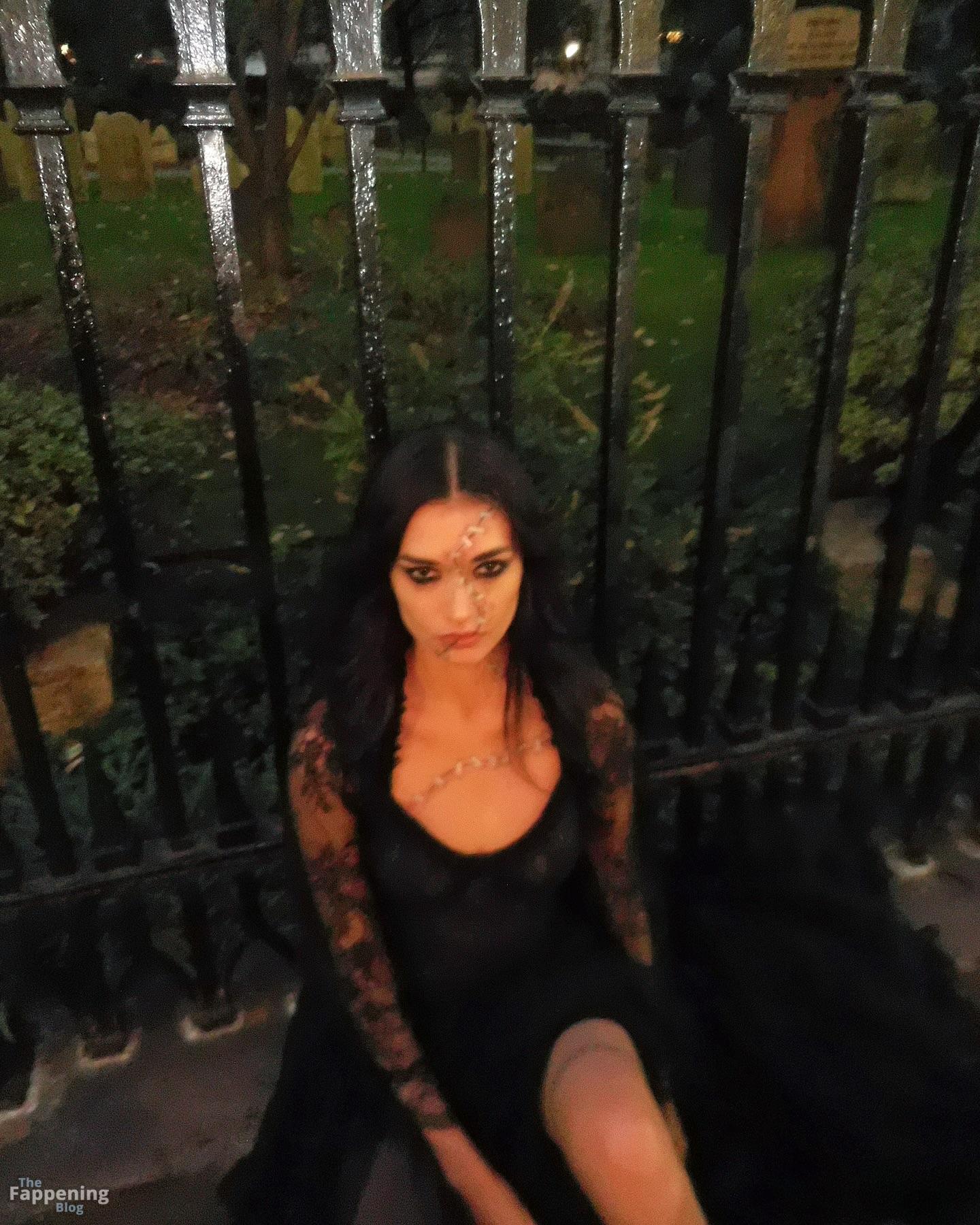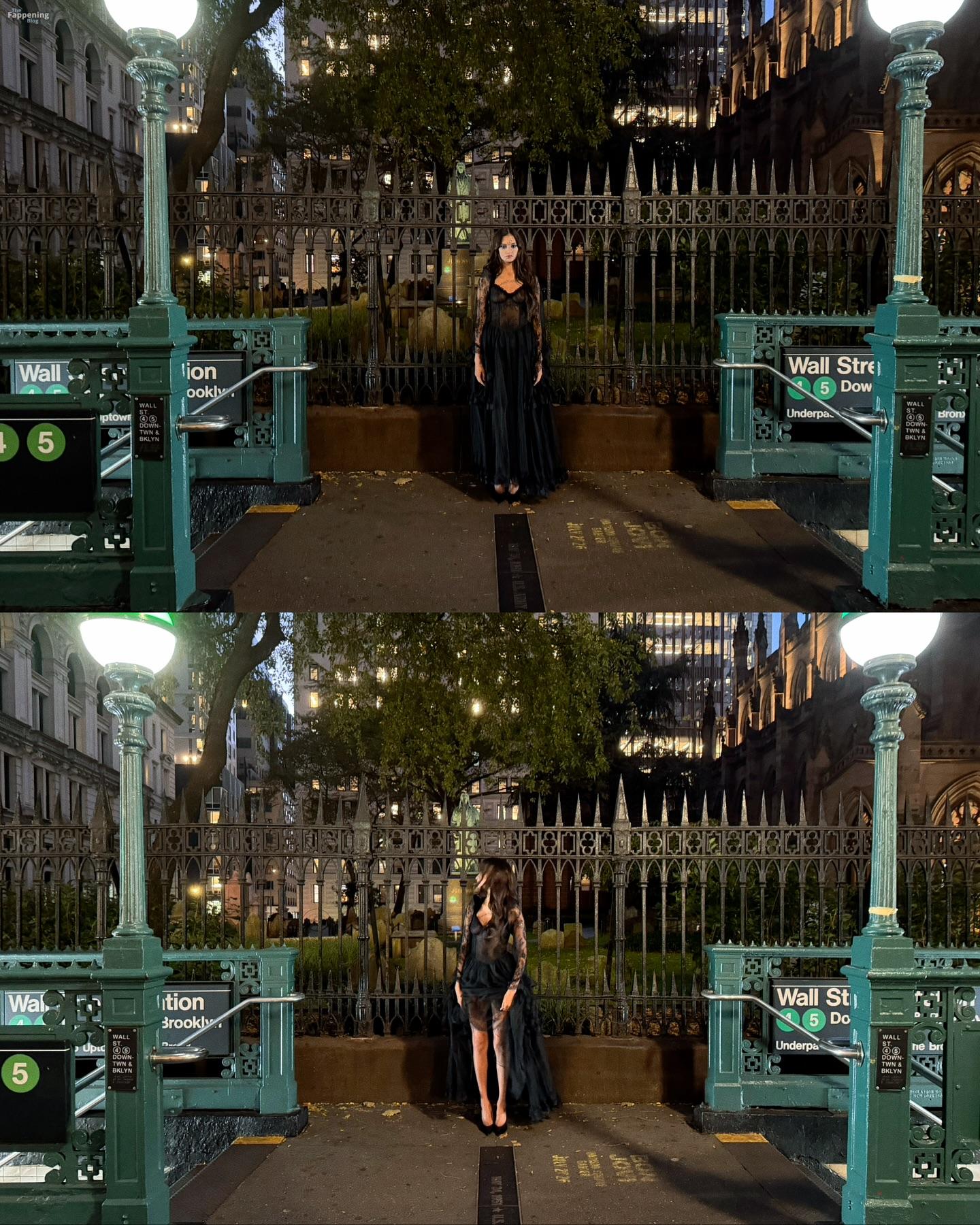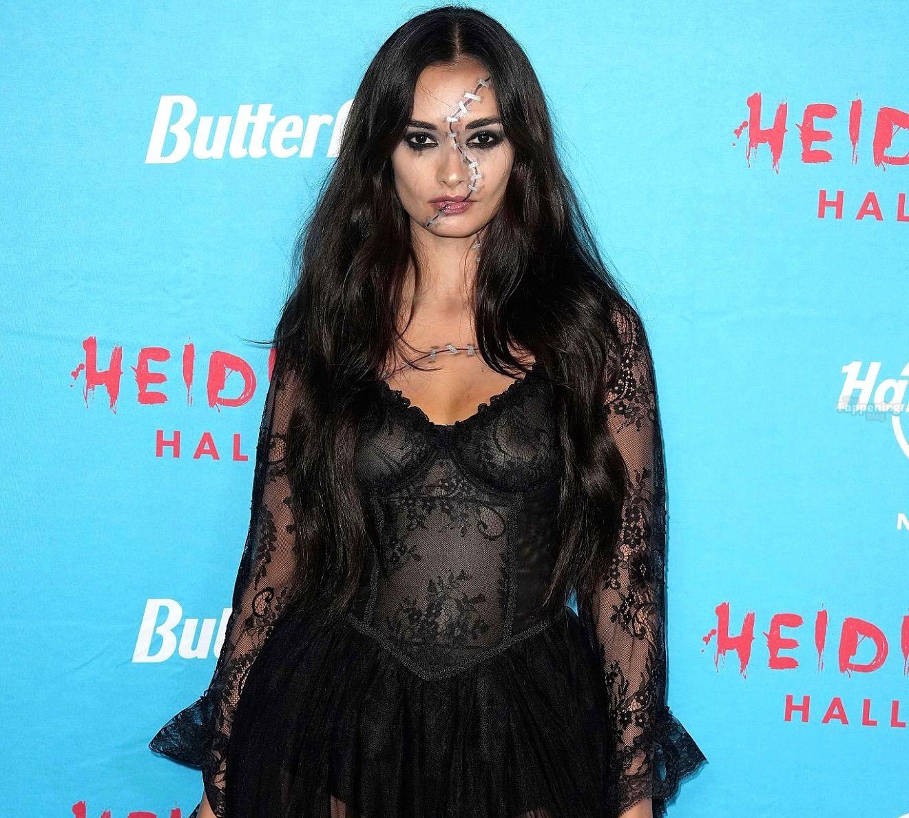 A modelo brasileira Gizele Oliveira esteve na 24ª festa anual de Halloween de Heidi Klum em Nova York. Ela se fantasiou de Dolores, inspirada na personagem de Monica Bellucci em “Irreversible”, usando um vestido de renda preta transparente que deixava pouco para a imaginação. Sem lingerie por baixo, ela não teve vergonha de mostrar seus seios nus com o look revelador.