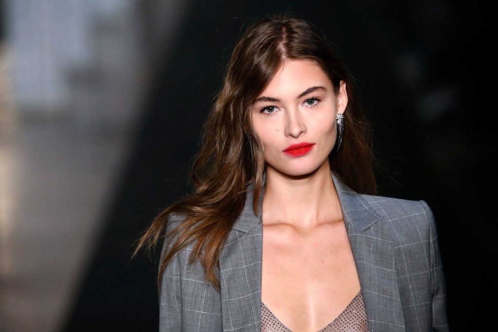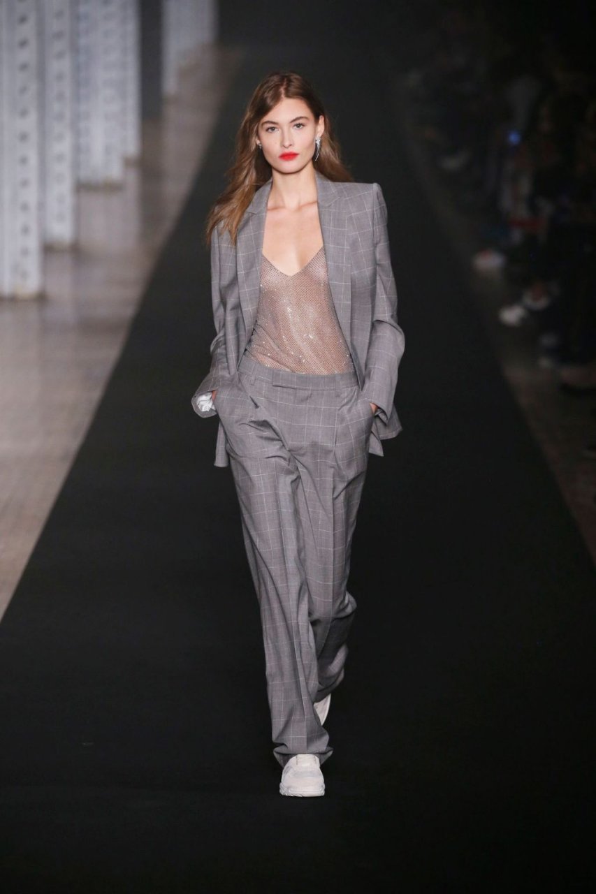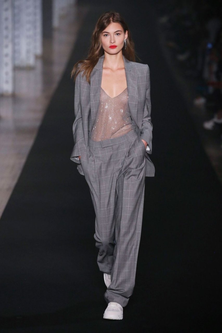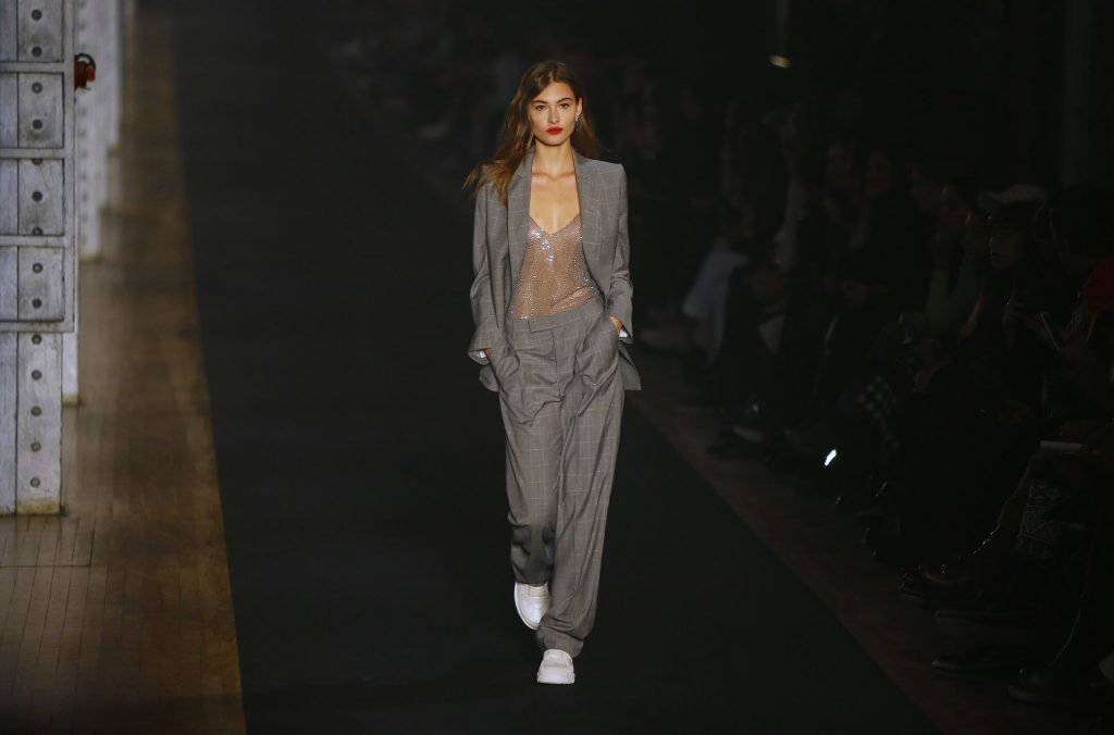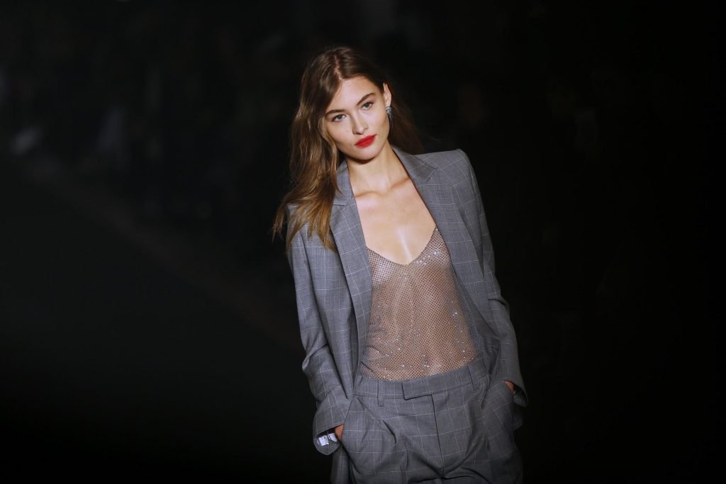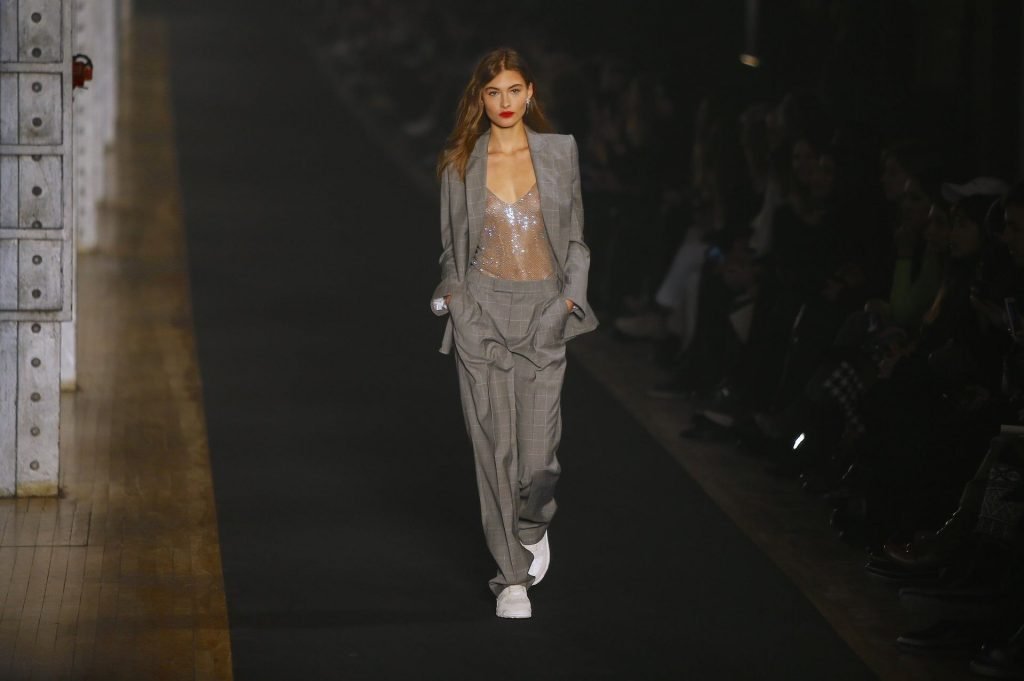 Model Grace Elizabeth desfila com uma blusa transparente sem sutiã no desfile da Zadig & Voltaire durante a New York Fashion Week em Nova York, 13/02/2019.