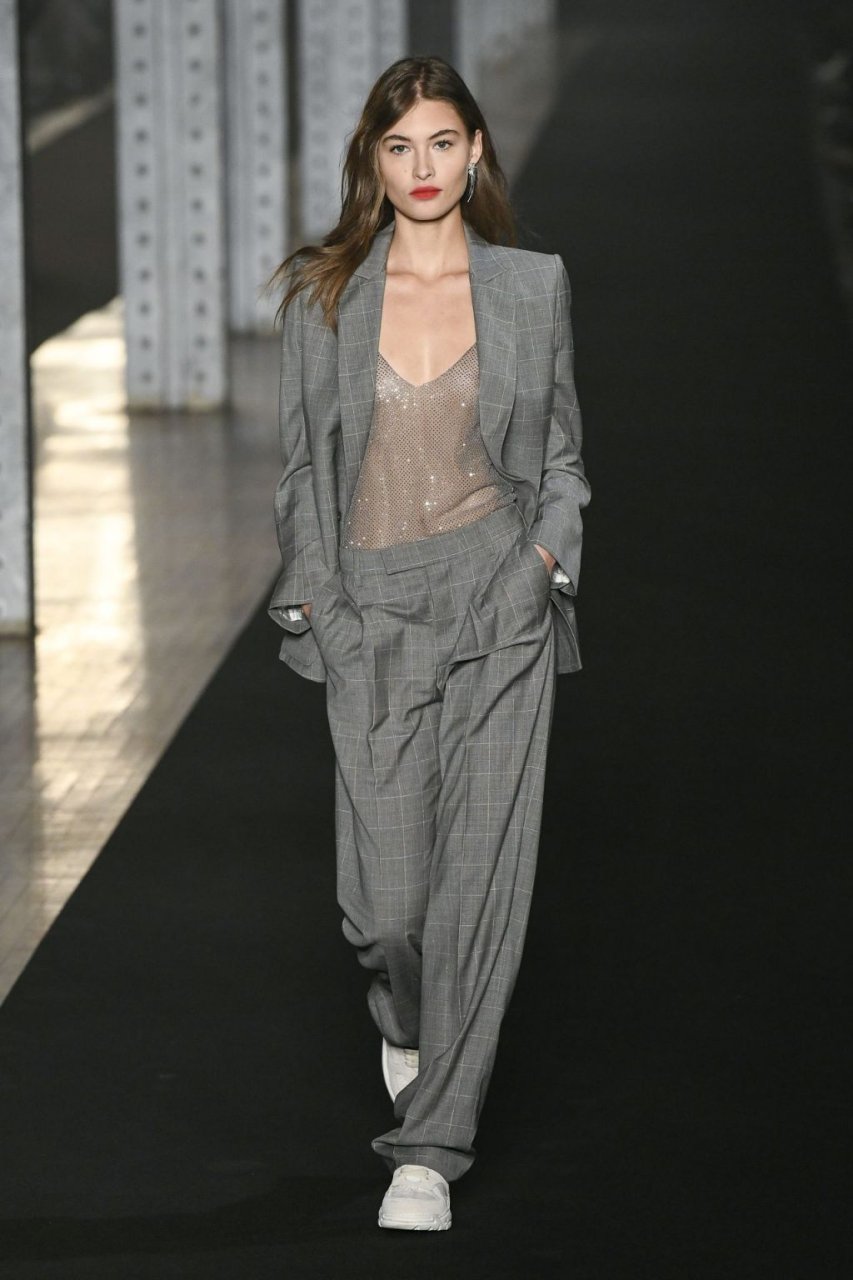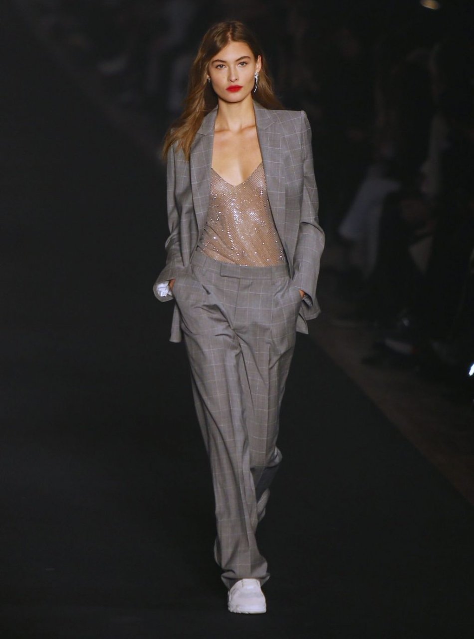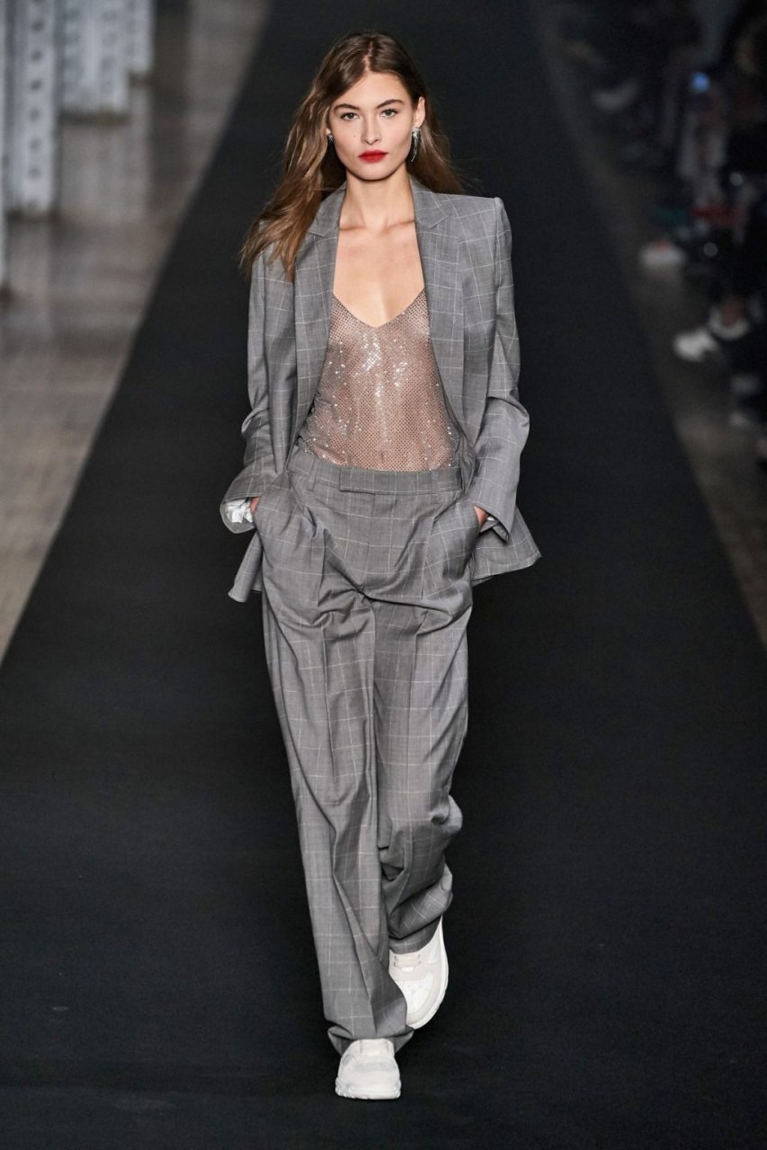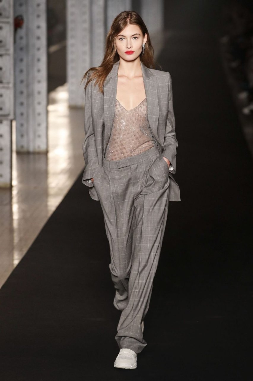 Model Grace Elizabeth desfila com uma blusa transparente sem sutiã no desfile da Zadig & Voltaire durante a New York Fashion Week em Nova York, 13/02/2019.