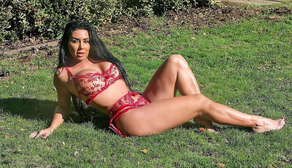 Ex-modelo de glamour e agora empresária, Grace J Teal exibe sua figura impressionante em um ensaio de lingerie de renda vermelha enquanto mostra com confiança sua cirurgia pós-operatória após visitar a Comfort Zone na Turquia (2020).