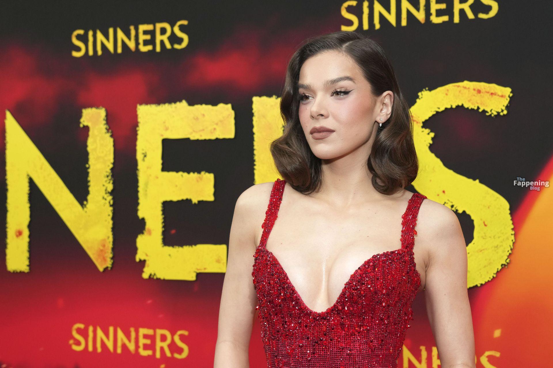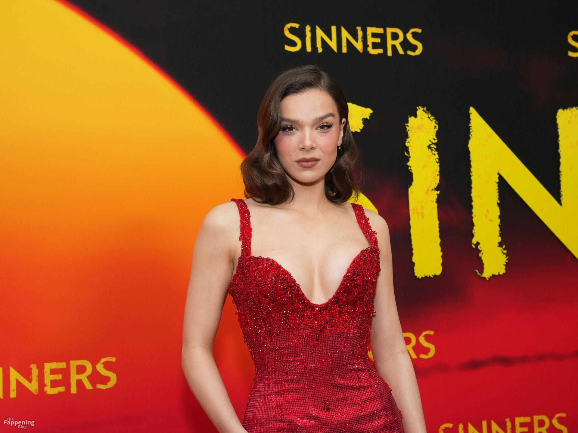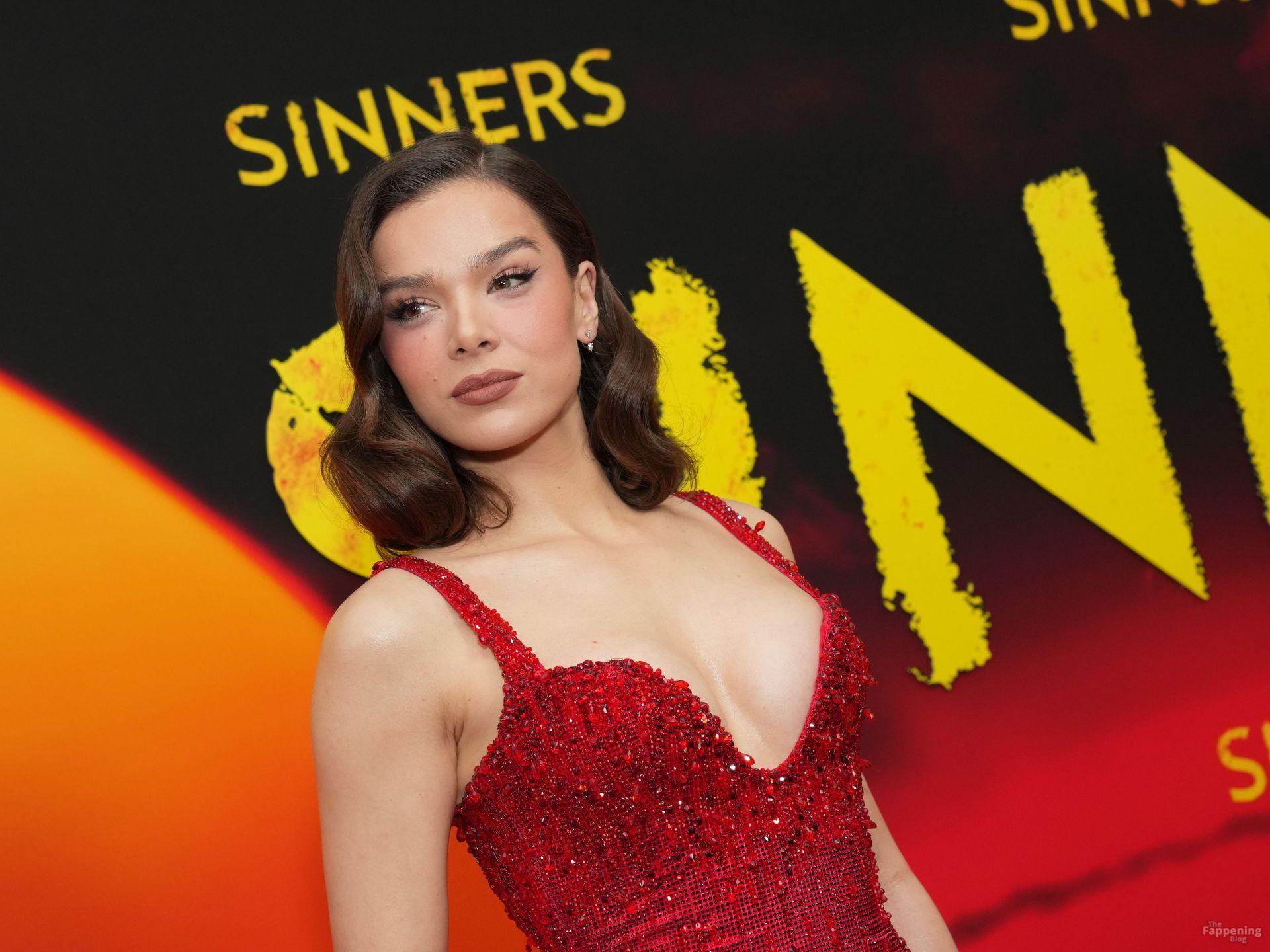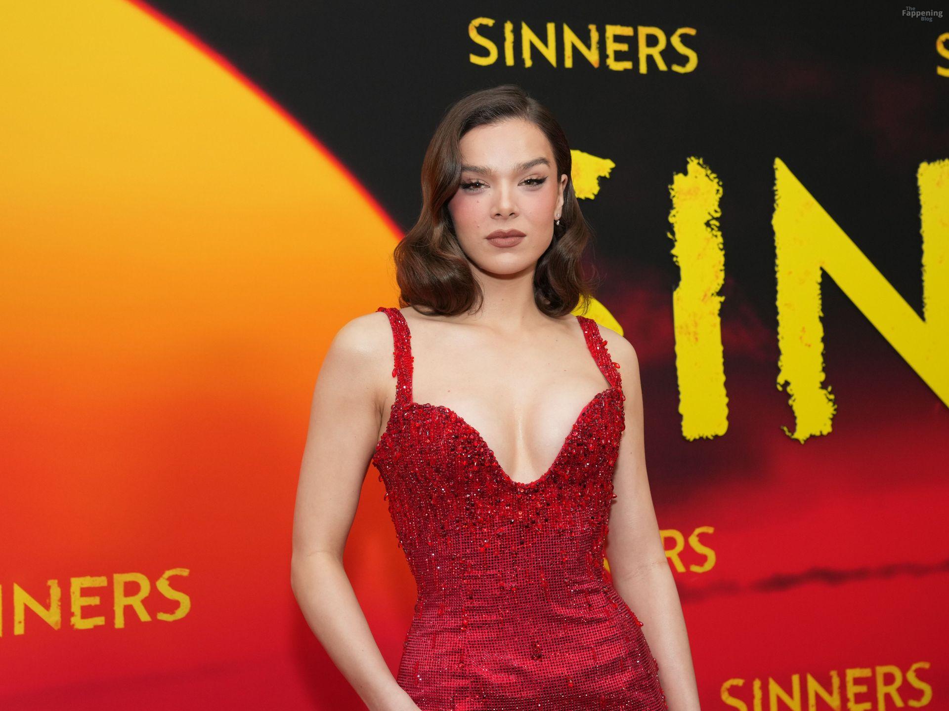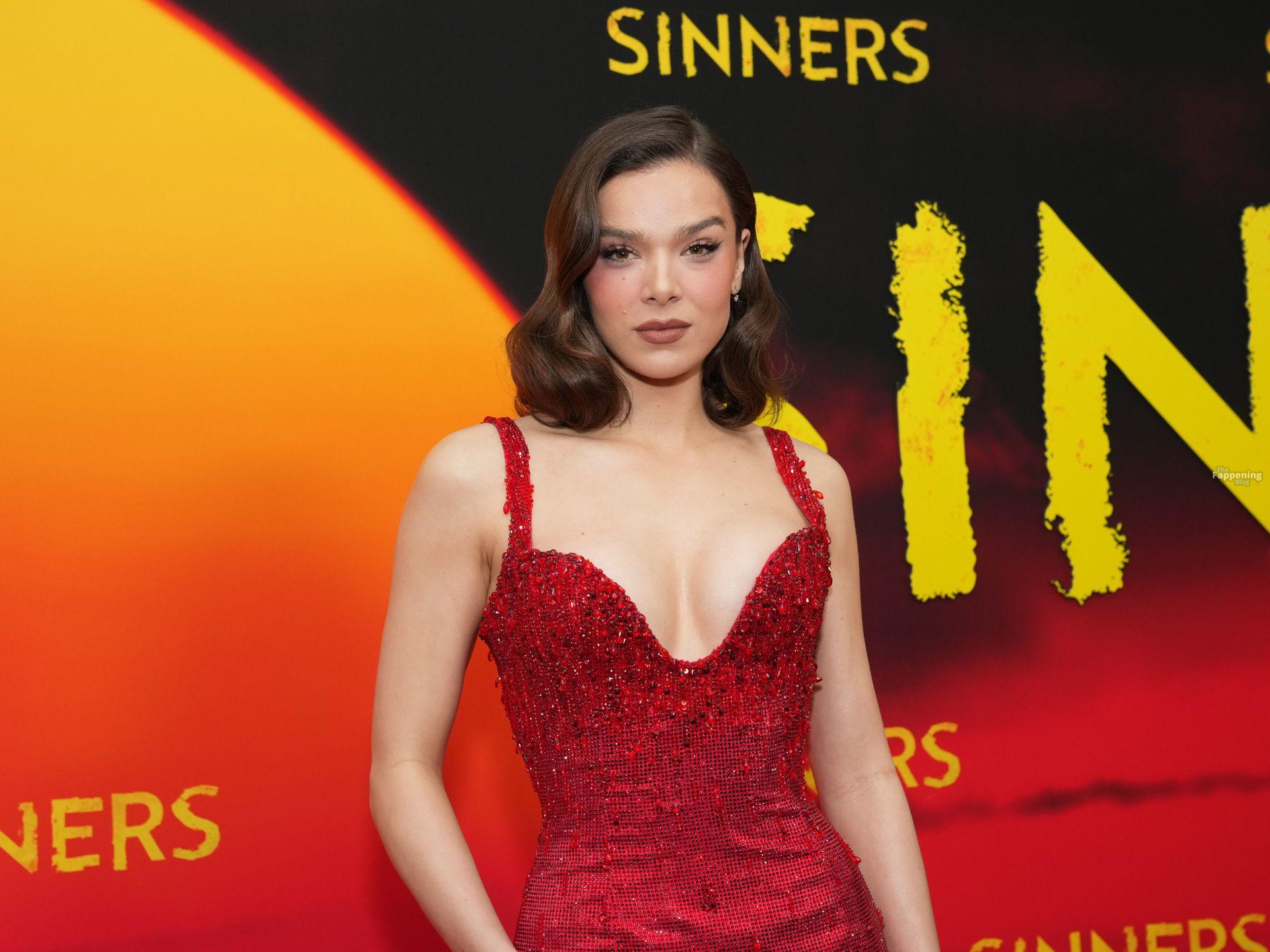 A atriz Hailee Steinfeld exibe seu decote e sua bela silhueta em um vestido vermelho na estreia de “Sinners” em Nova York.