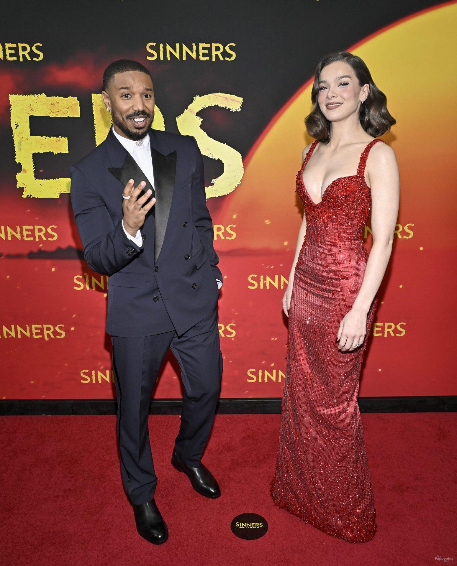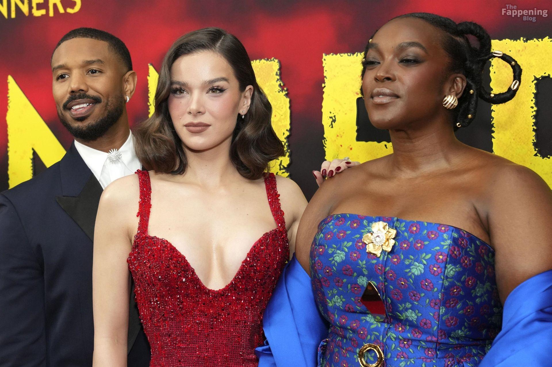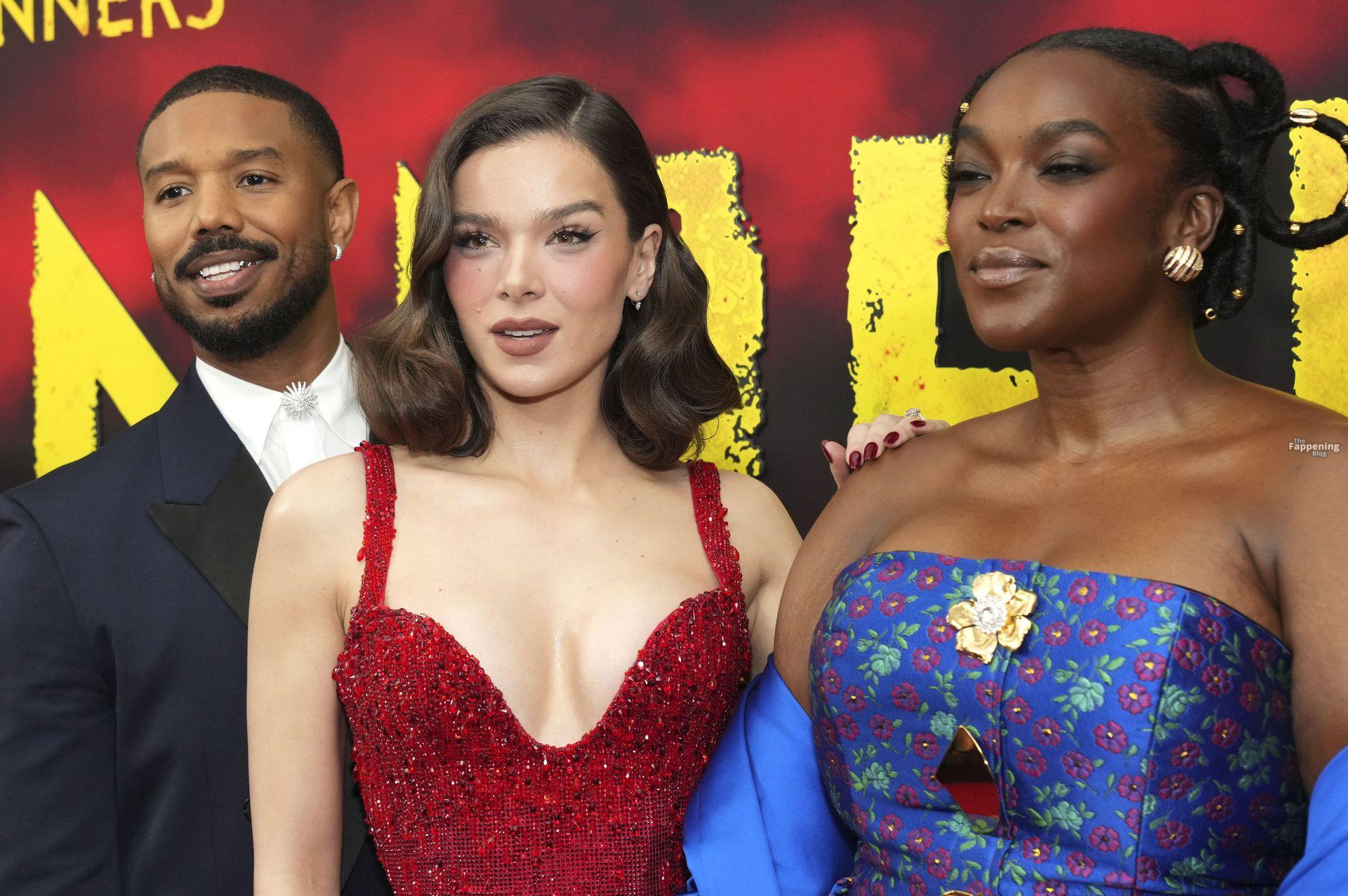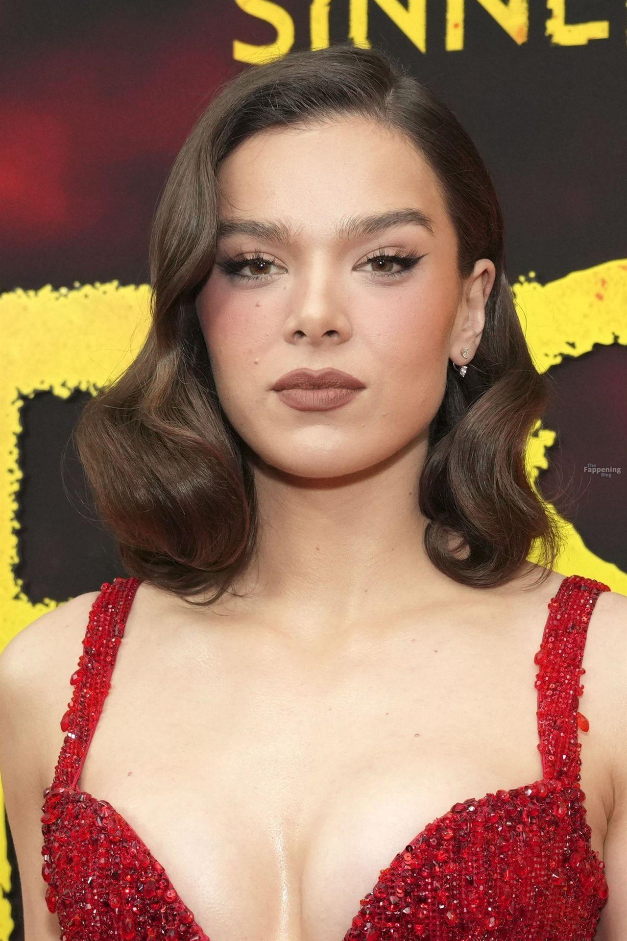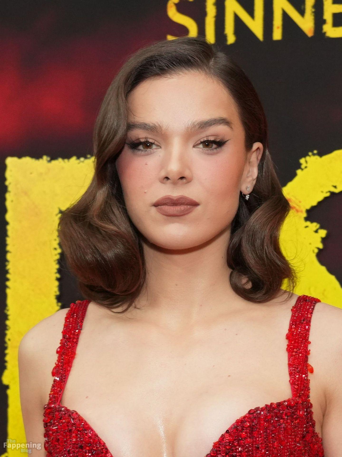 A atriz Hailee Steinfeld exibe seu decote e sua bela silhueta em um vestido vermelho na estreia de “Sinners” em Nova York.